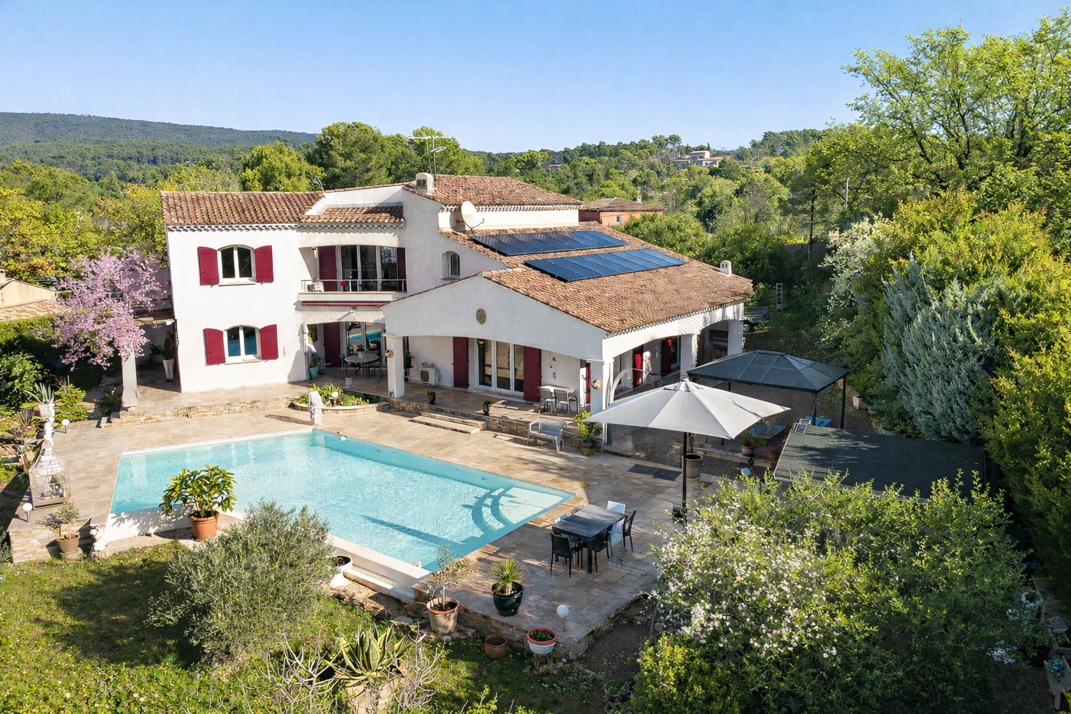 The house is fitted with aluminium shutters and 16 solar panels and is presented in perfect condition.