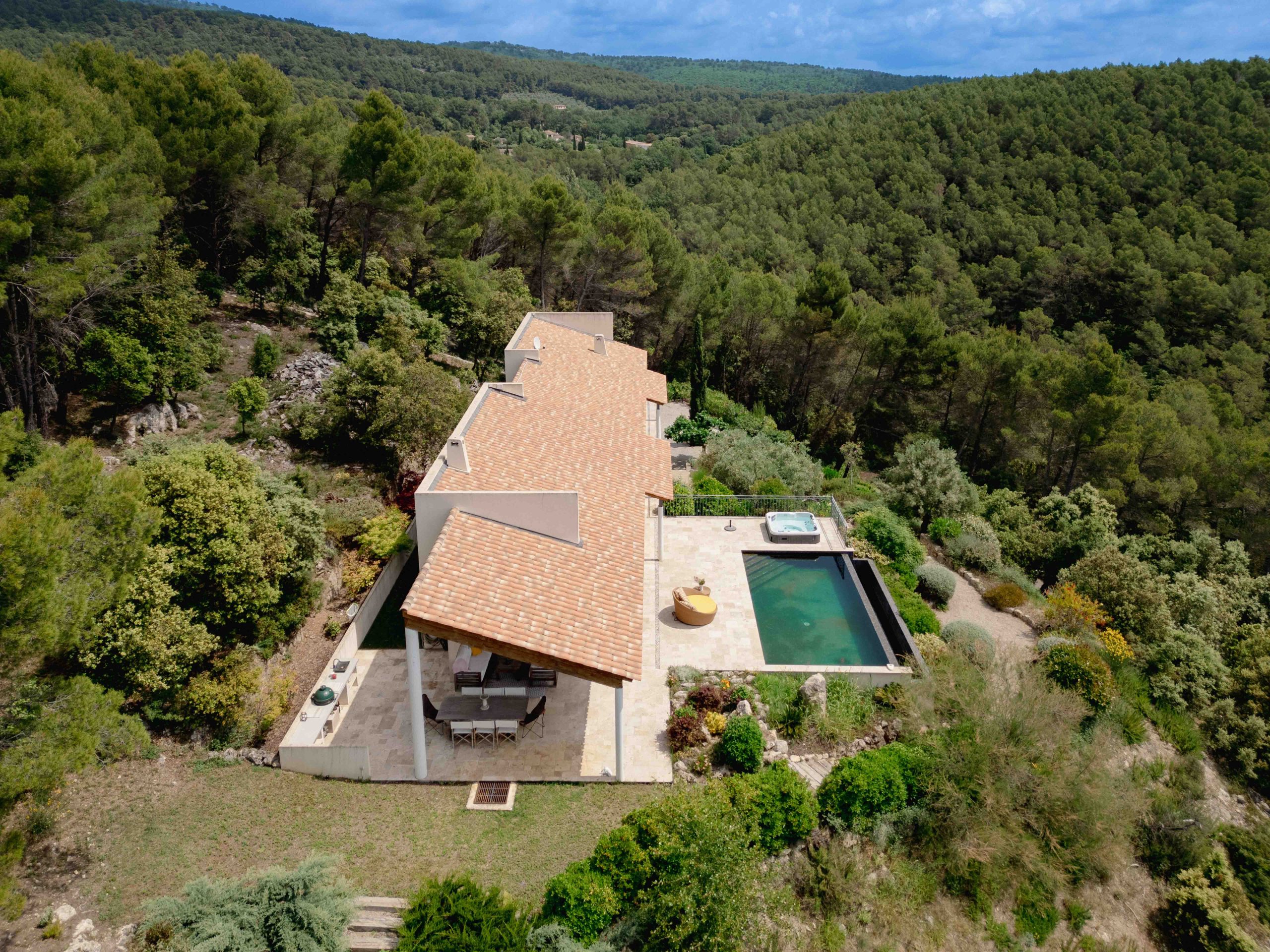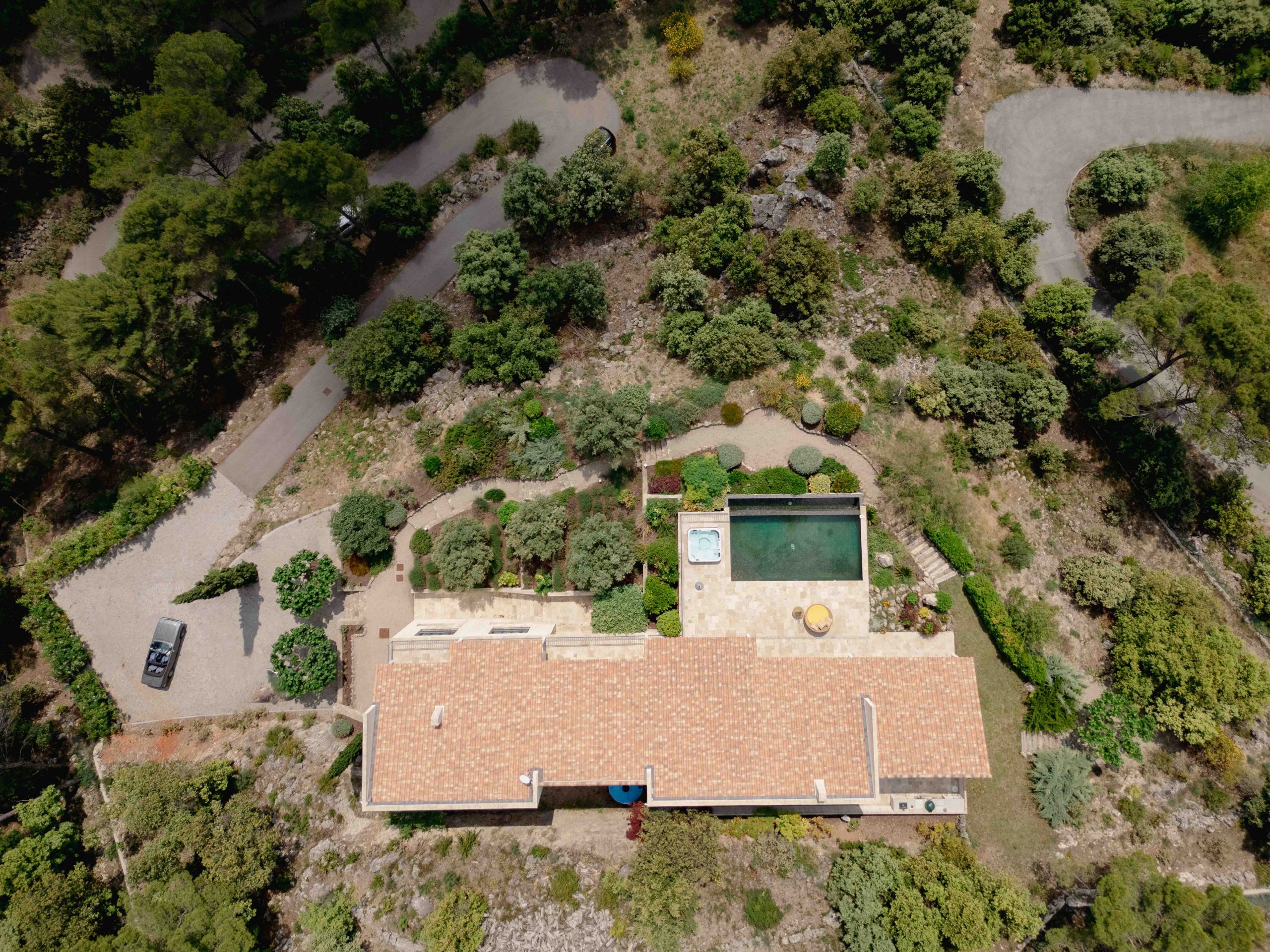 Carved directly into the hillside rock, the villa offers approximately 247m2 of living space in total, with each level benefiting from direct access to the gardens.