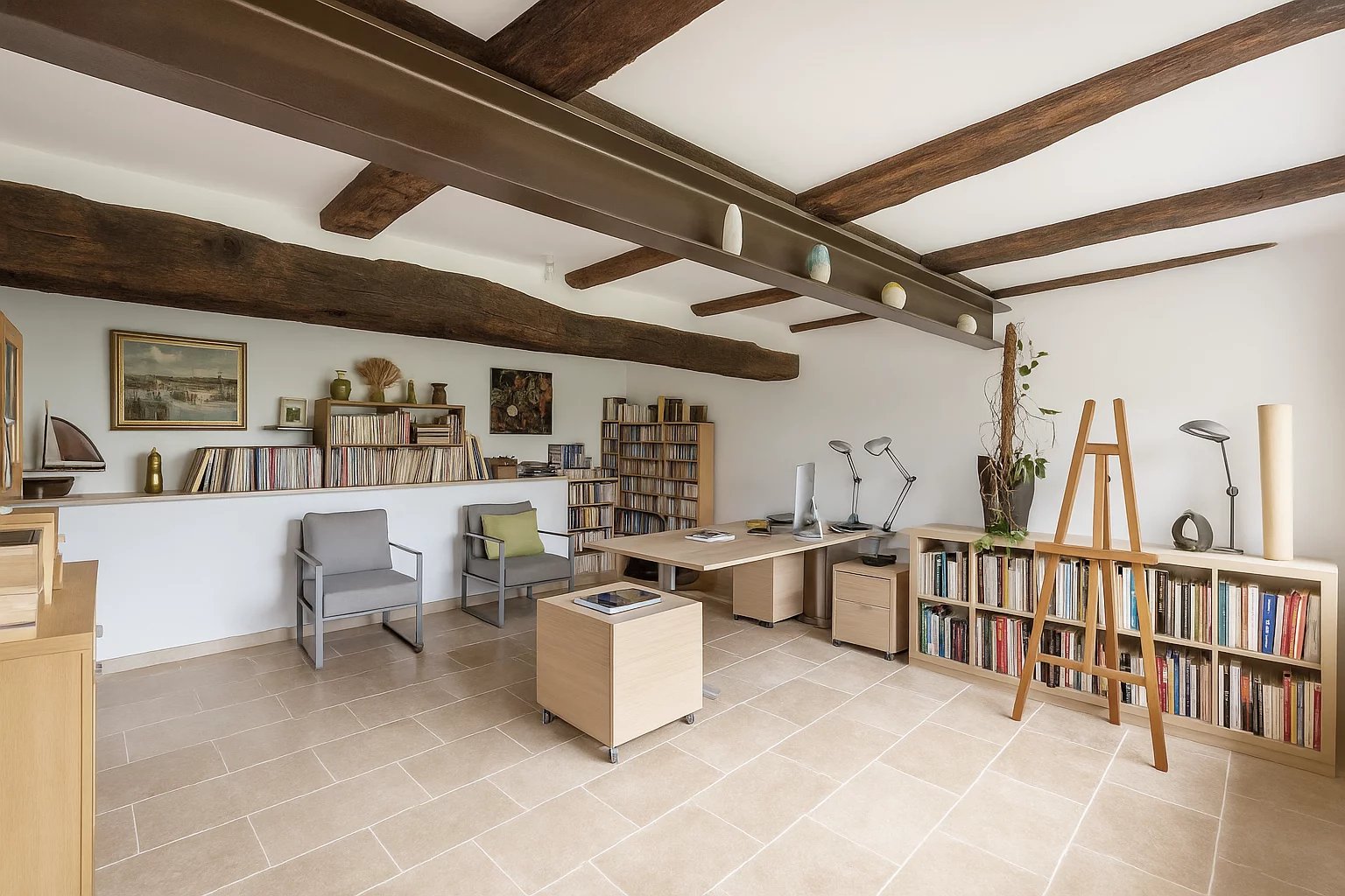 At the heart of the estate lies a charming courtyard bordered by two 70 m2 covered and open loggias, creating a convivial and flexible space for gatherings and summer living. From here, a stone passage leads to a secluded pool area, ideal for moments of relaxation under the Provencal sun.