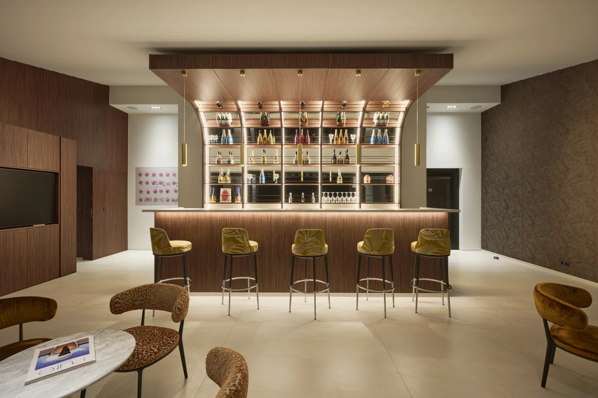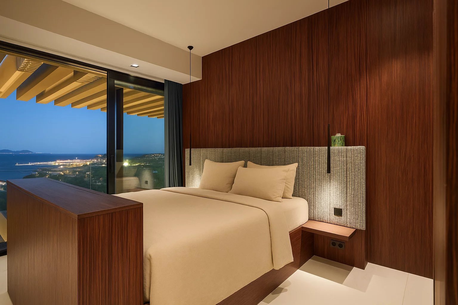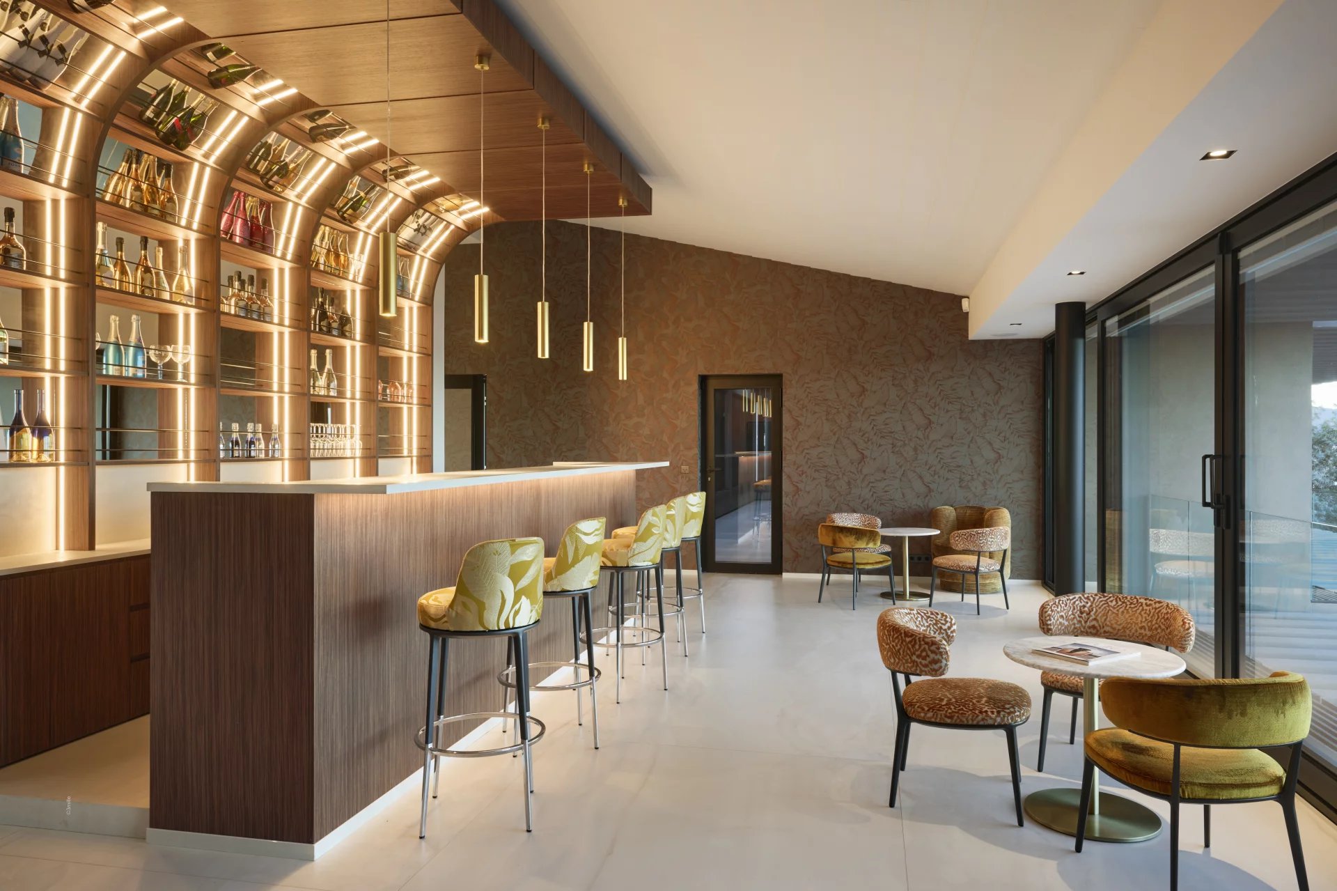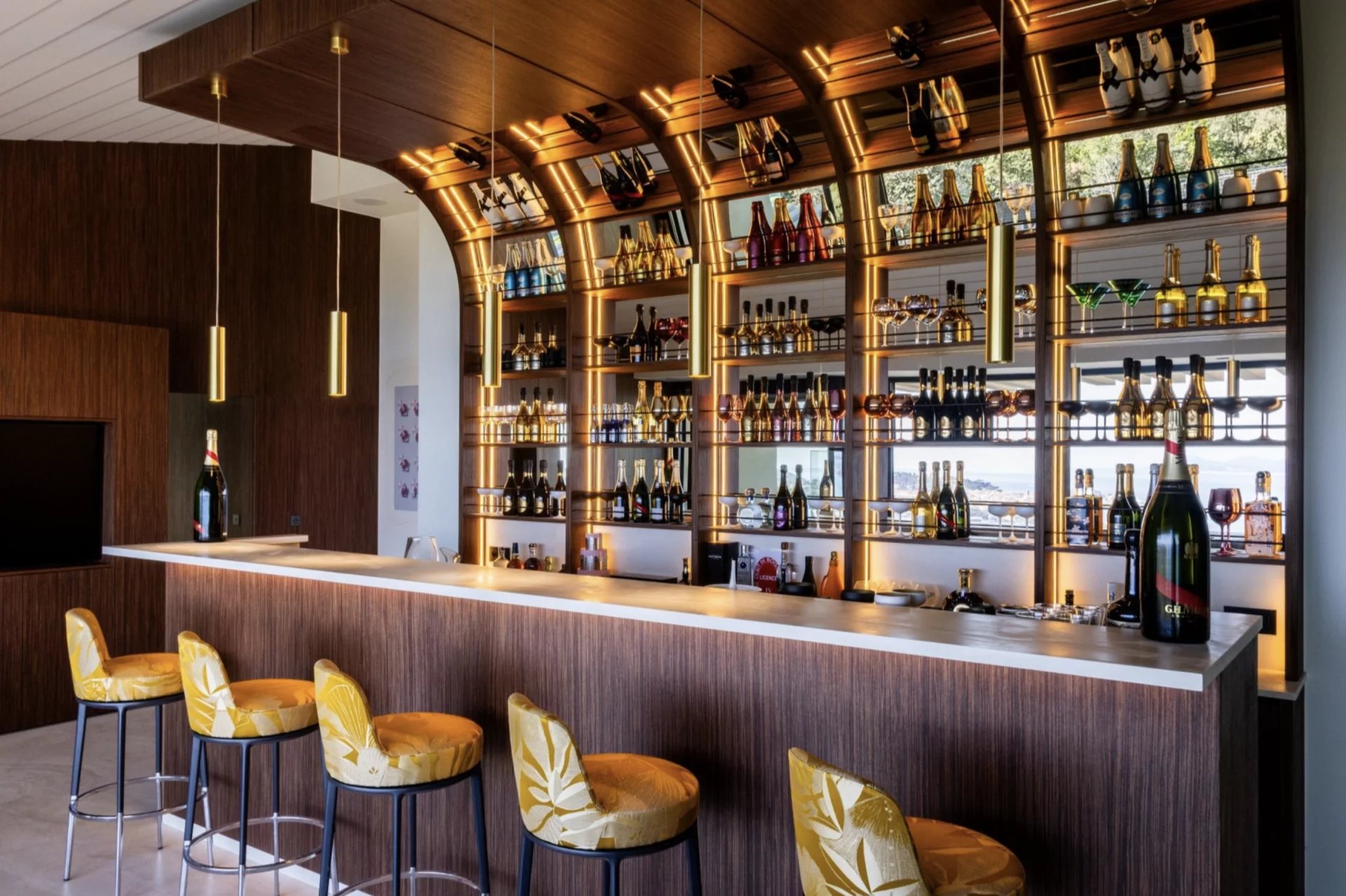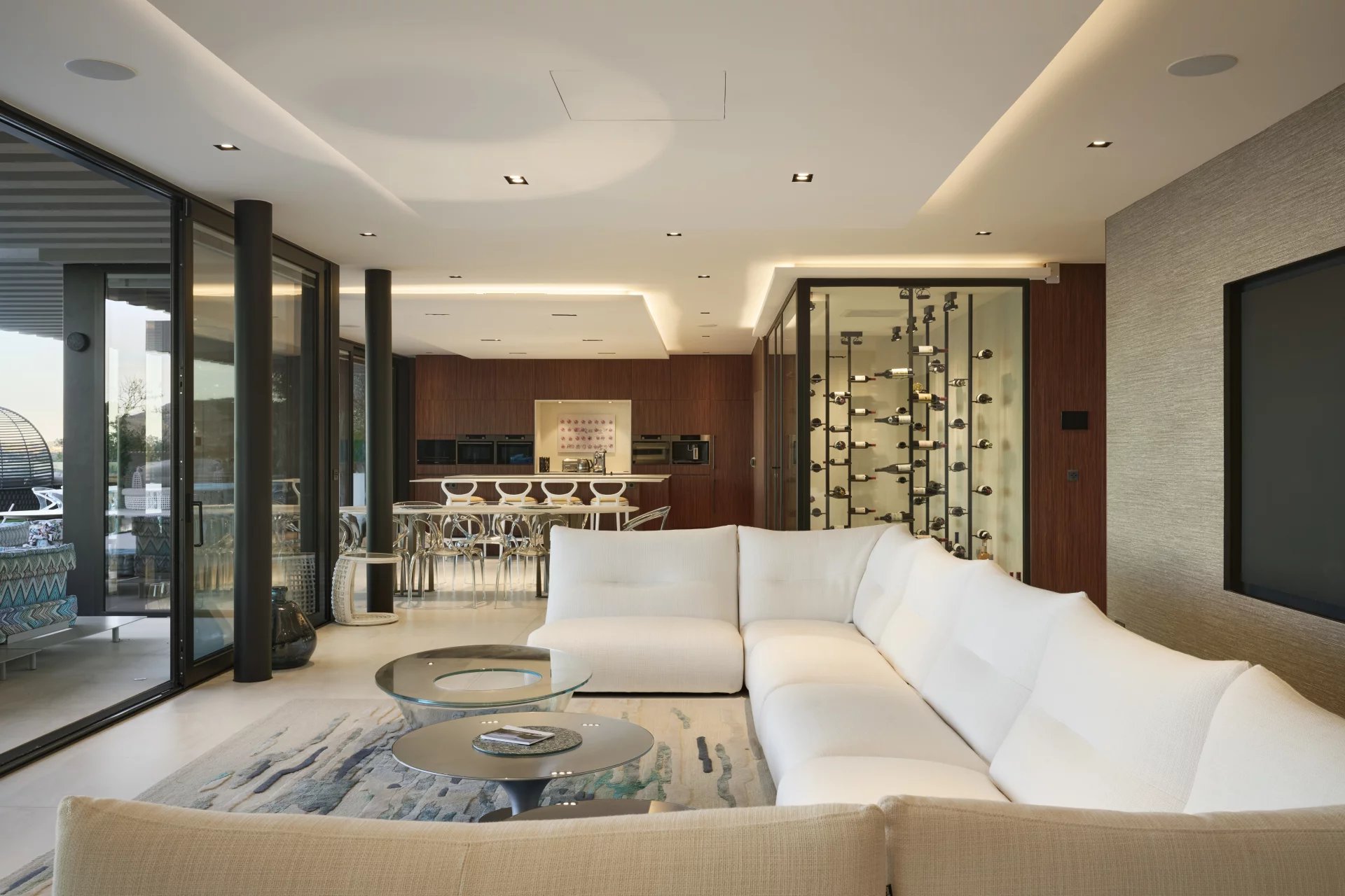 Designed with clean architectural lines and expansive floor-to-ceiling windows, the villa is bathed in natural light throughout. The main living area is both bright and spacious, featuring a refined dining room, a stylish bar, and several reception lounges – all offering uninterrupted sea views.