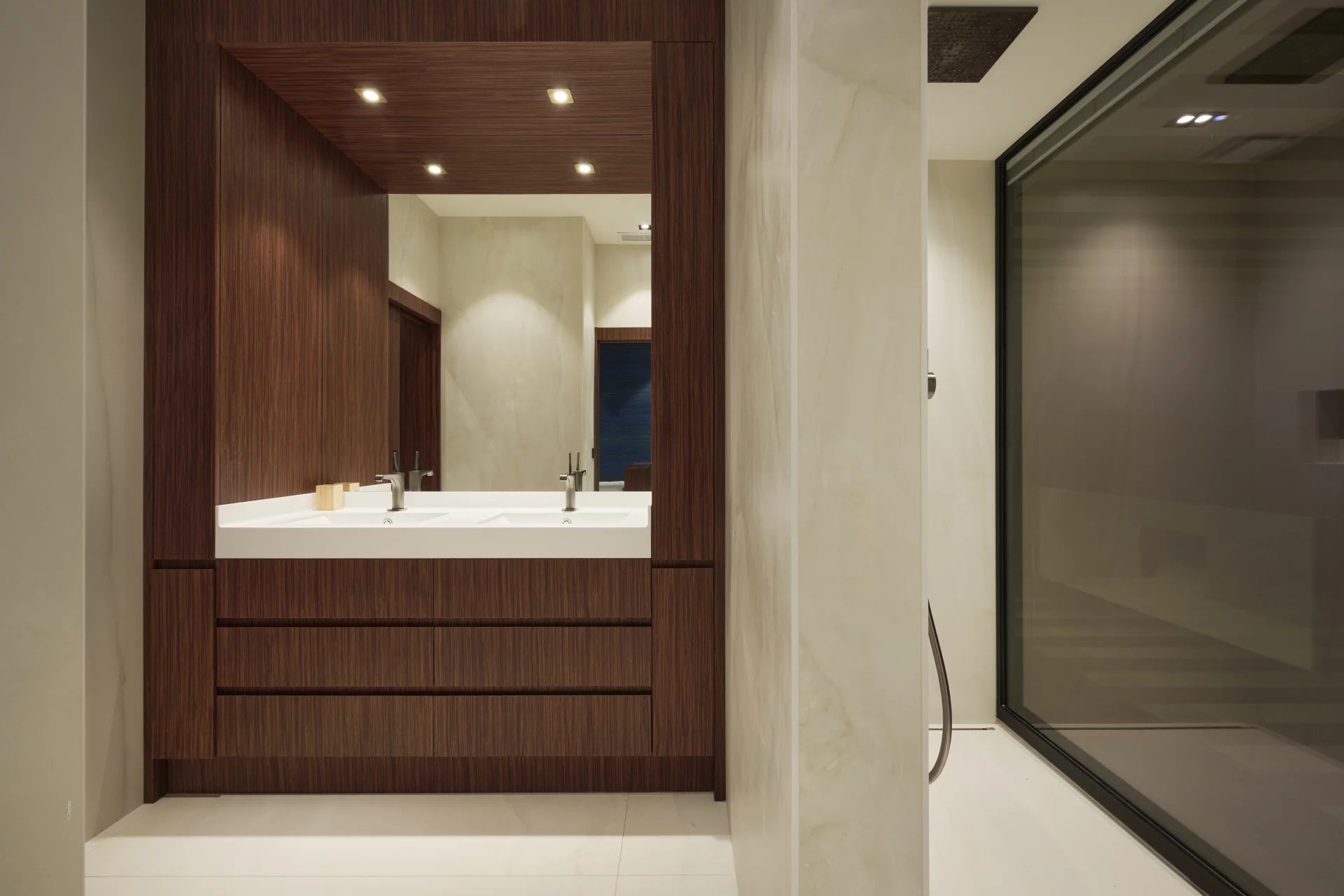 The landscaped 2,500 m2 garden hosts a stunning heated infinity pool, ideal for enjoying the serene setting all year round.