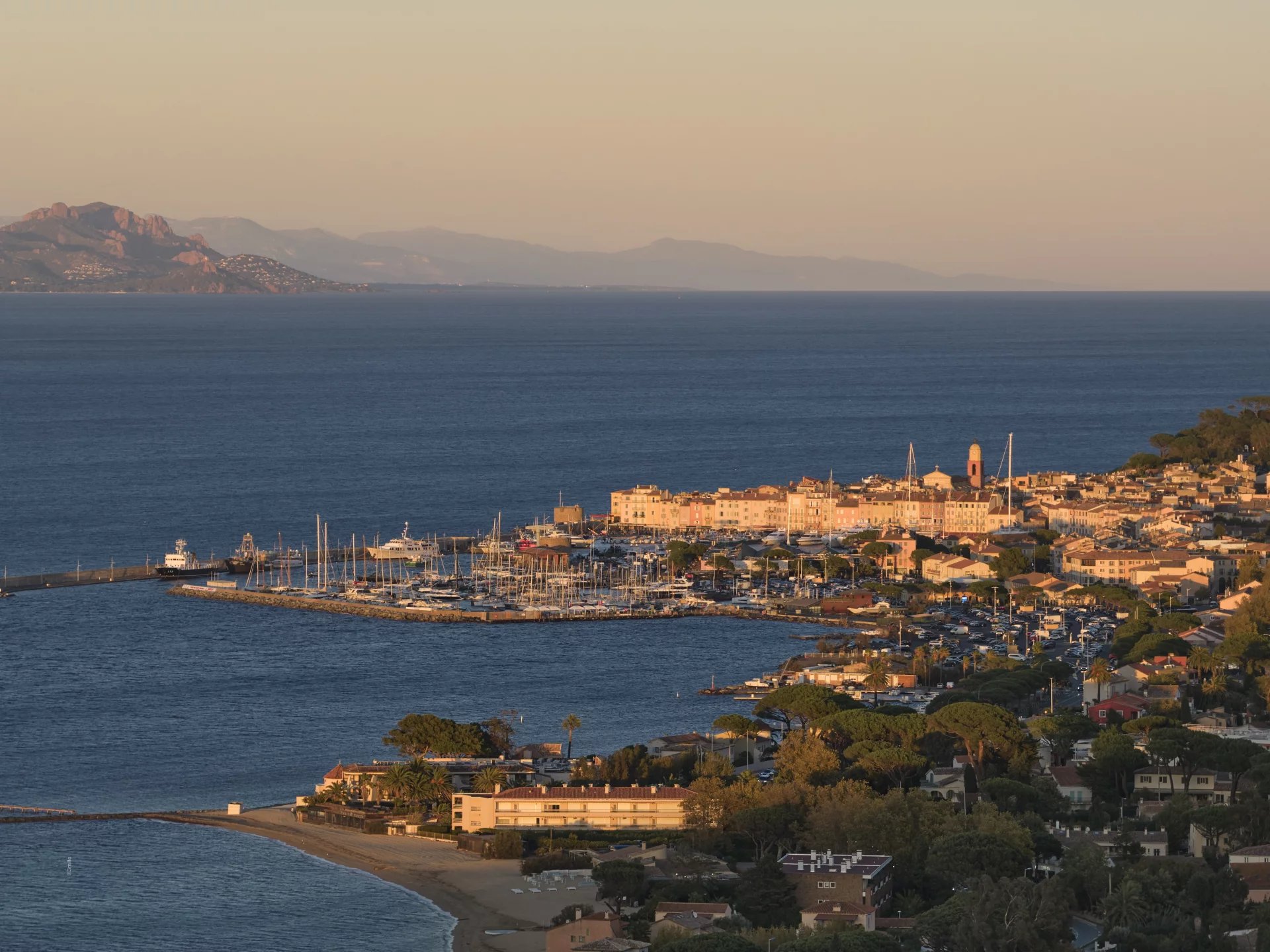Set within the prestigious and secure Sinopolis domain, this newly built contemporary villa spans 600 m2 and boasts breathtaking panoramic views over the Bay of Saint-Tropez, the iconic village, and its harbor.