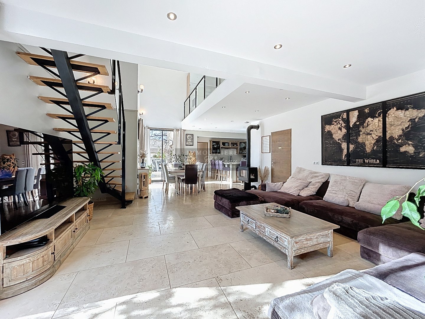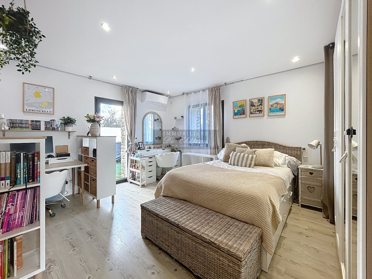 Outside, the fully fenced grounds of over 1700 m2 include a salt-water “lagoon” biodesign swimming pool, a petanque court, and a large garage, all in a quiet and sought-after setting.
