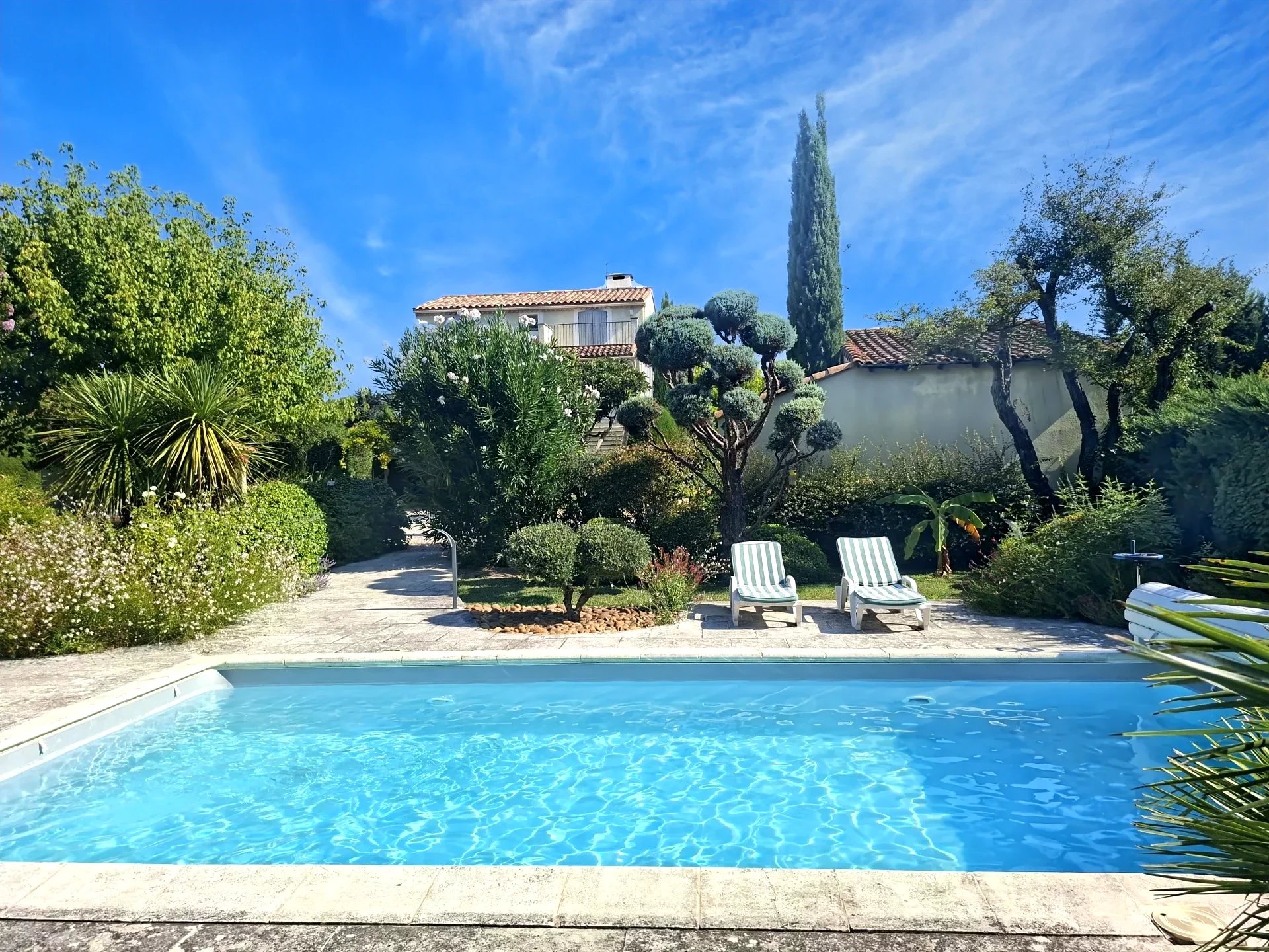 Set on a 3,215 m2 south- and south-west-facing plot, the terraced land is planted with mature Mediterranean vegetation, offering exceptional privacy and vistas. The local zoning allows for a swimming pool or extension.