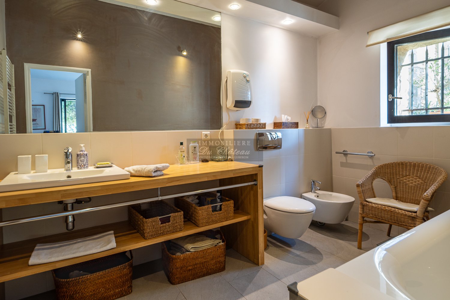 A master suite of 24 m2 with private bathroom (bathtub and shower) and direct garden access.