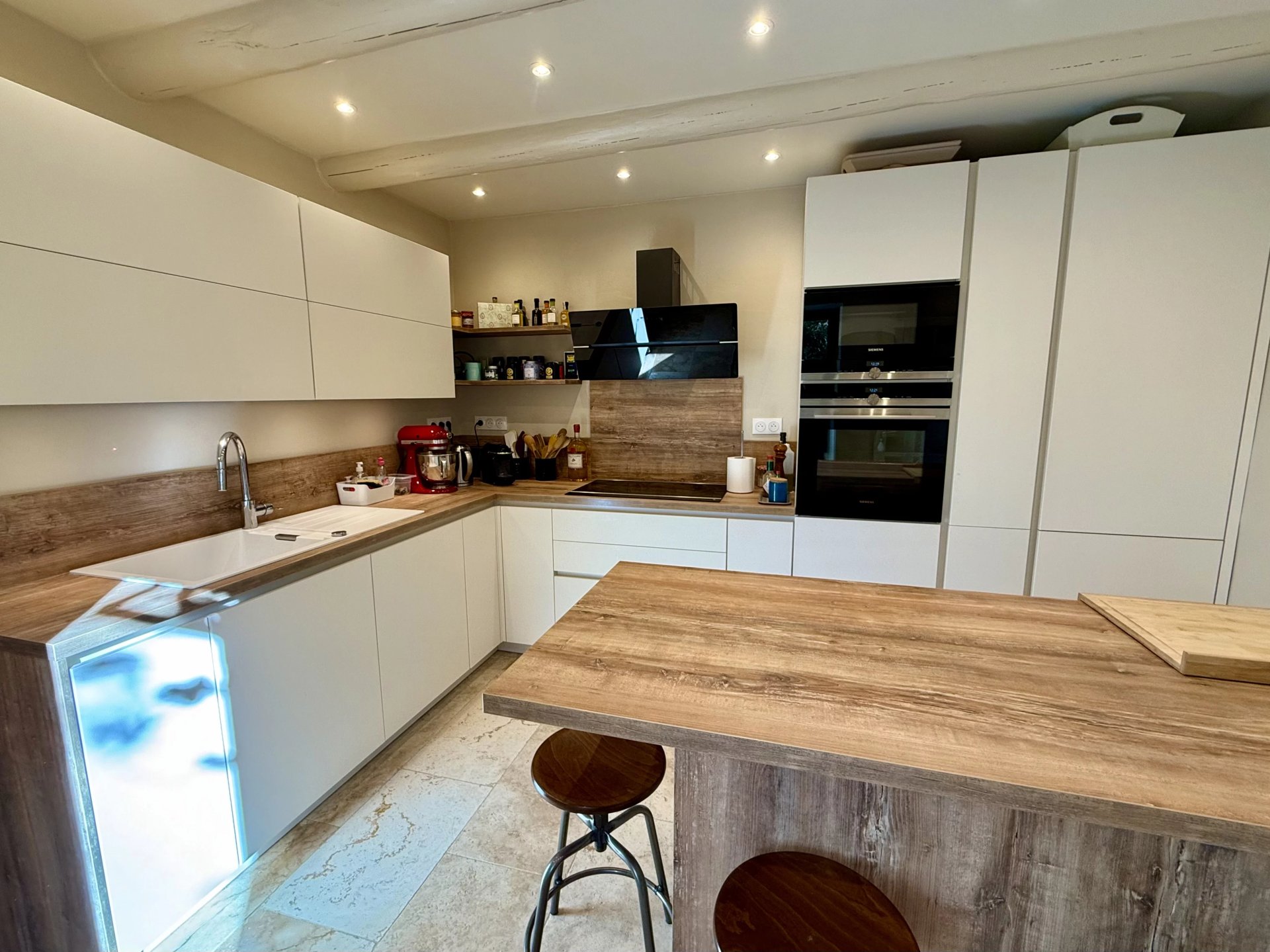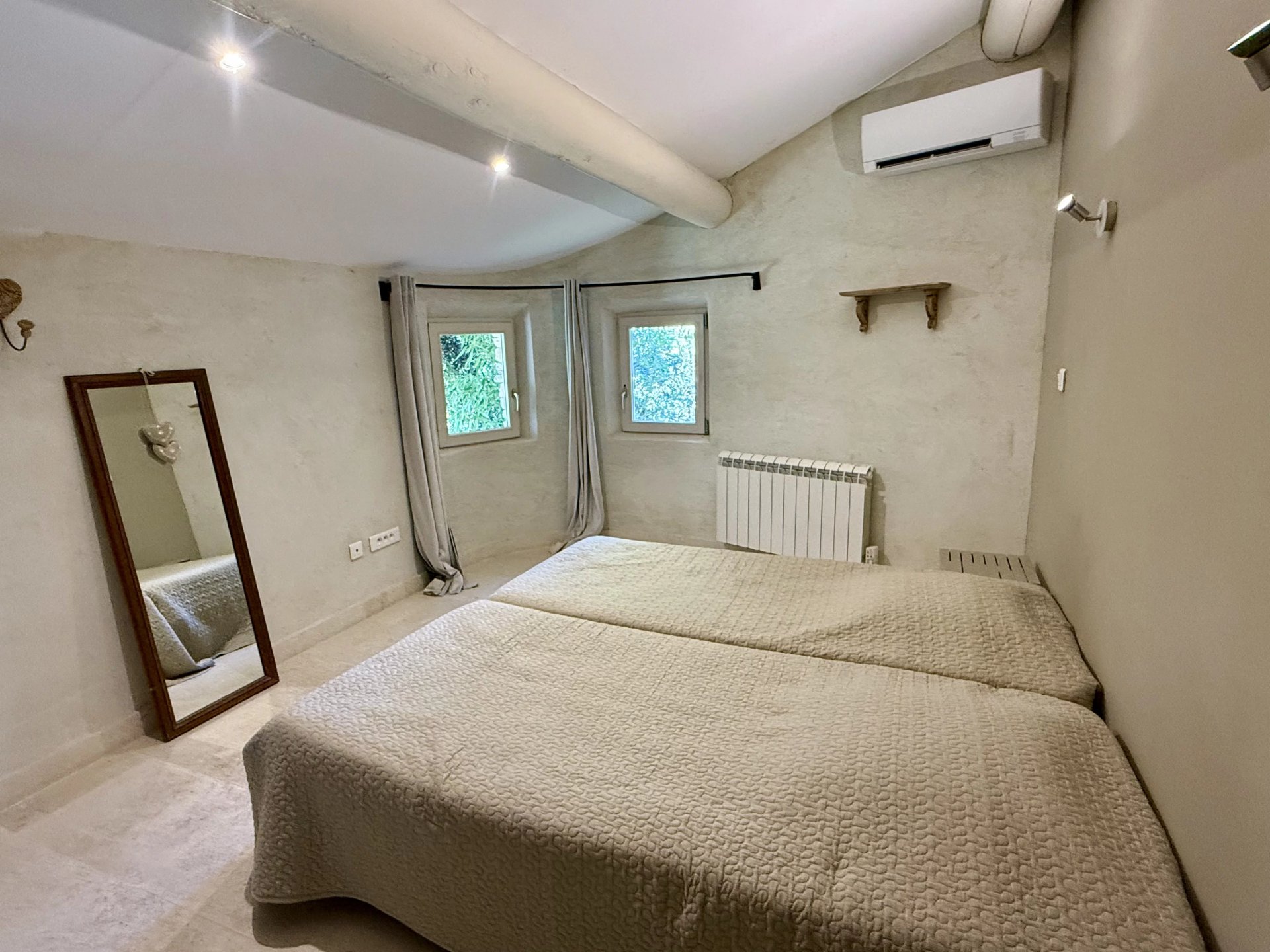 Outside, a beautiful swimming pool invites you to relax, surrounded by a well-tended garden with local plants: olive trees, lavender, and cypress trees punctuate the landscape.