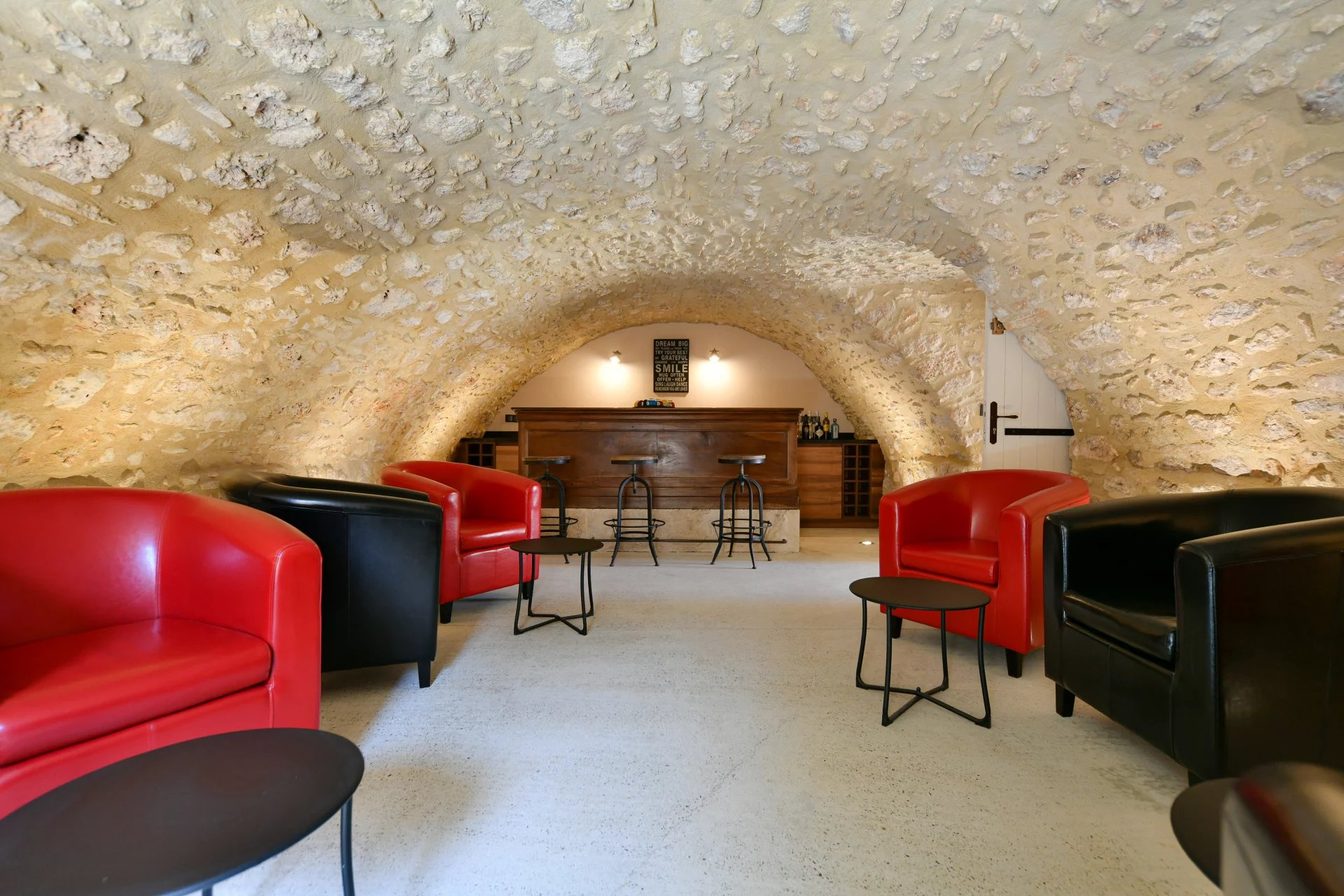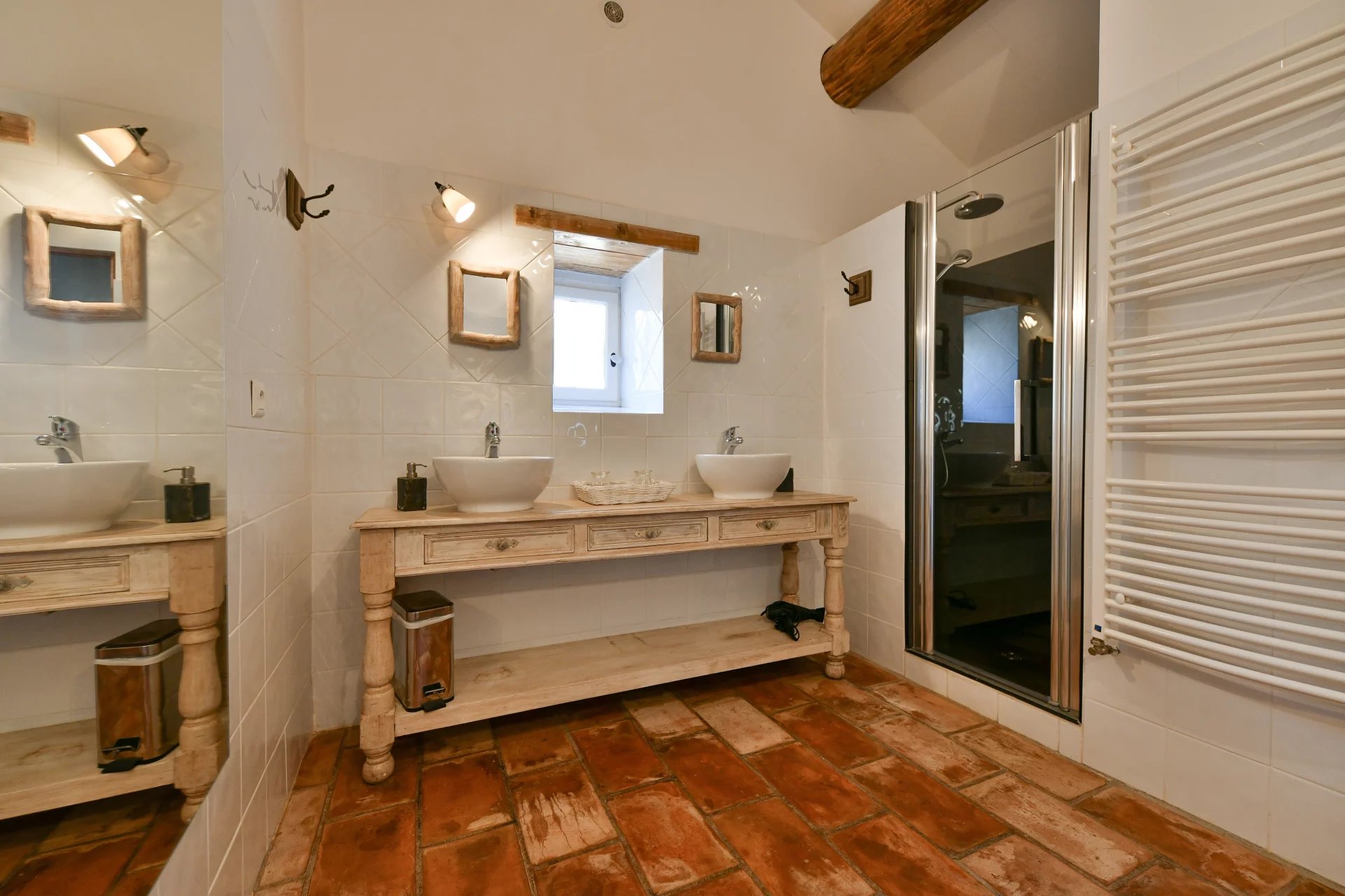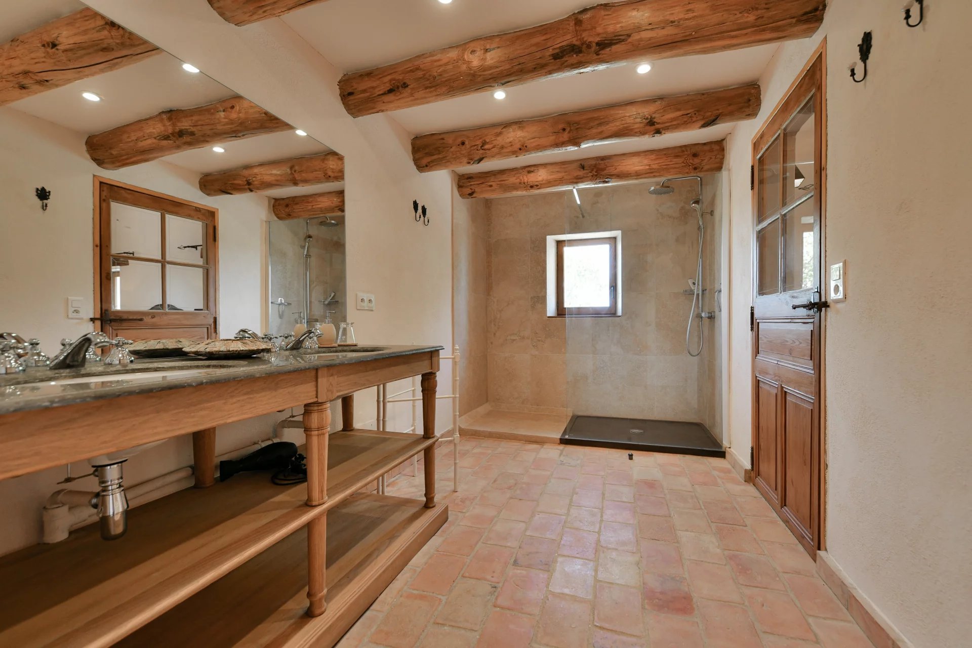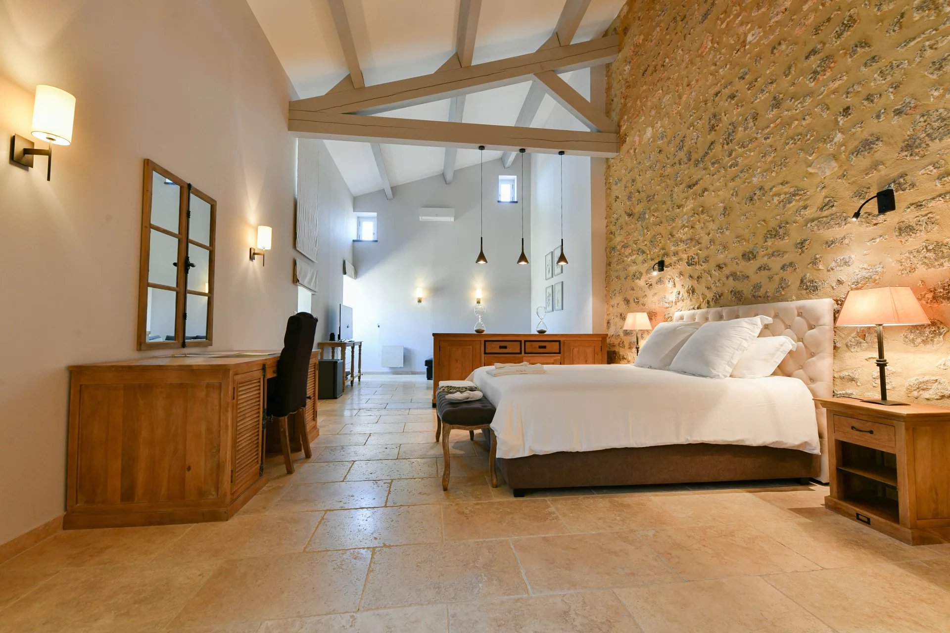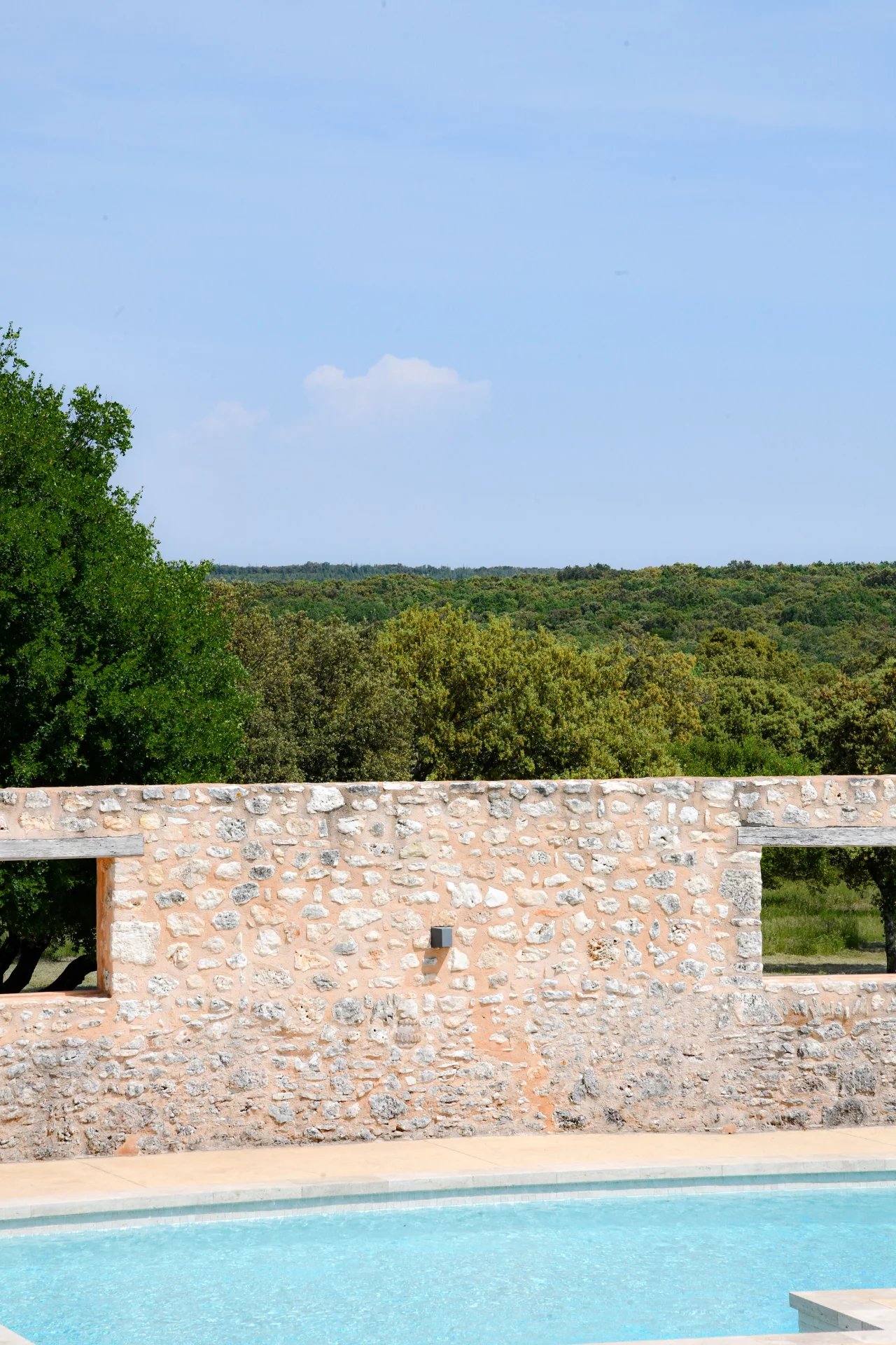 Magnificent reception areas such as the bar (36 m2), a reception room (25 m2) and a spacious living room (47 m2) with a fully equipped kitchen opening onto the dining area offering breathtaking views of the garrigue (grasslands) and its sunsets.