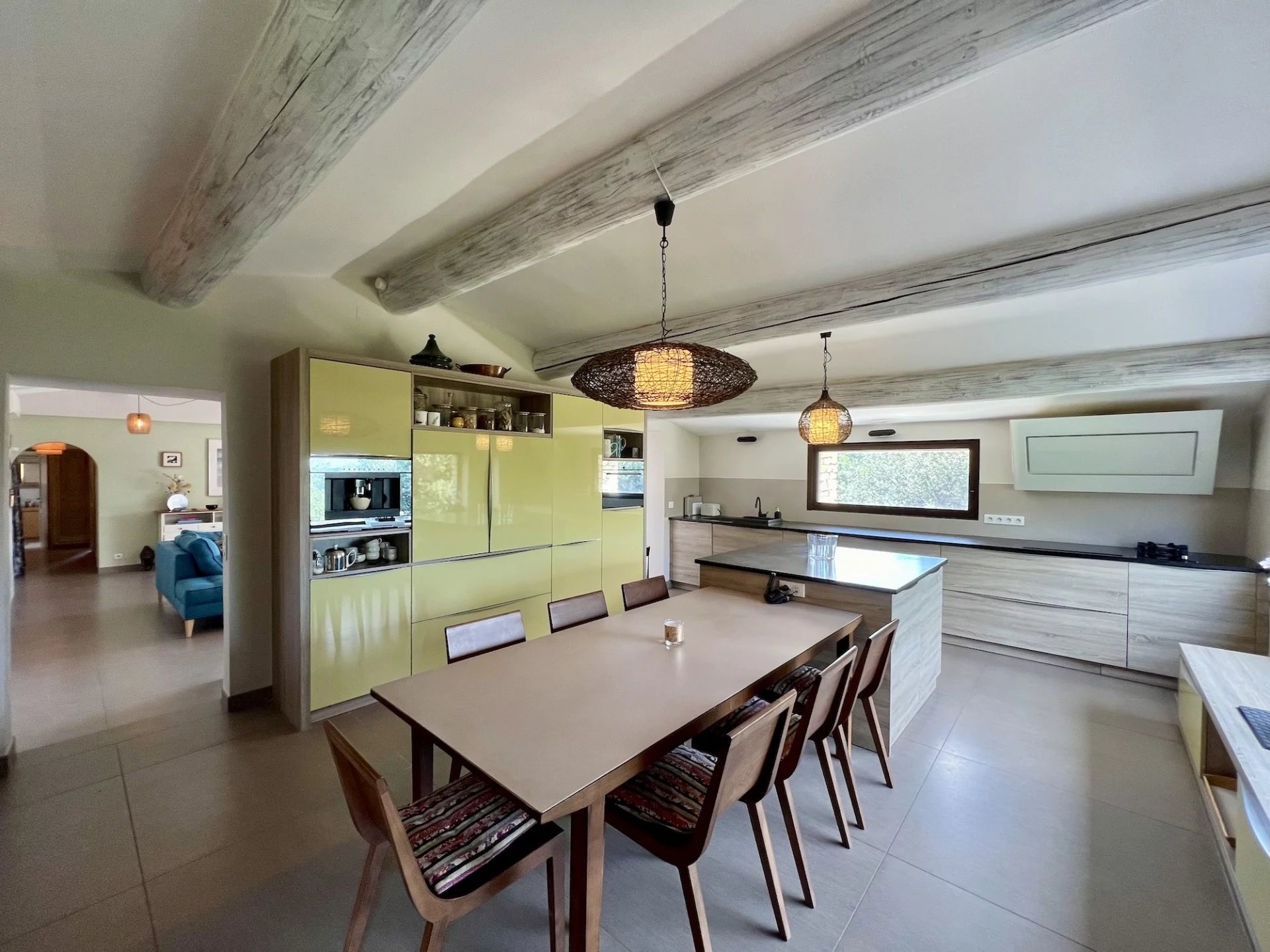 In the countryside of the village of Goult, enjoying a beautiful view of the Luberon and the Alpilles, charming stone house with a built surface area of approximately 250 m2 plus workshop and garage.
