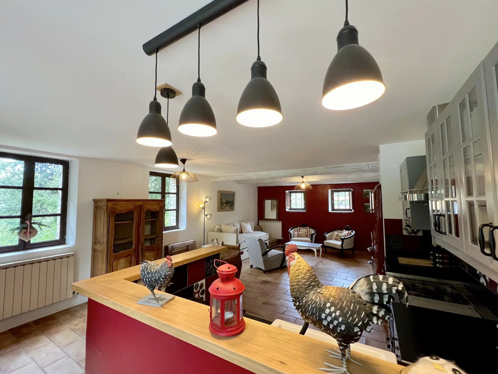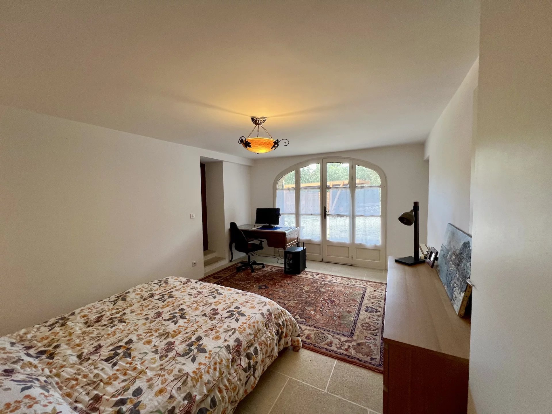 * Garden level (the outbuilding with independent access): a large living room with equipped kitchen, a bedroom, a bathroom (sink and shower) and a separate toilet. a wine cellar and a technical room complete the ensemble.