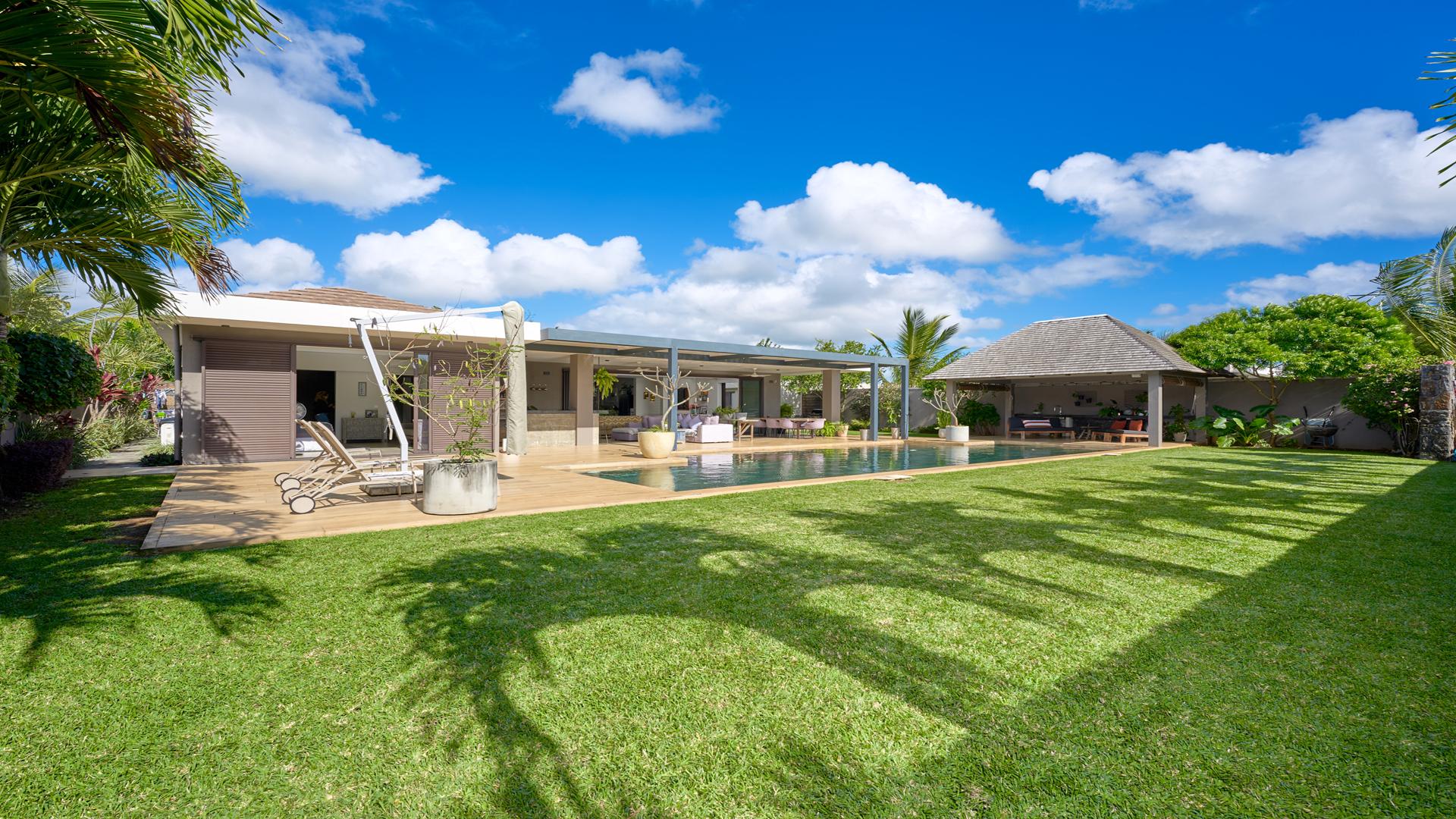 Located in the vibrant heart of Grand-Baie, this elegant and contemporary property offers a rare opportunity to experience luxury island living at its finest. Designed for comfort, space, and effortless indoor-outdoor flow, the property features an expansive 3-bedroom villa and a private, self-contained, 1-bedroom flatlet with its entrance; ideal for guests, long stays, or rental potential. In the villa, the modern, fully equipped kitchen connects beautifully to a bright, open-plan lounge and dining area, extending seamlessly onto a generous 91 m² covered terrace. Overlooking a manicured tropical garden, the terrace invites you to relax beside a swimming pool or enjoy alfresco dining under the shade of a gazebo. Perfectly suited for a family lifestyle or as a prestigious holiday home, the villa is complemented by 2 automated garages and abundant storage space.Its central location ensures that everything Grand Baie has to offer, boutique shopping, private schools, restaurants, beach clubs, and medical centres, is just minutes away. This is more than just a home; it’s a premium real estate opportunity in Mauritius.Contact us for a visit.