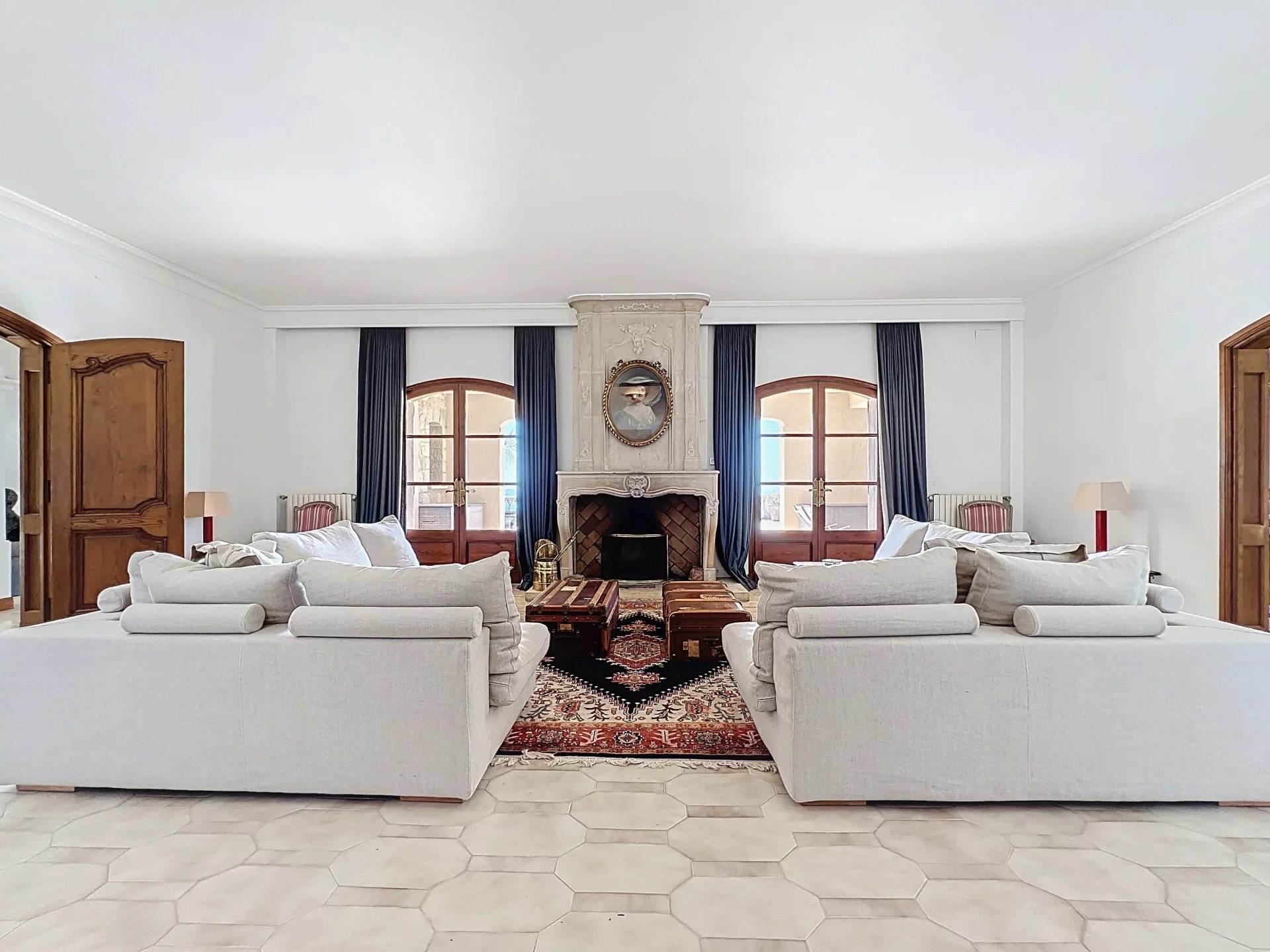 The main residence, whose first wing was built in the 1950s and expanded and modernized in the 1970s by a renowned family from the French aristocracy, was designed like a castle with its 18th-century fireplace, majestic entrance, and various marble and stone objects. The private areas for the owners and their guests are well separated from the numerous outbuildings for the household staff, gardeners, and drivers.
