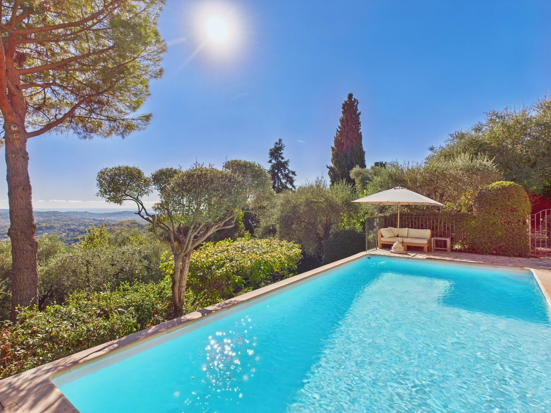 This villa of 195m2 boasts one of the most spectacular views found in the hills behind Valbonne. From all 4 terraces you have a panoramic view of the coast and the rolling hills lined with Cyprus trees that lead to the sea..