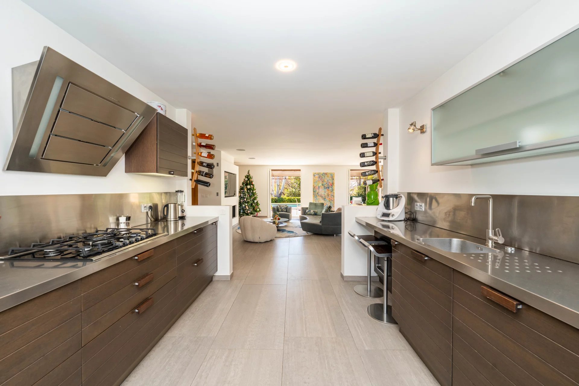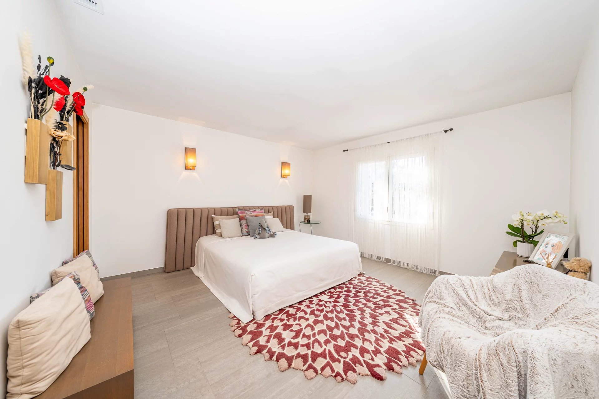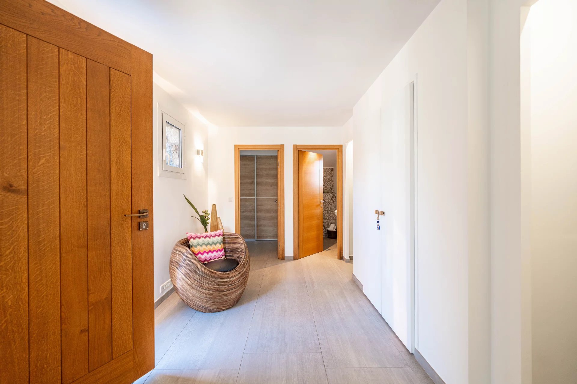 There is also a master bedroom with a dressing and en-suite bathroom, a second bedroom en-suite bathroom. All rooms have direct access to the outdoors. Upstairs, a third bedroom with bathroom completes the property.