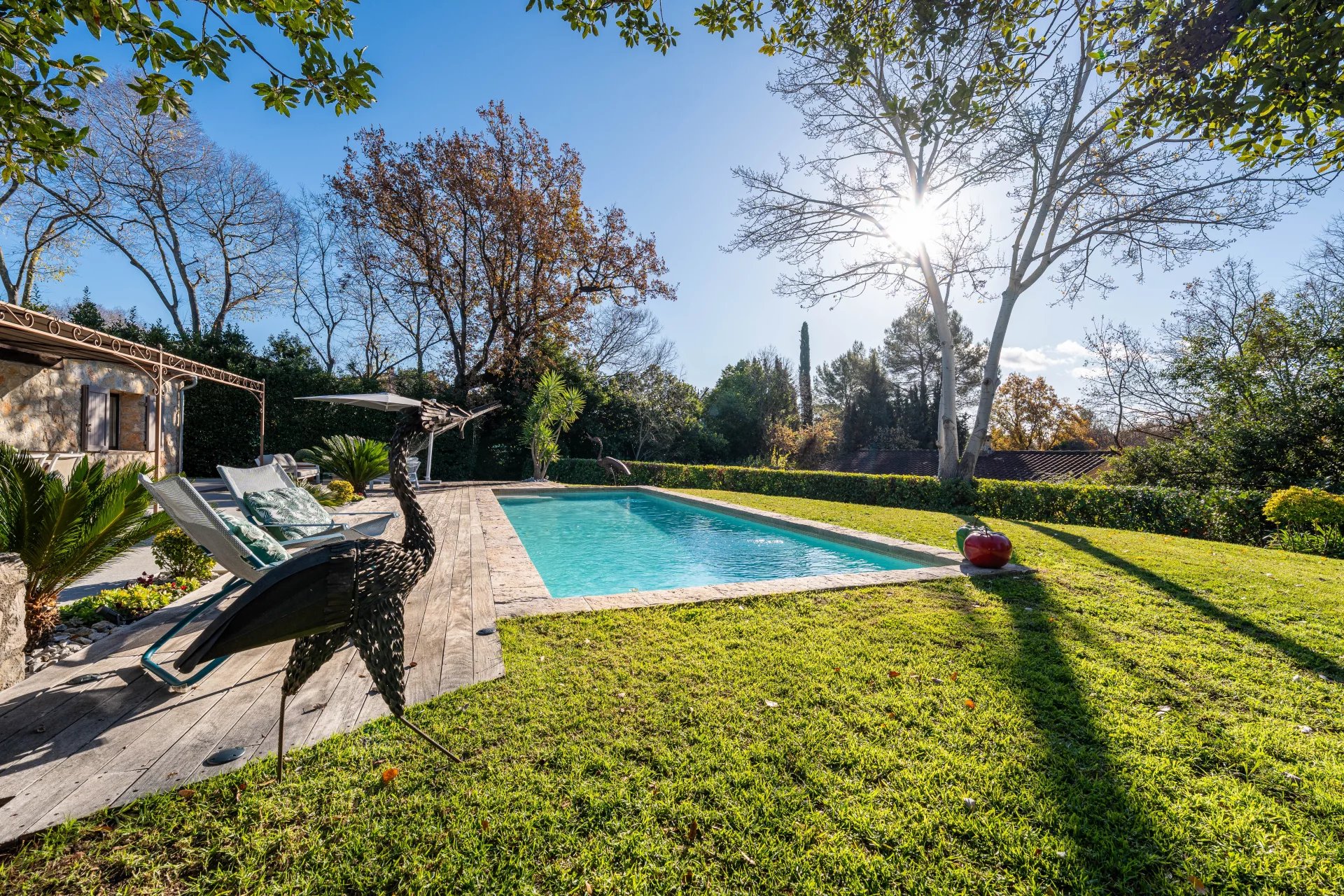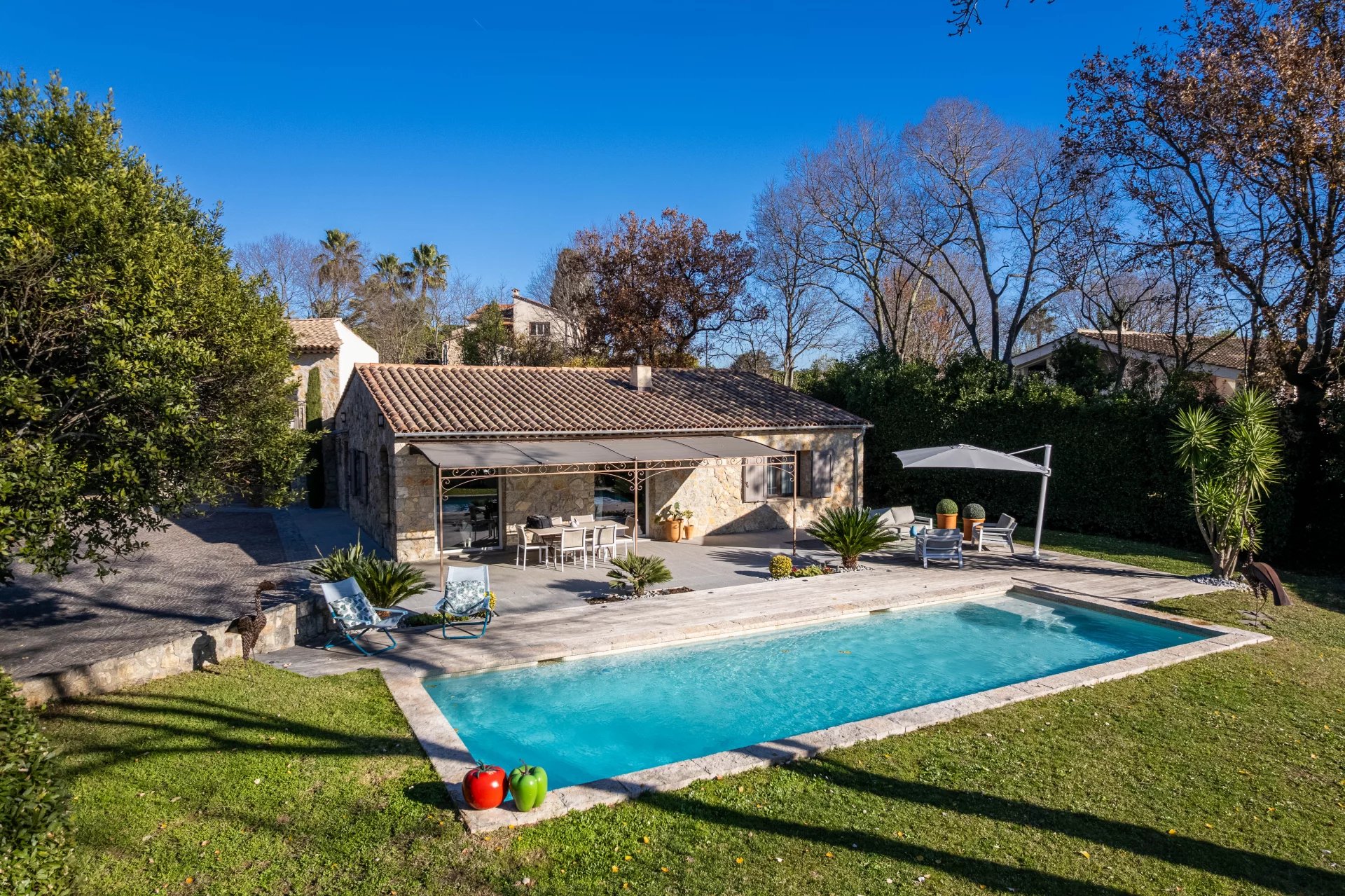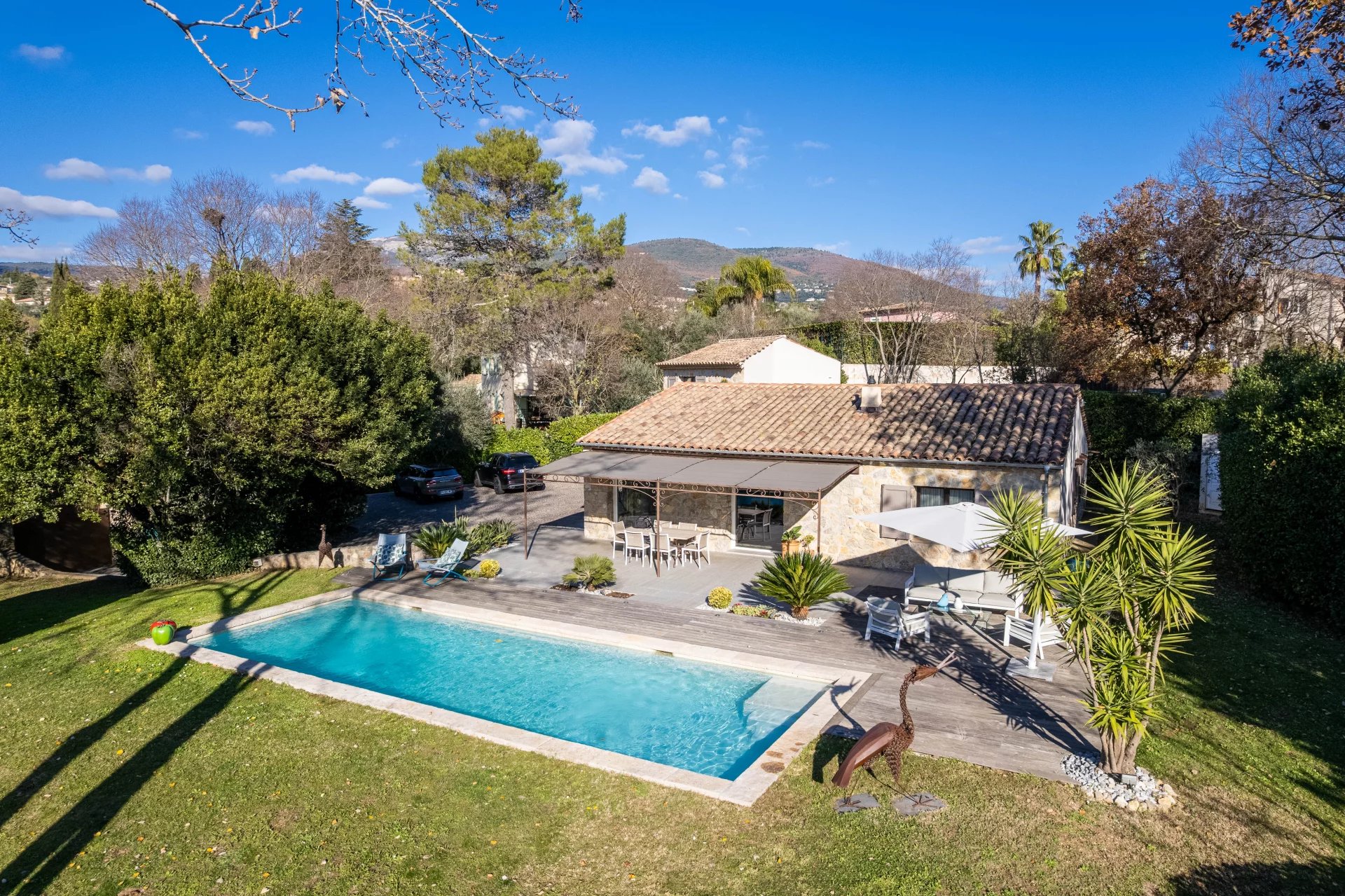 Grasse Saint-Jacques, 10 minutes from Mougins and international schools. This stone villa is located at the end of a private road, in a quiet and privileged environment.