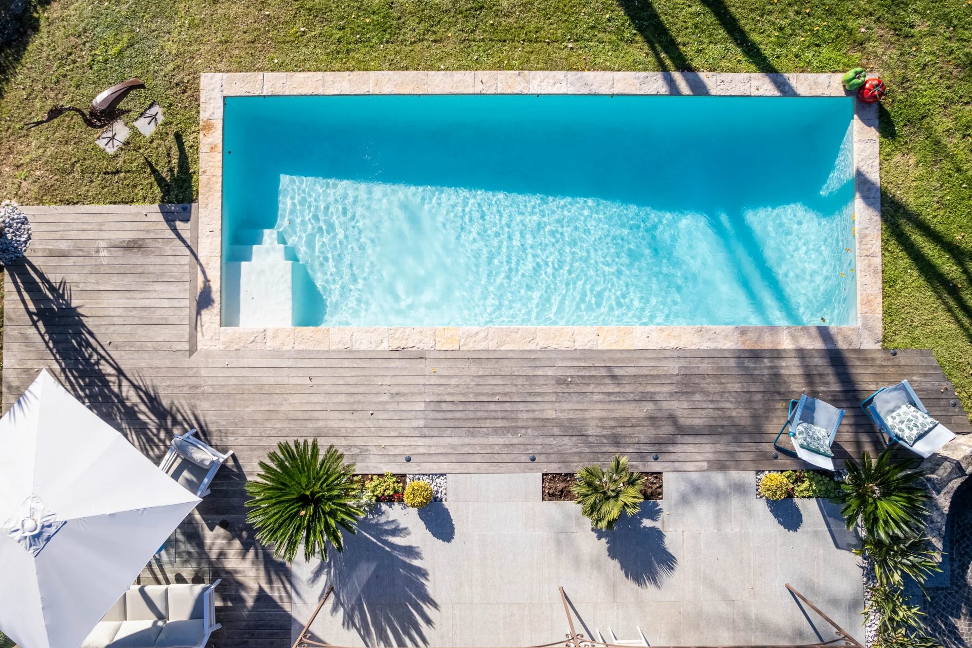 The land are completely flat and landscaped, with a traditional 11 ร 4 m swimming pool and large terraces.