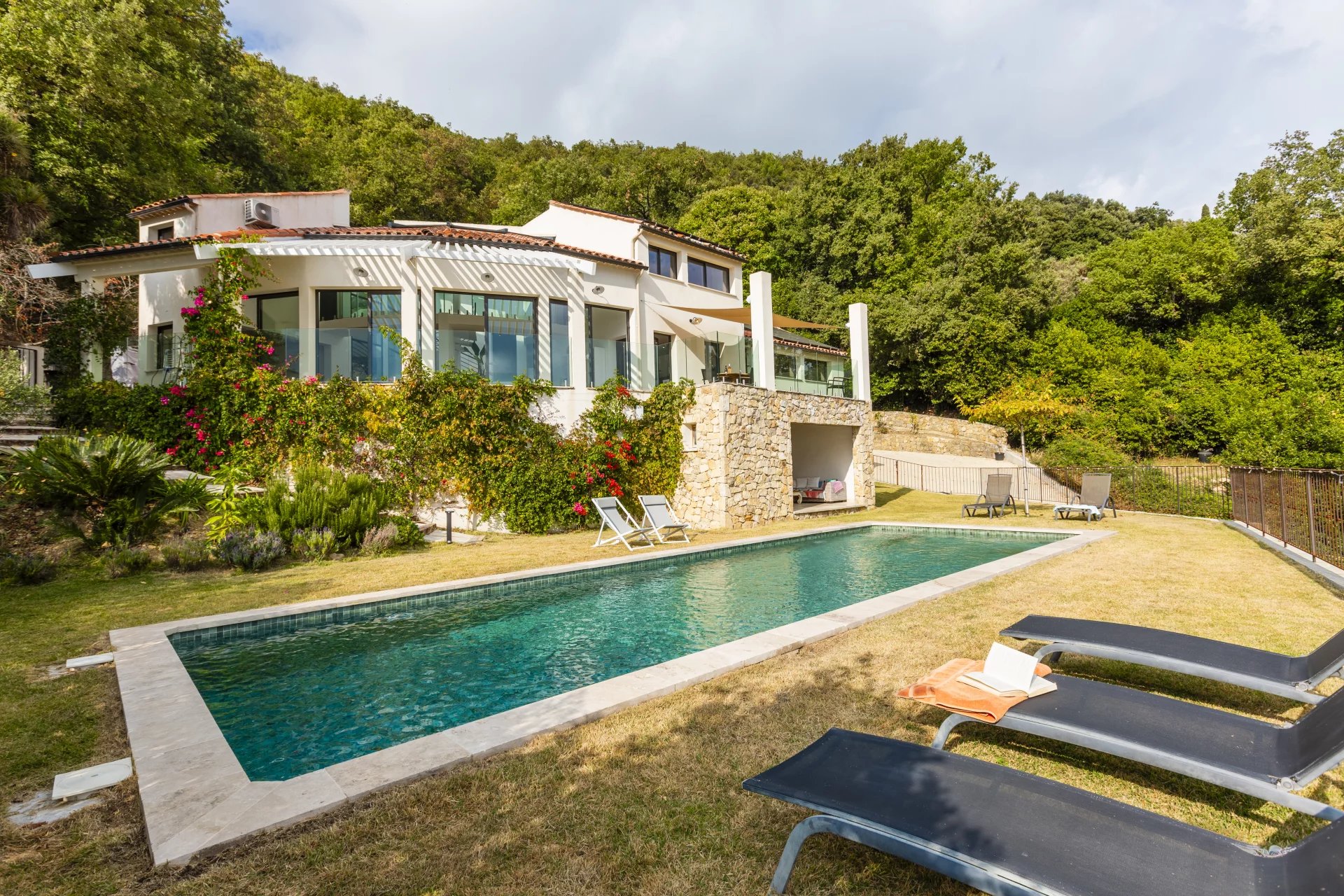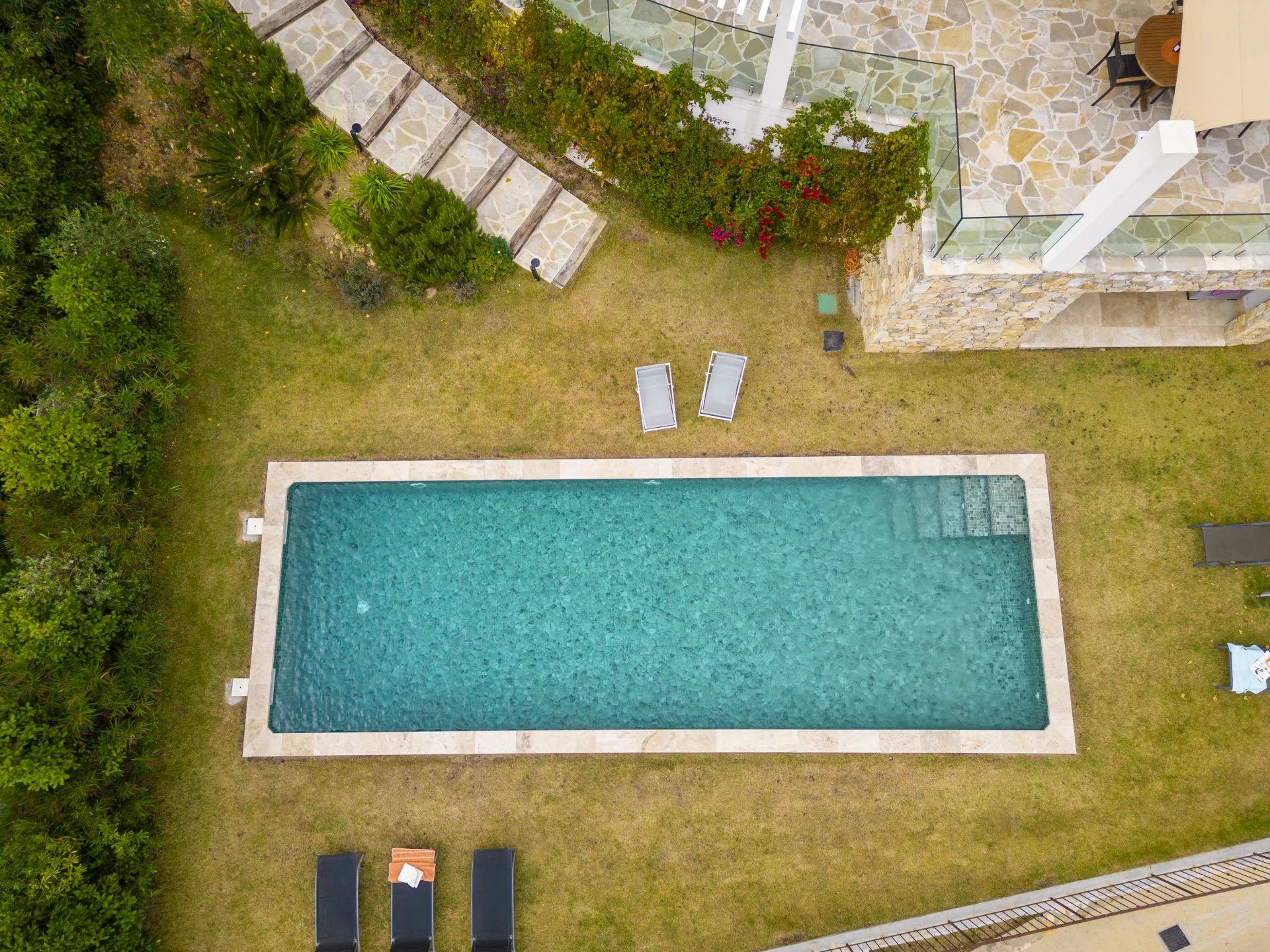 Contemporary villa with a bold design, designed to offer exceptional panoramic views thanks to its large floor-to-ceiling windows.