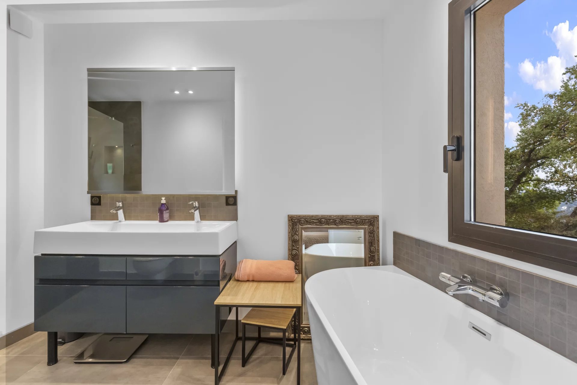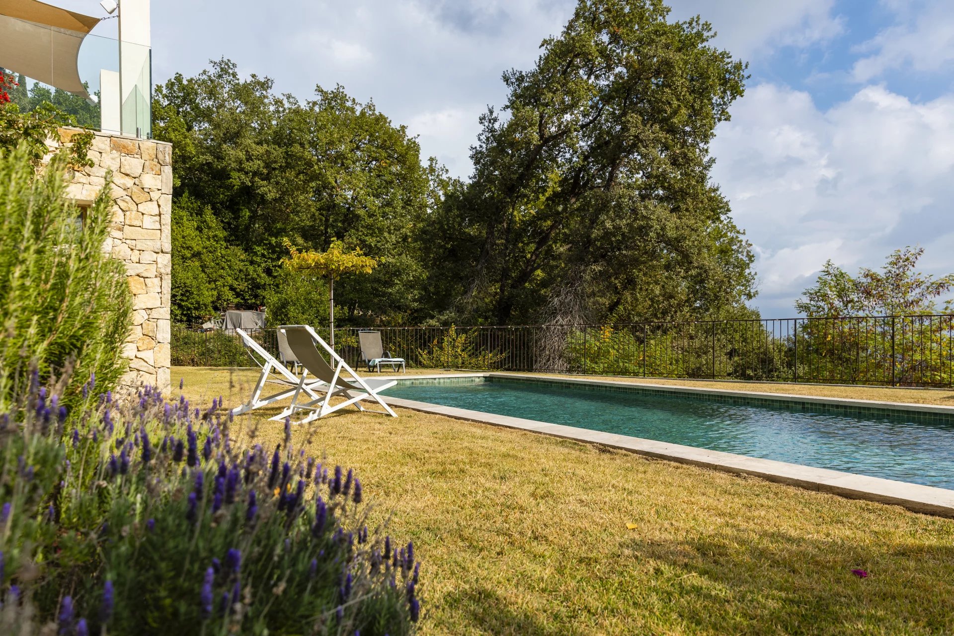 It offers four en-suite bedrooms, a cosy TV lounge, a garage, a beautiful swimming pool, and a pool house. Each space has been carefully designed to ensure absolute comfort.