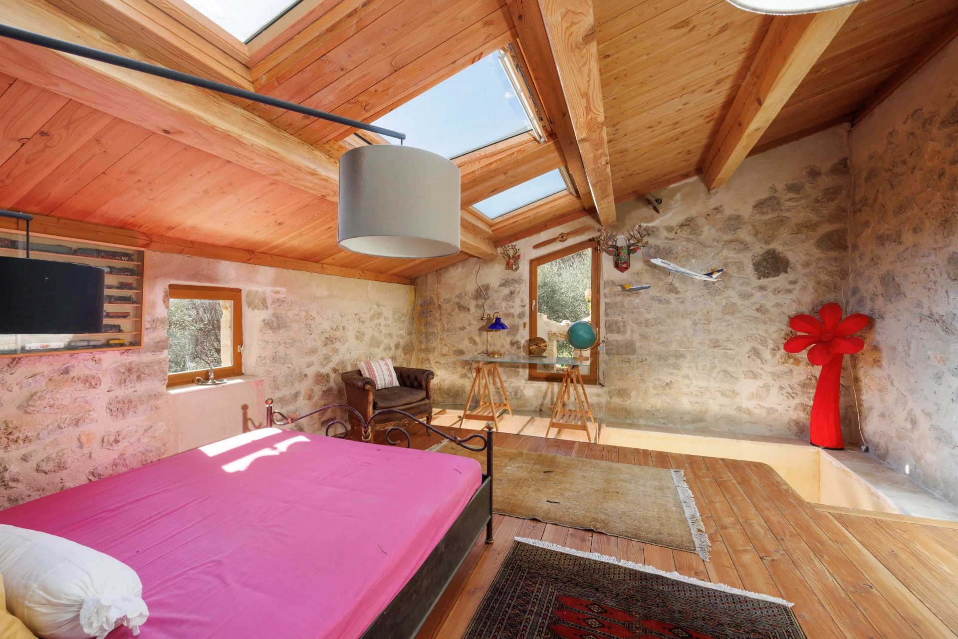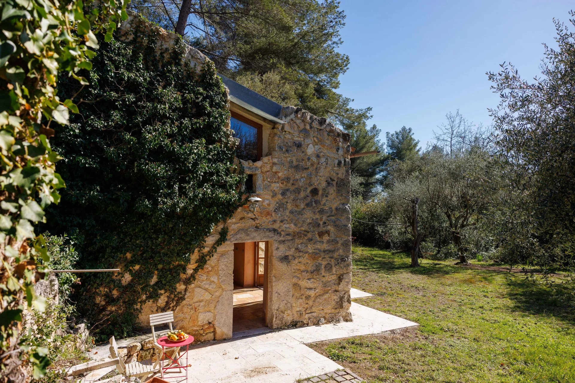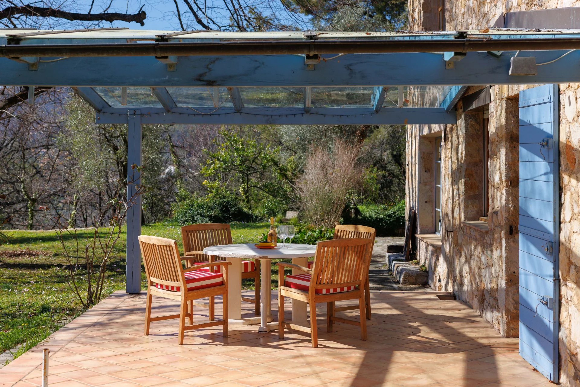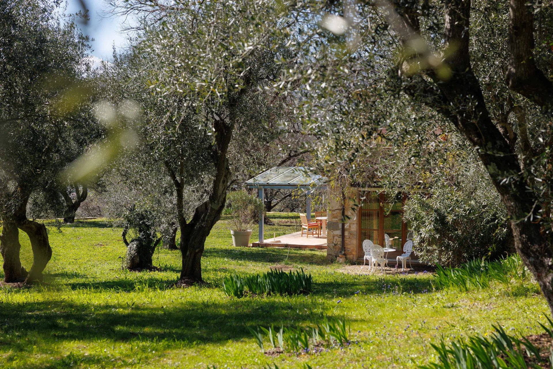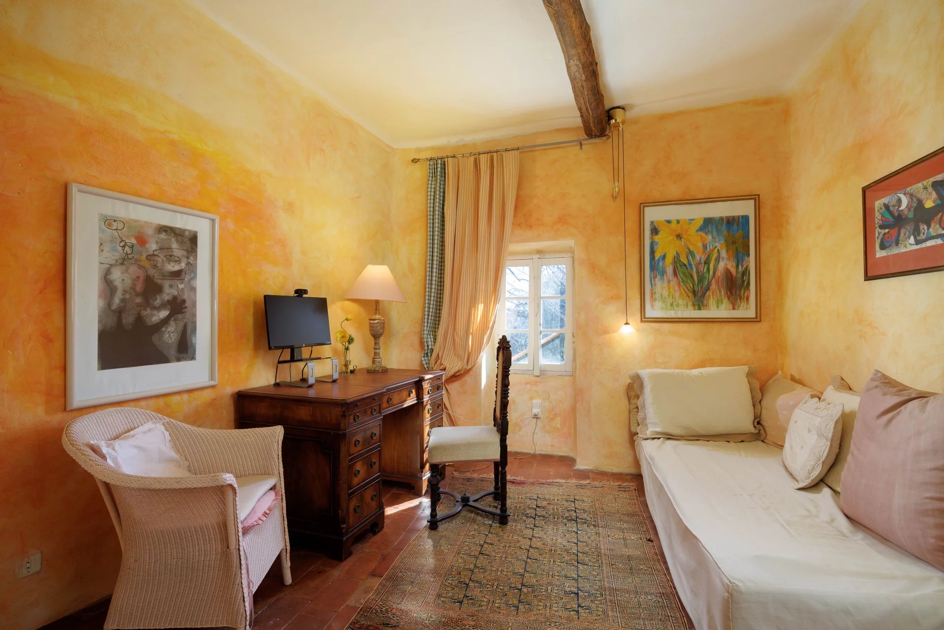 The main house features a pretty country kitchen, a dining room with fireplace and large French windows opening onto the garden and terrace surrounded by olive trees.