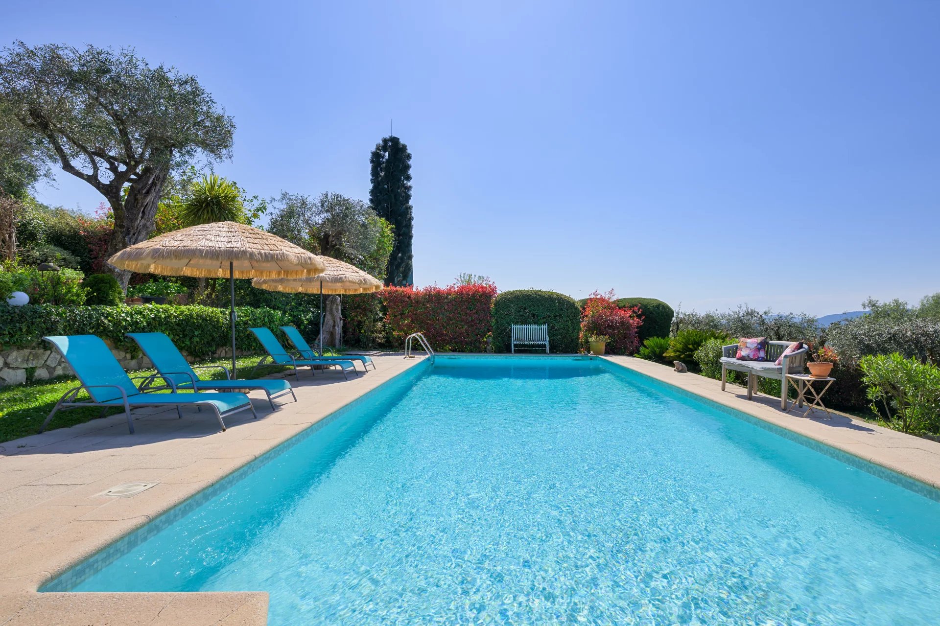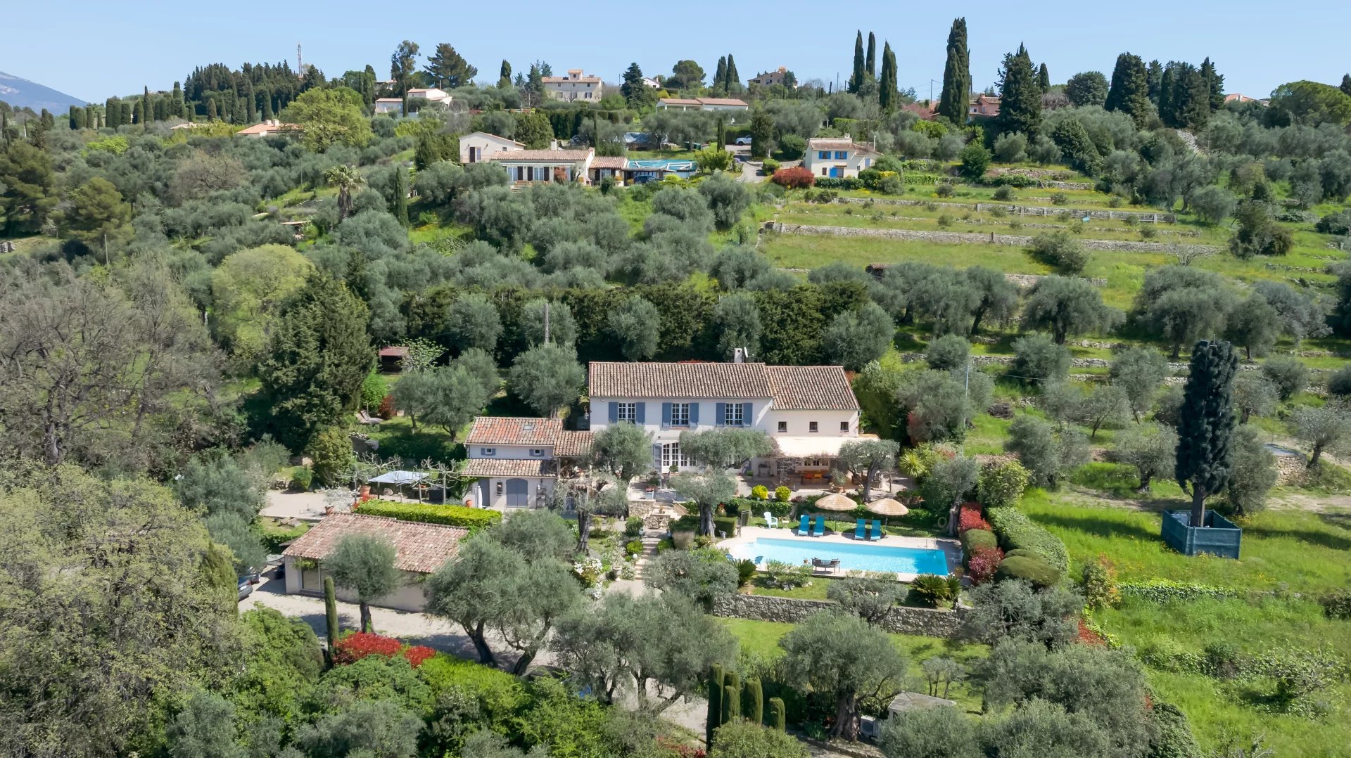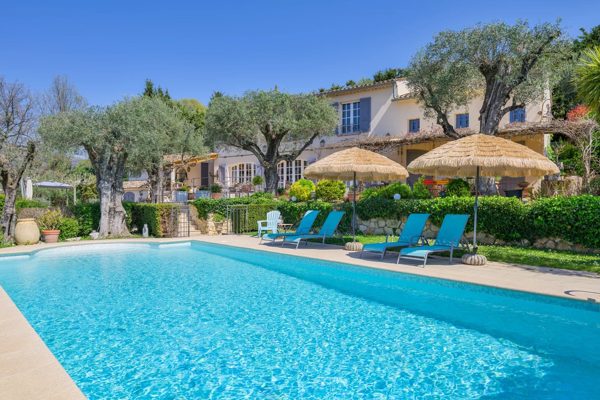 Nestled within a beautifully landscaped of approx. 3,215 m2 plot, this property is a true haven of peace, adorned with olive trees and fruit trees. The swimming pool, secured with a protective barrier, blends harmoniously into this lush setting.