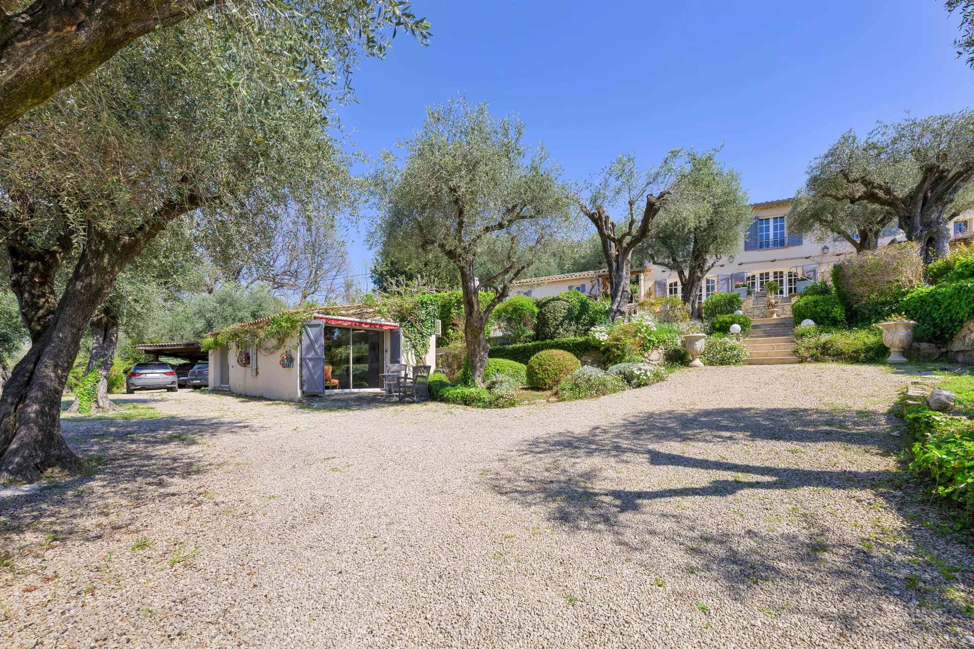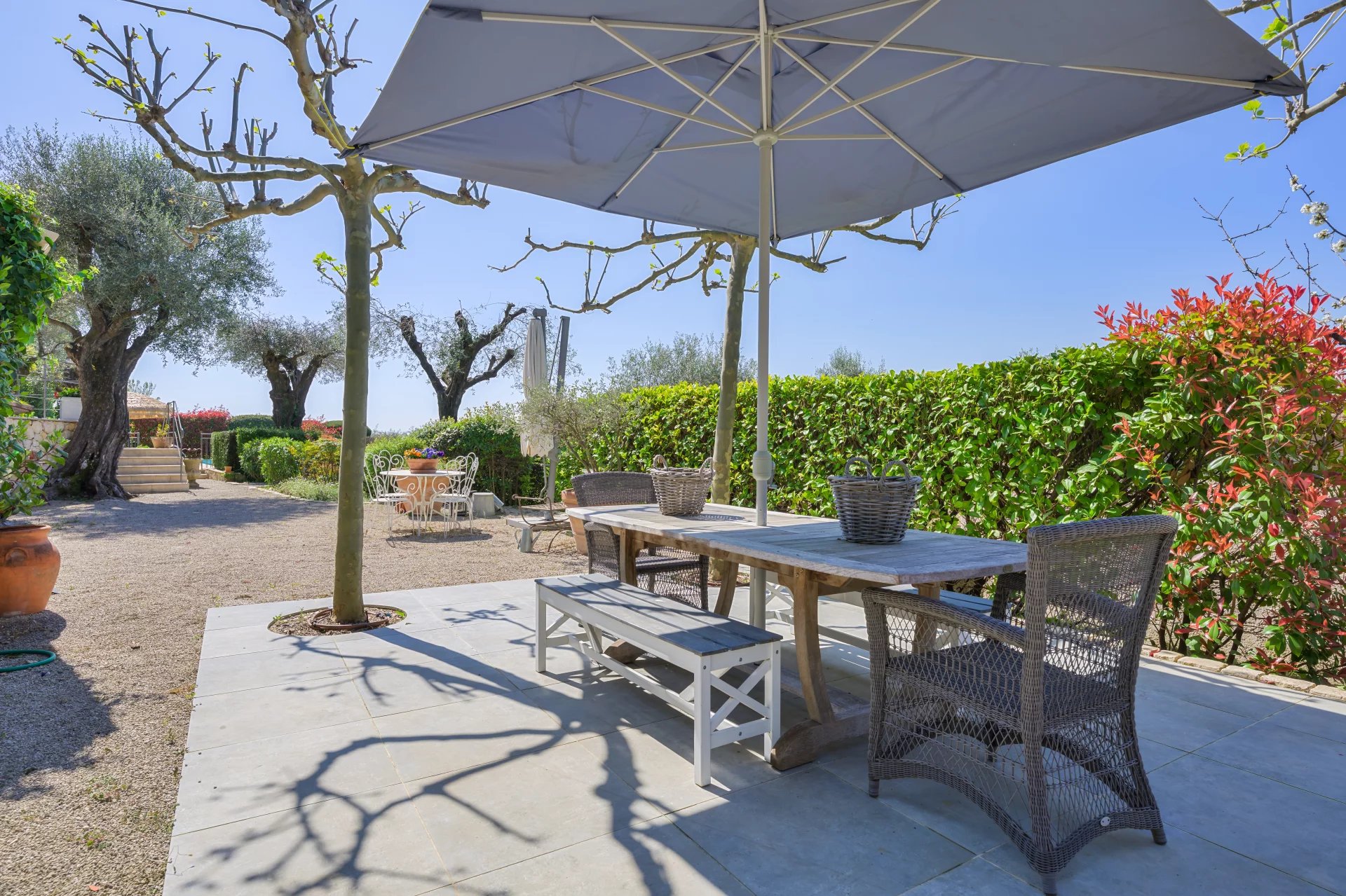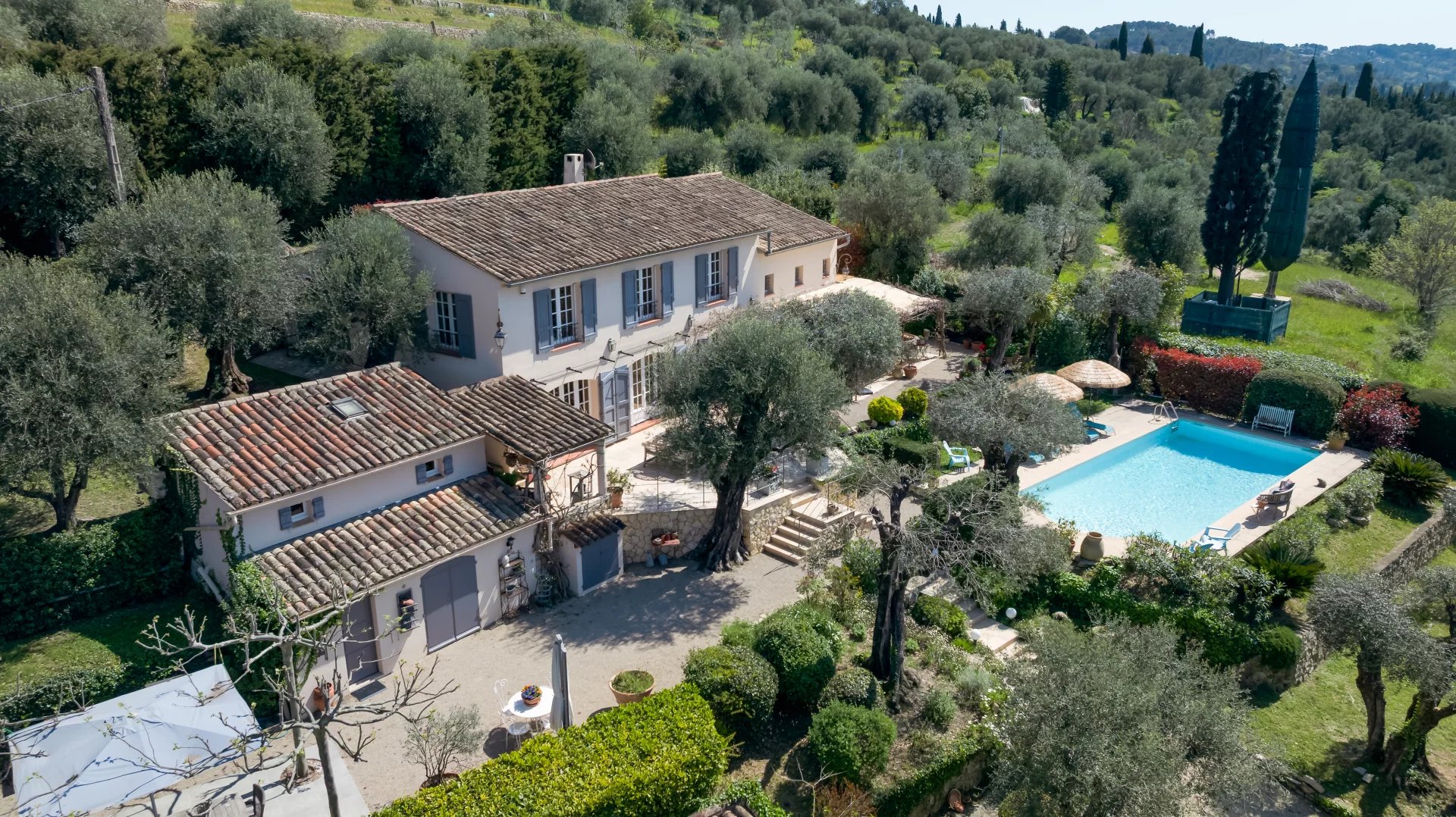 Nestled within a beautifully landscaped of approx. 3,215 m2 plot, this property is a true haven of peace, adorned with olive trees and fruit trees. The swimming pool, secured with a protective barrier, blends harmoniously into this lush setting.