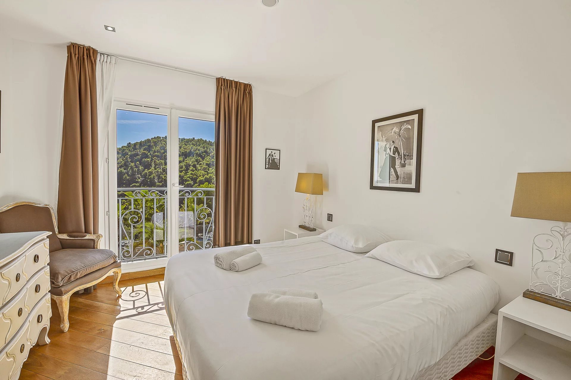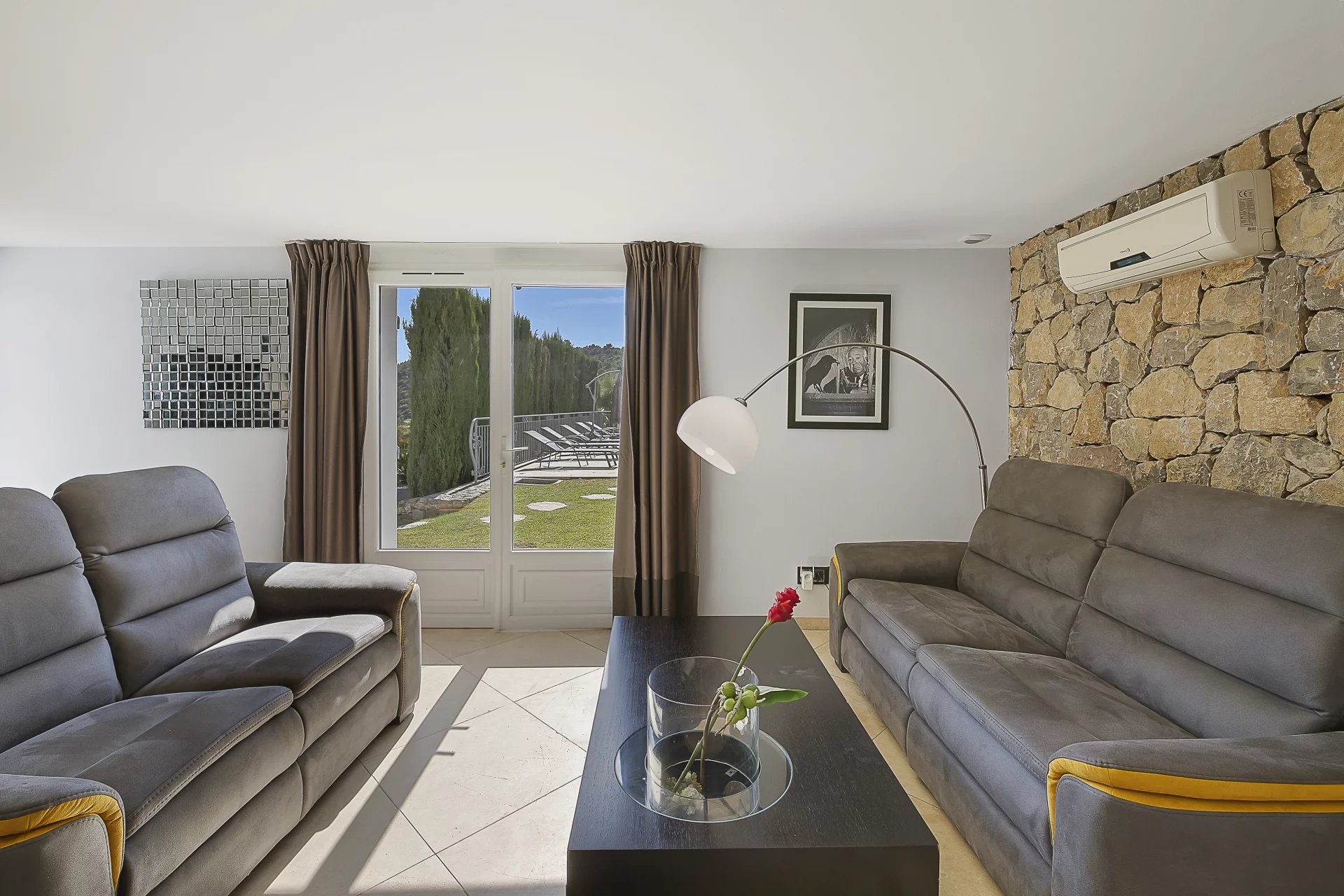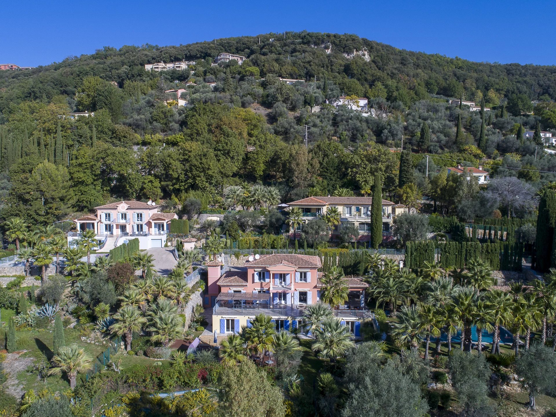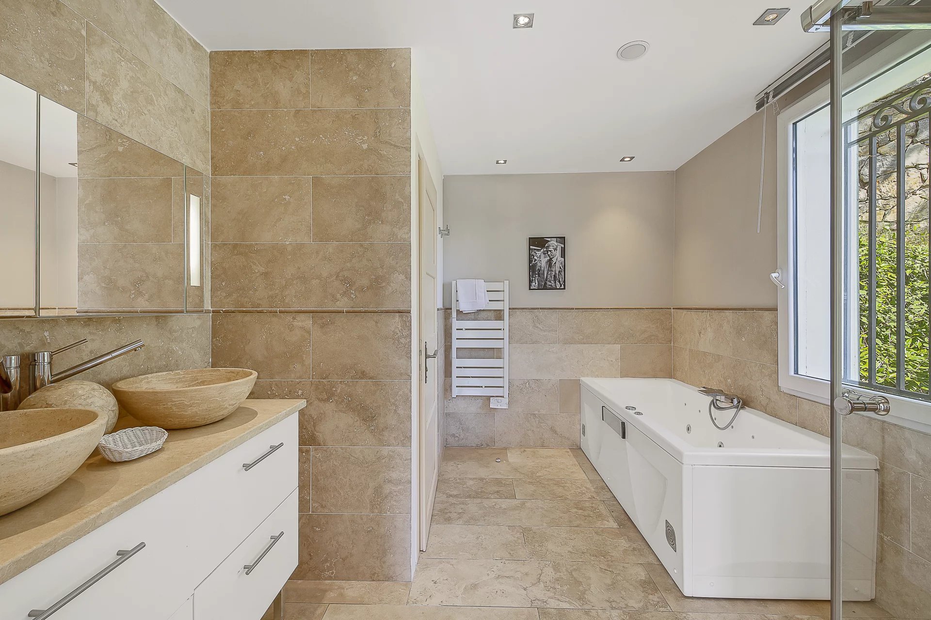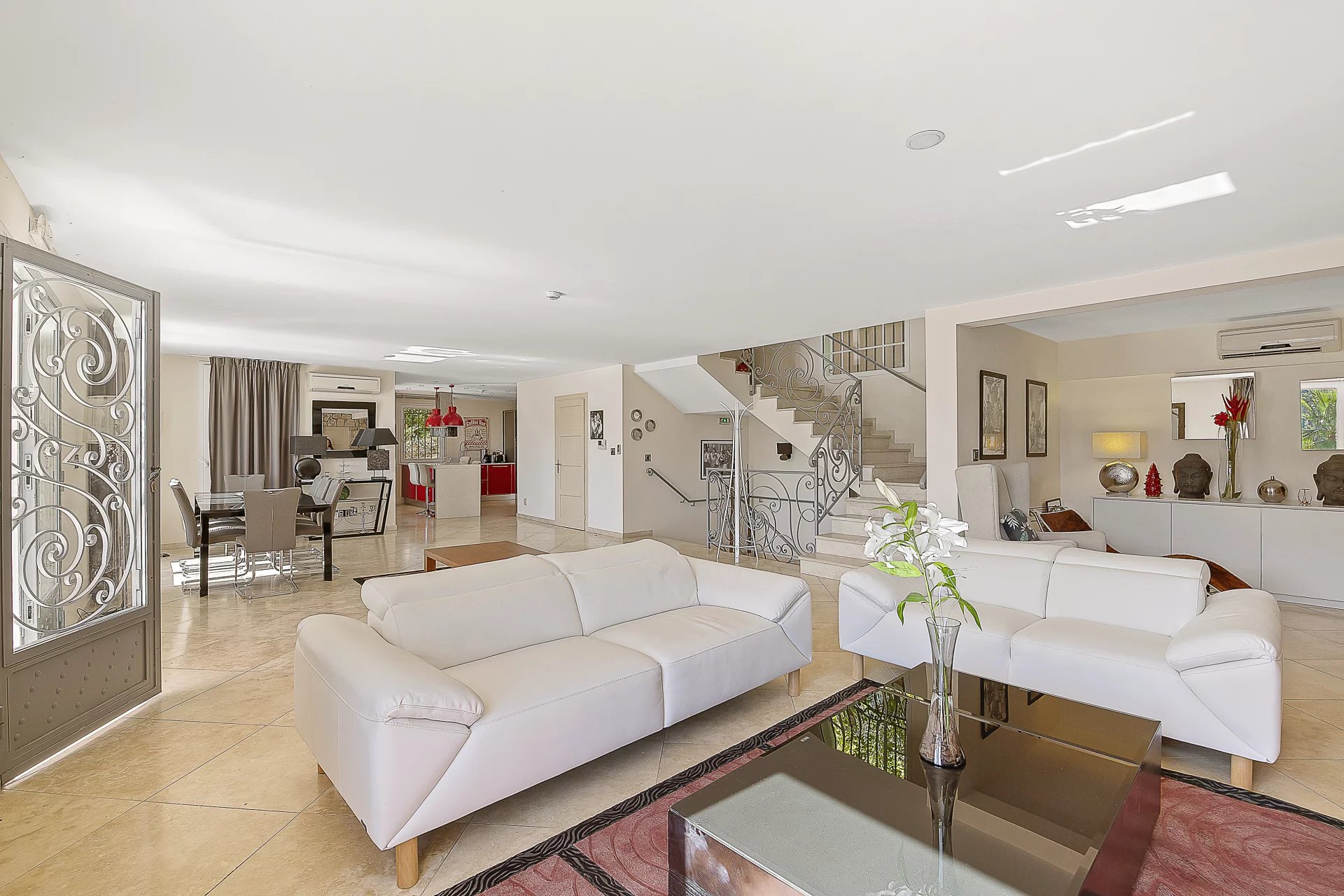 Luxurious neo-proveníçal villa of 390m2 with elegant fittings located in an intimate domain of three villas in a dominant position built on a ground planted with palm trees and various Mediterranean species.