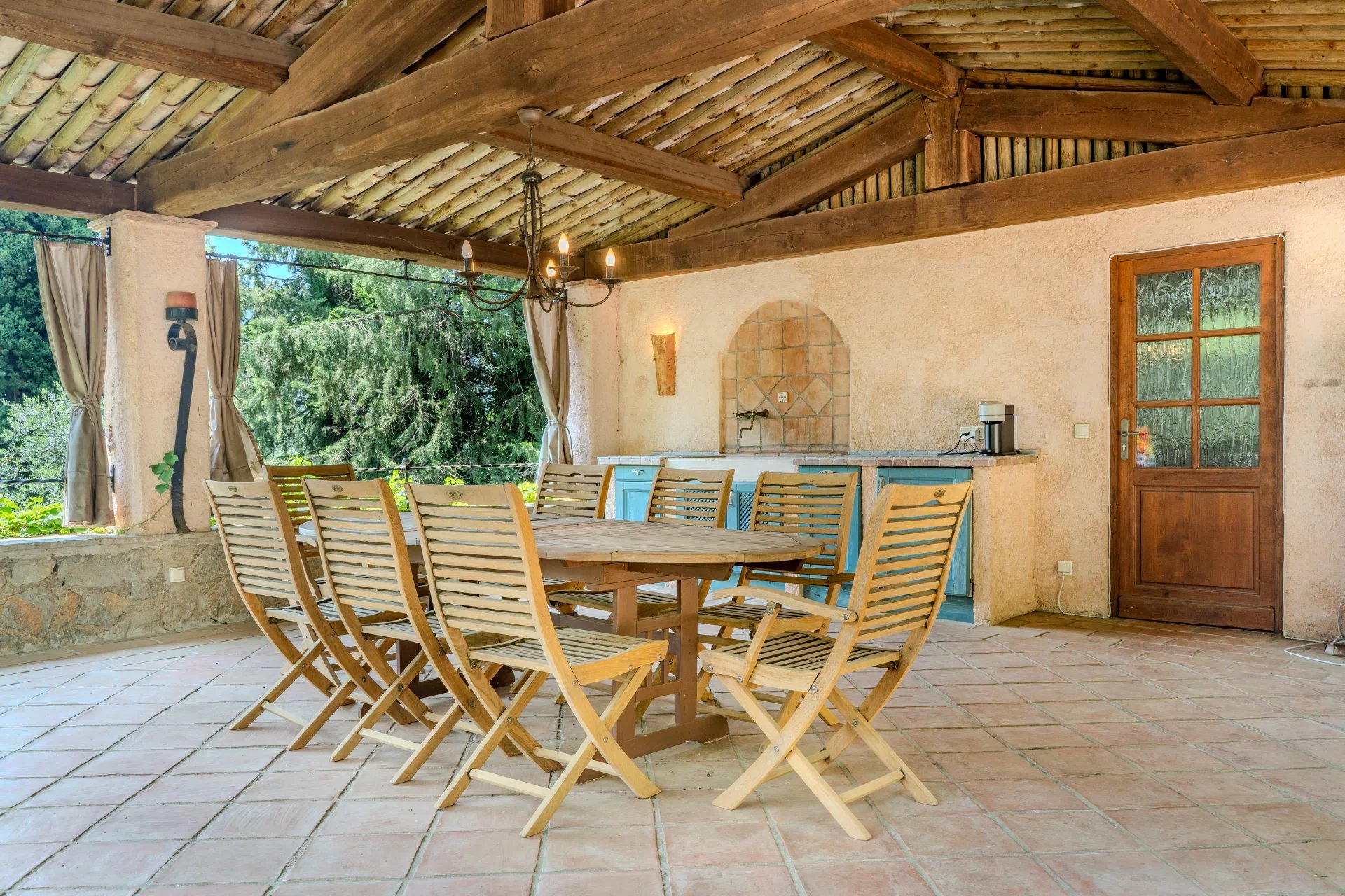 Offering approximately 335 m2 of living space, the property benefits from ideal exposure, absolute tranquility, and timeless charm. It is nestled on 3.6 hectares of terraced land, beautifully landscaped with Mediterranean vegetation, a mature olive grove, a forest, and a heated swimming pool (10 x 5.4 m) complemented by a spacious pool house, which would benefit from light refurbishment.
