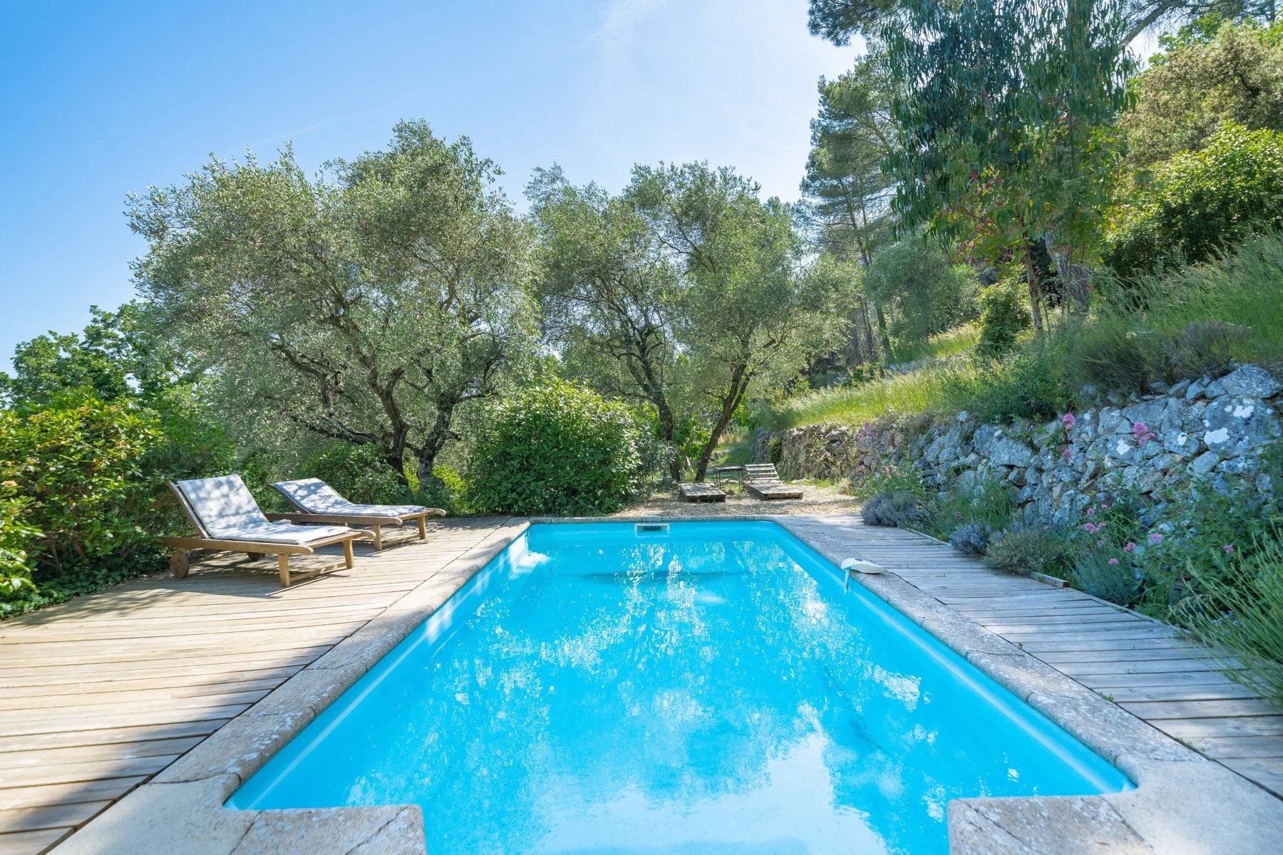 The villa has a swimming pool and lovely sunny terraces from which to admire the sea views and enjoy the tranquillity of the surroundings. Although the setting is peaceful, shops, schools and a golf course are just ten minutes away, combining the tranquillity of the Provencal countryside with the proximity of amenities. Agency fees payable by vendor