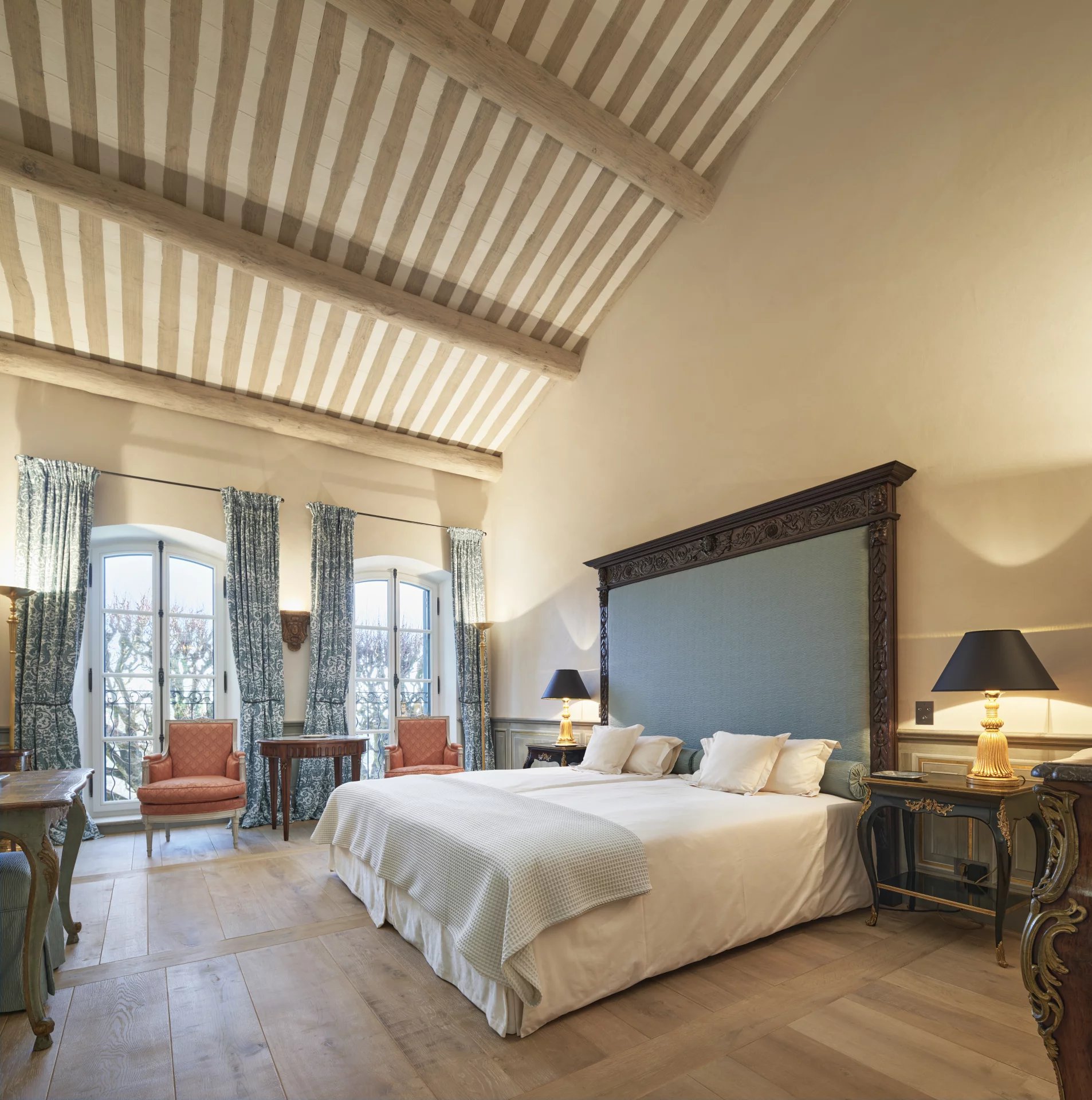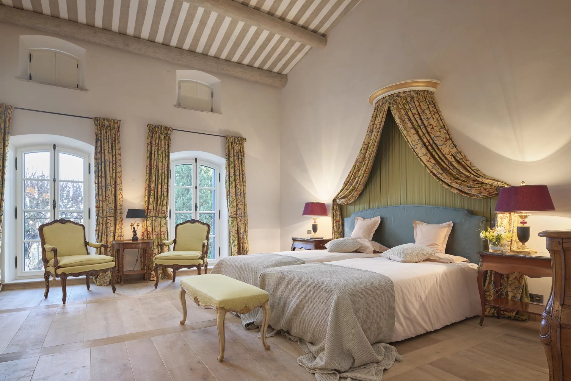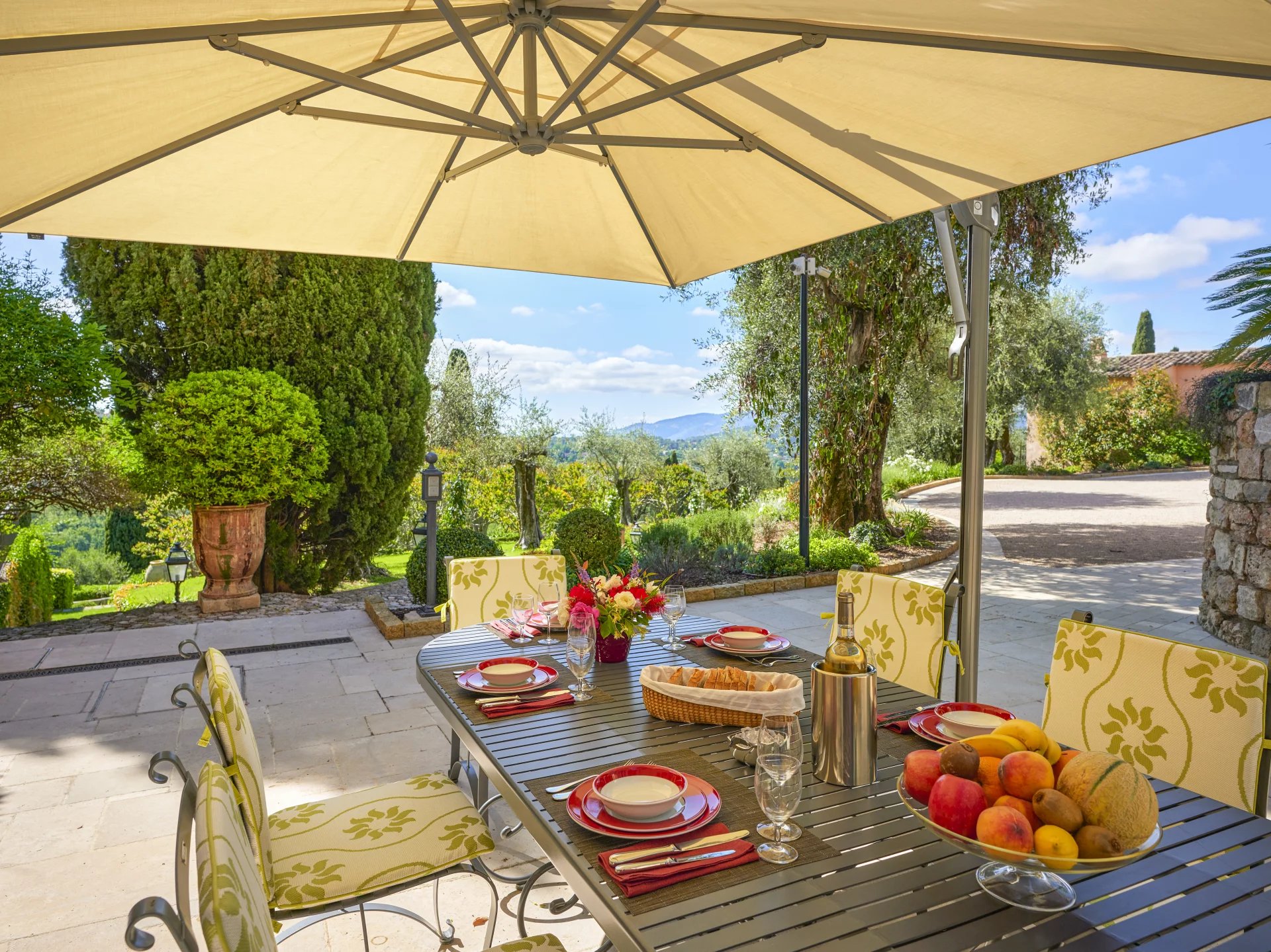 From the magnificent terraces, shaded by 180 year old lime trees, you have access to a romantic pond with koi carp, surrounded by box trees, cypresses and pines. The beautiful park also features countless fountains, an enchanting rose garden, an idyllic gazebo, an “Átang d’amour”, rare and exotic tree species and an extensive olive grove.