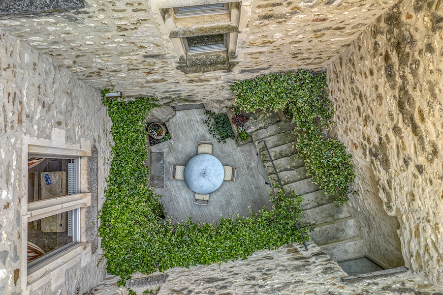 Entering through the large monumental door, you will discover a charming patio on the ground floor, whose coolness is conducive to relaxation on summer days.