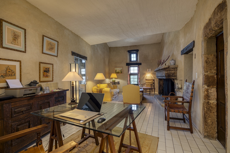 With its stone and pebble facade, Renaissance mullioned windows and canal tile roof, all the original architectural features have been preserved, including the facade with its two corner turrets, a large spiral staircase and an imposing fireplace inside.