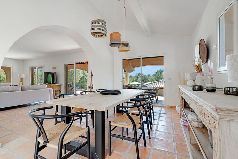 Outside, a 2,001 m2 garden hosts a heated saltwater pool (10 ร— 5 m), sunny terraces, and a pool house. A garage and automatic gate complete the amenities of this rare property. Reversible air conditioning.