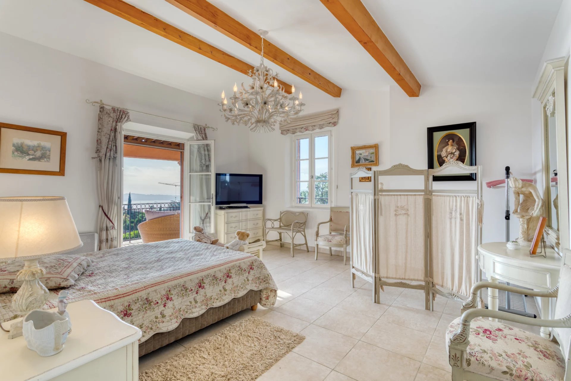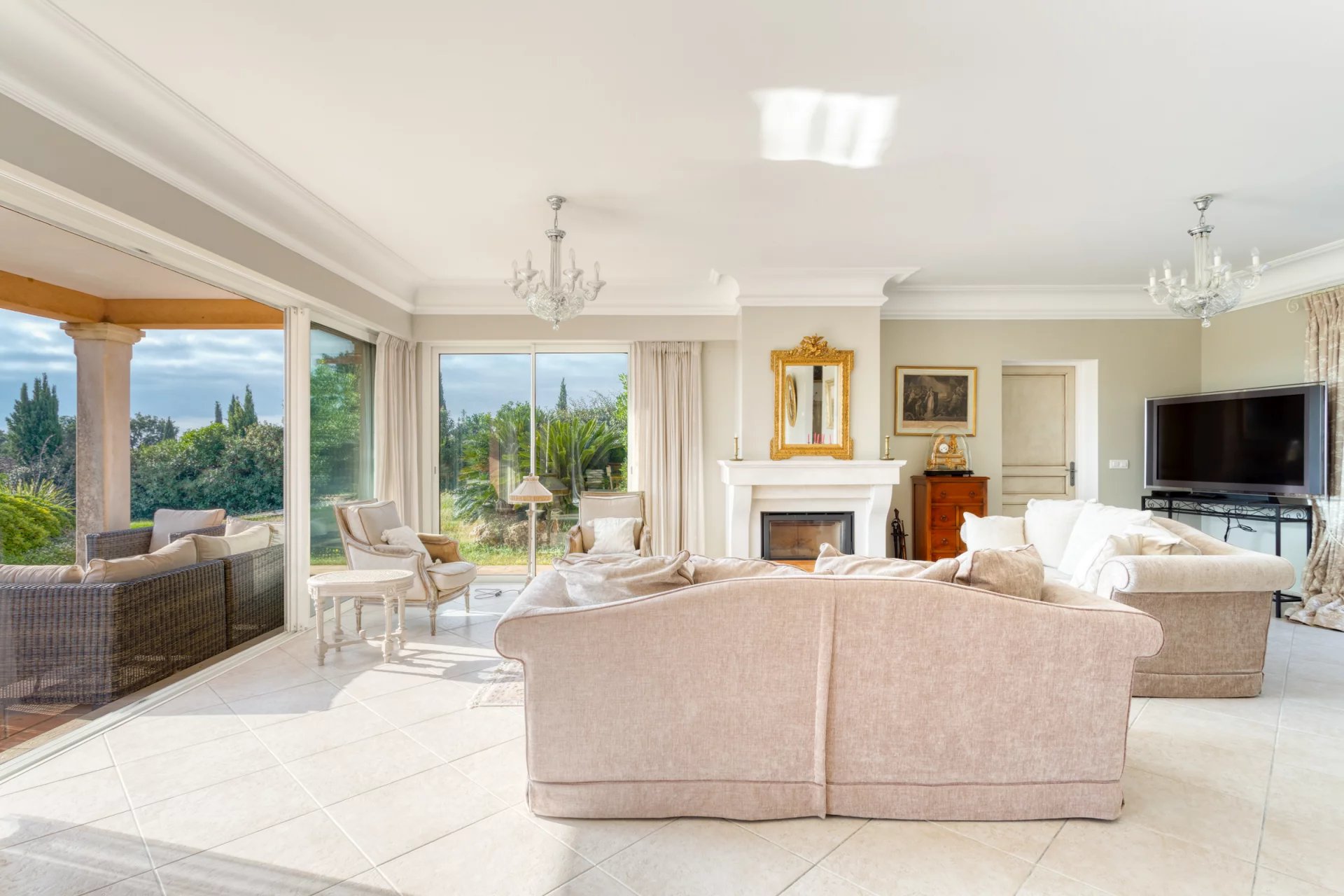Located in the heart of a closed estate in a dominant position, in greenery, beautiful charming villa offering a splendid view over the sea and the surrounding nature.