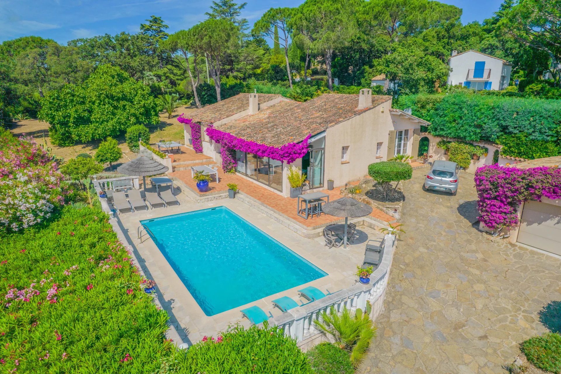 Located in a quiet residential area, not far from the golf course of Beauvallon, villa with beautiful view of the sea and Saint-Tropez from the east part of the property.