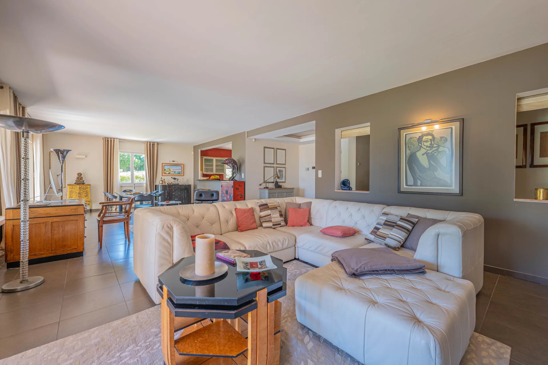 Located between Saint-Tropez and Sainte-Maxime, in a private domain within walking distance of the beach, this charming Proveníçal villa of approximately 500 m2 is set on a large 3,500 m2 plot, offering beautiful open views of the surrounding hills.