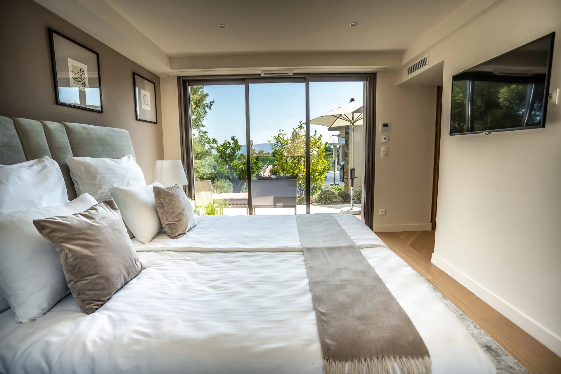 Ideal location, in the prestigious gated and secure domain of Beauvallon Bartole, modern villa with high-end benefits enjoying a beautiful view of nature and the Golfe de Saint-Tropez