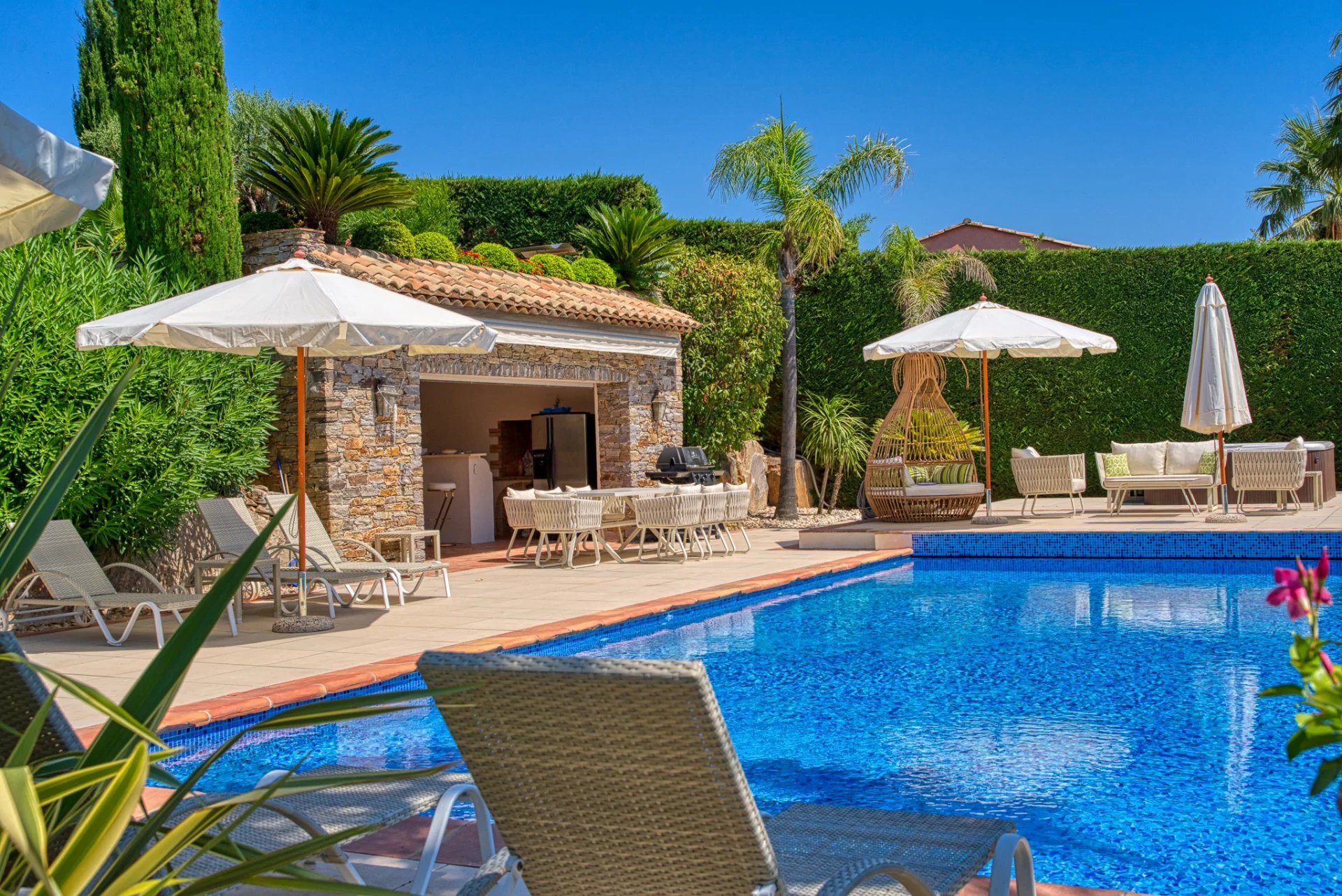 Perfectly situated in the middle of the Gulf of Saint Tropez, in a peaceful, gated estate, this magnificent Provencal villa spans 330 m2.