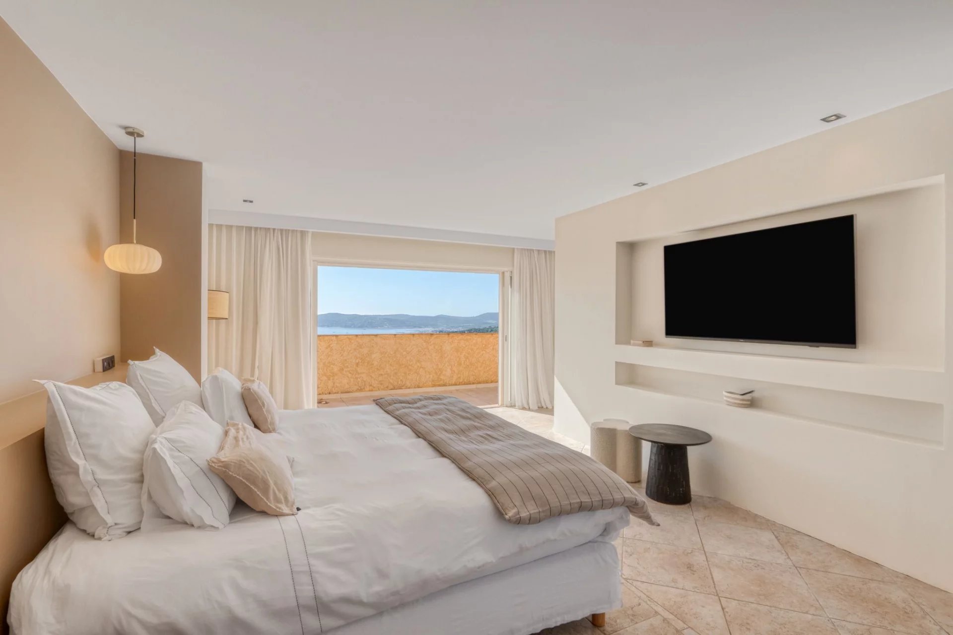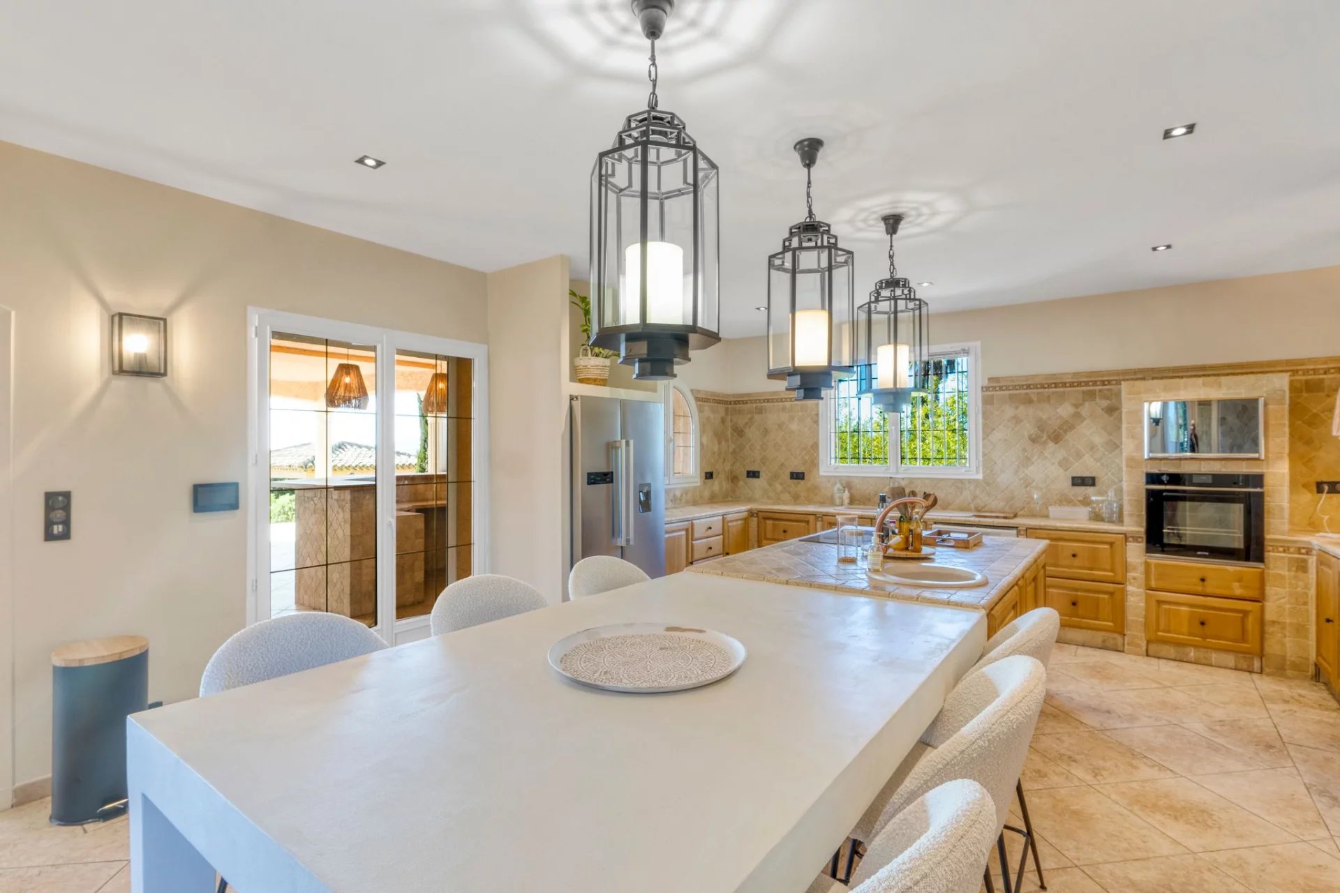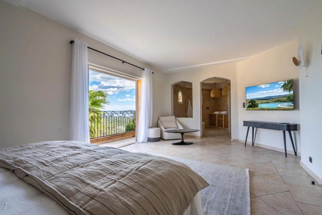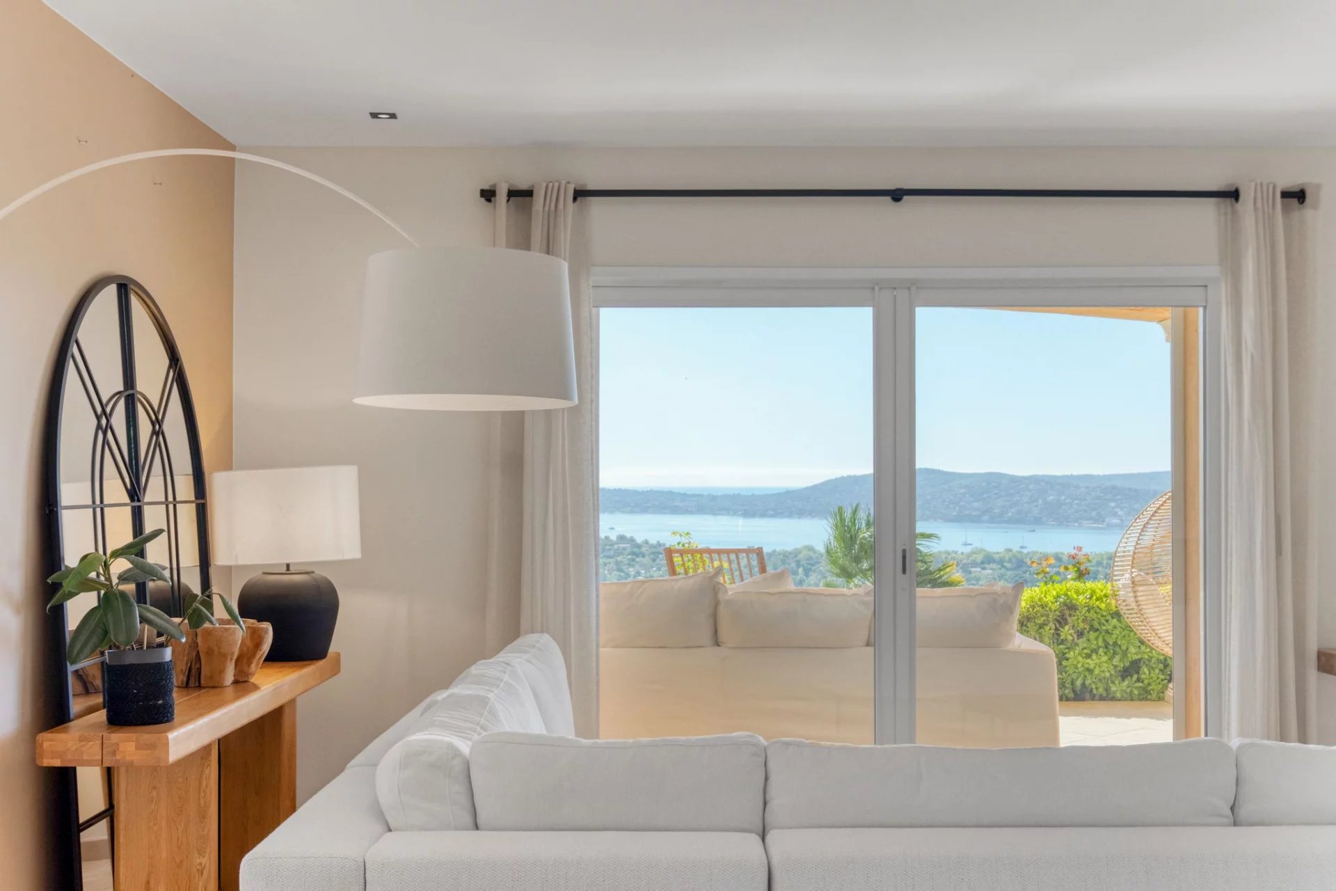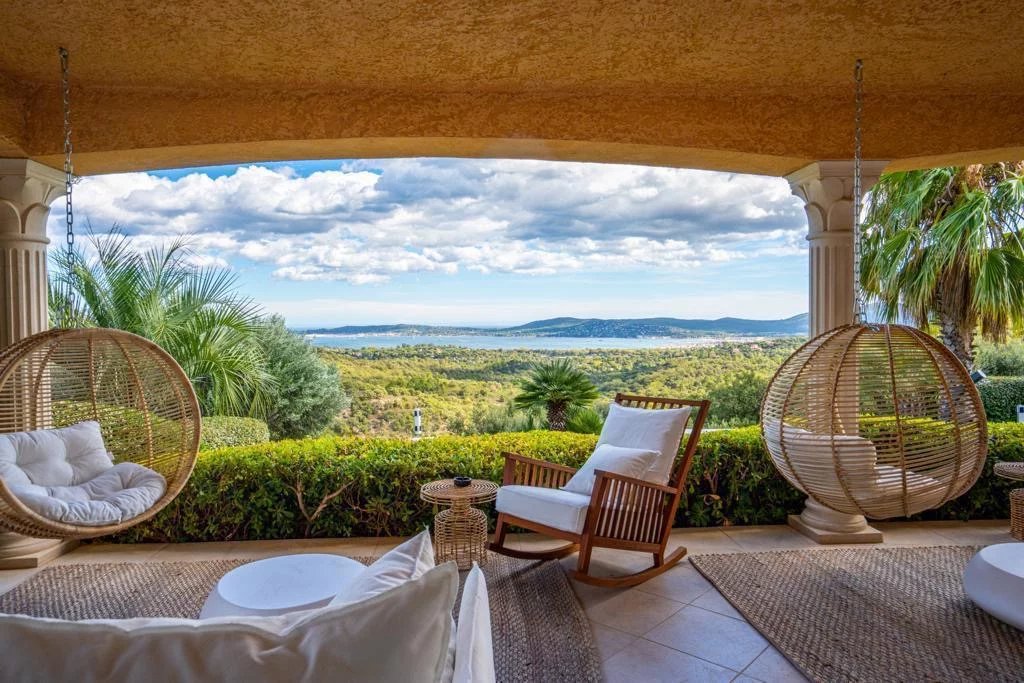In Grimaud, a quiet, sought-after neighbourhood, we are pleased to offer you a beautiful 12-room villa of 464m2 with panoramic sea views and a glimpse of the old village of Saint-Tropez.