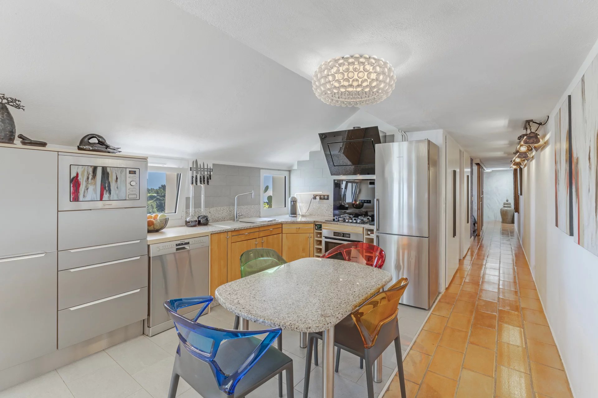 Two bedrooms with mezzanines, a shower room, a bathroom, and an independent studio of around 18 m2 complete the villa with both discretion and functionality.