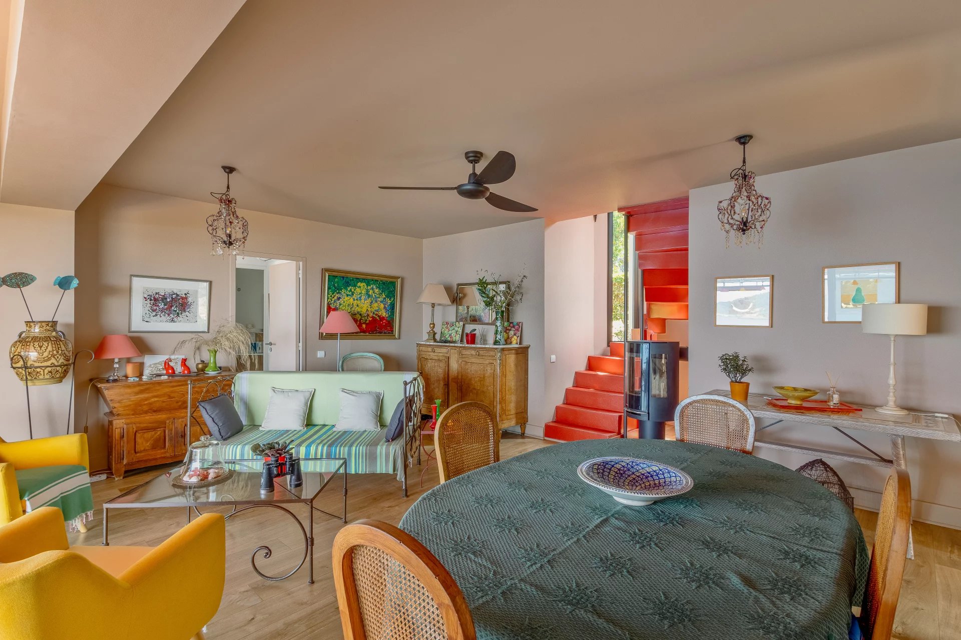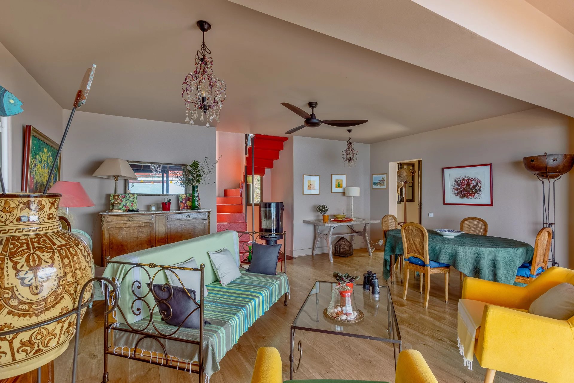 The main level is organised around a living room of approximately 30 m2, bathed in natural light, with a separate kitchen and direct access to a 60 m2 panoramic terrace. A bedroom with an en-suite shower room completes this level, offering a lifestyle that is largely open to the outdoors.