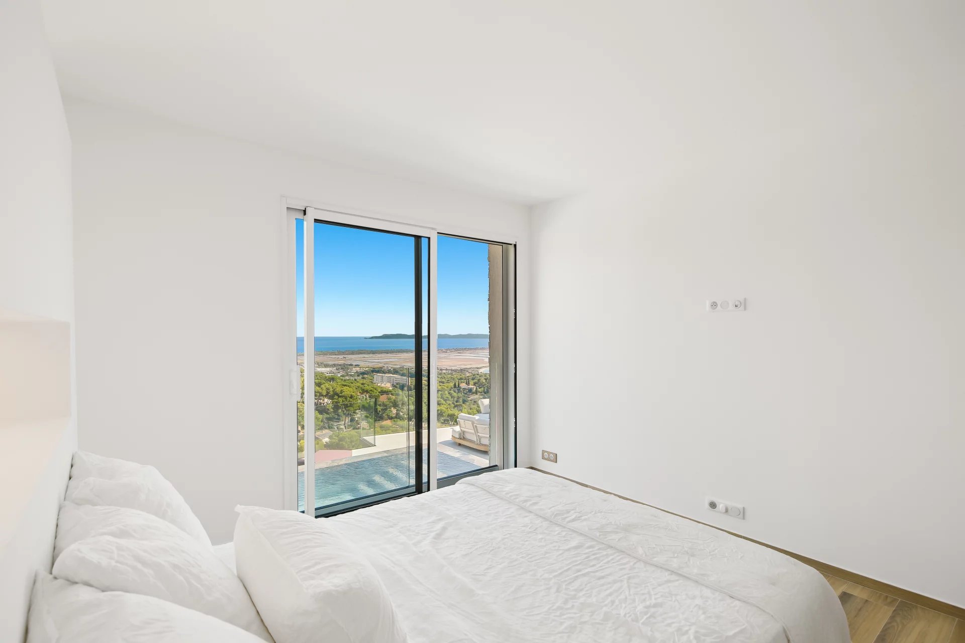 Contemporary villa renovated in 2025 by a renowned architect, offering panoramic sea views over the Giens Peninsula, Porquerolles, and Port-Cros.