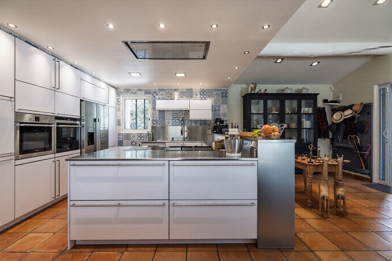 From the moment you enter, the tone is set. A spacious, light-filled living room opens generously onto the outdoors, seamlessly connected to a stylish open-plan kitchen, the true heart of the home. The layout creates a natural flow between indoor living and terraces, perfectly suited for family meals or entertaining guests. Everyday comfort is ensured by underfloor heating on terracotta flooring.