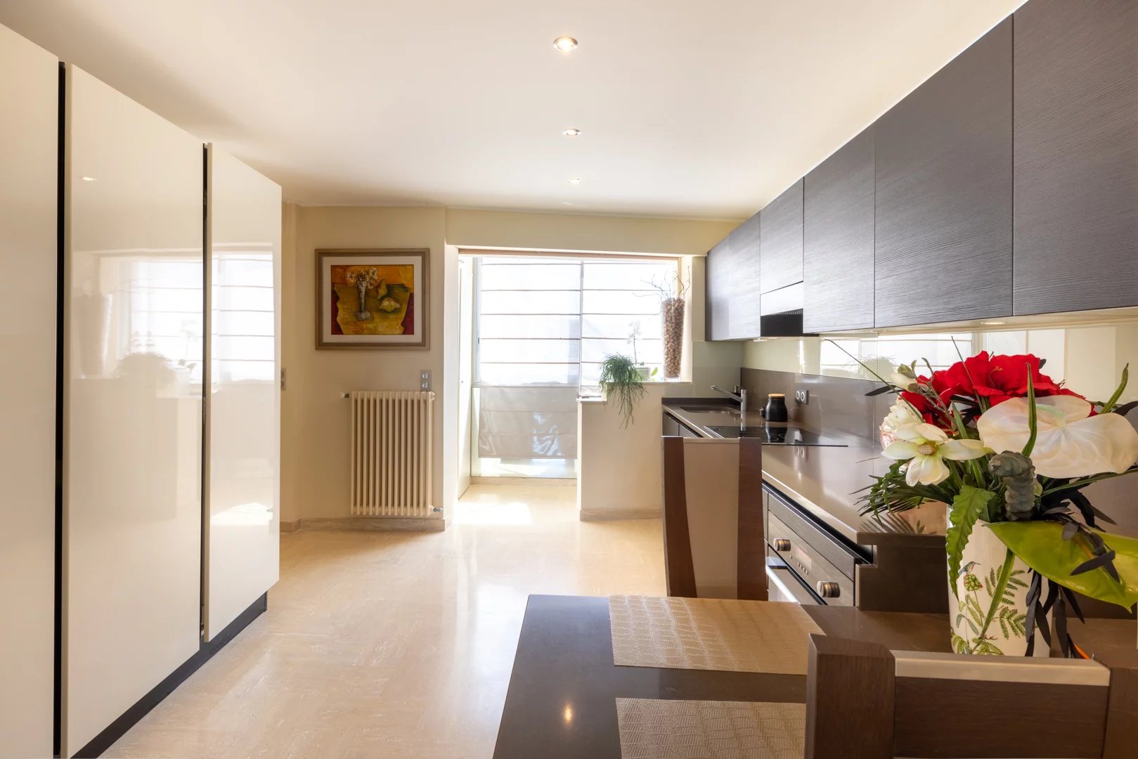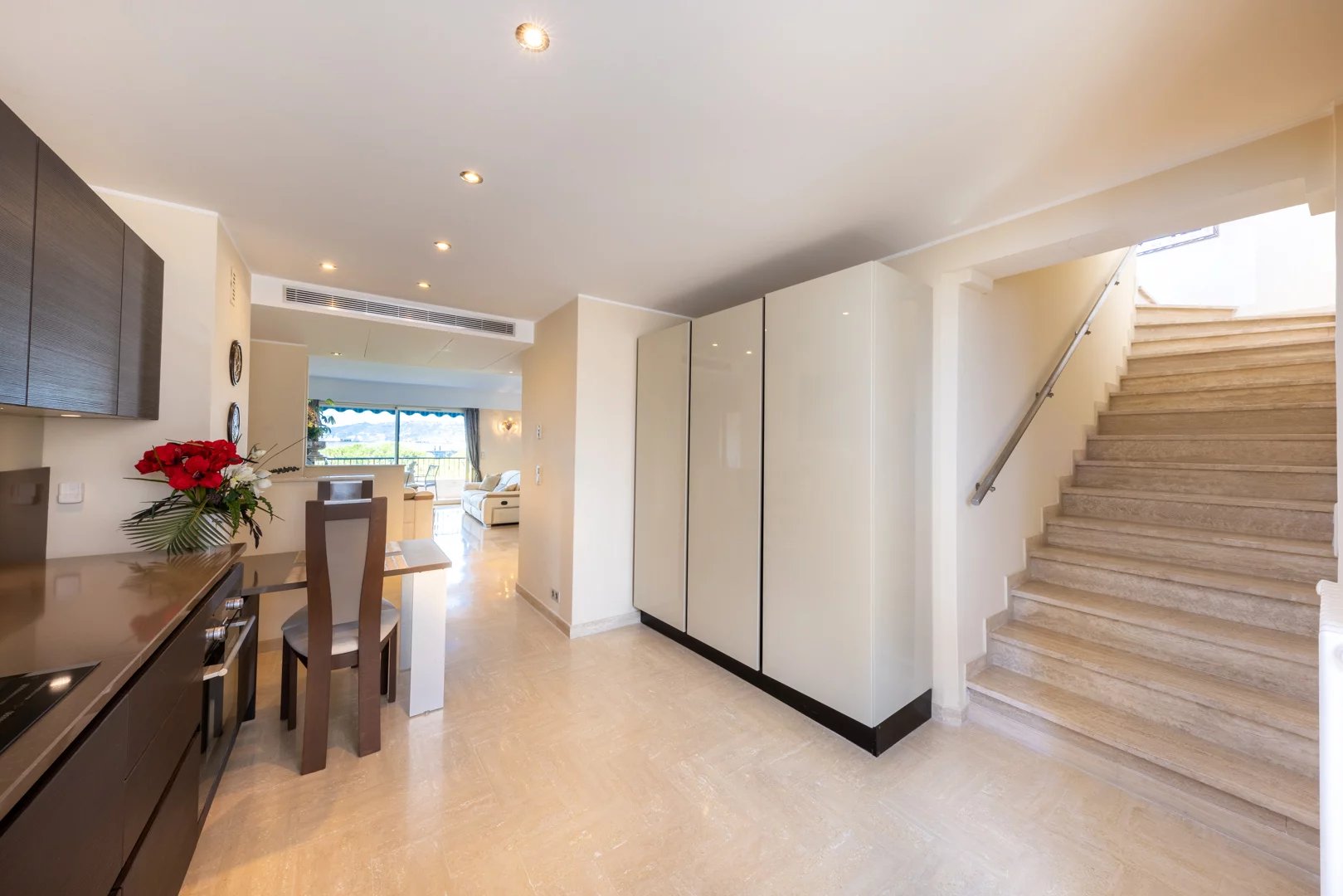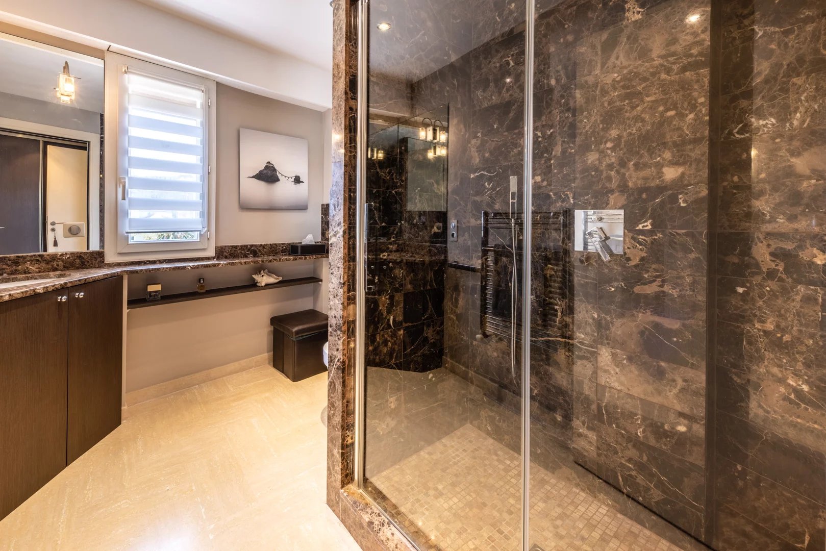 This apartment offers an exceptional living environment combining comfort and modernity, perfectly equipped for optimum comfort in all seasons. Reversible air-conditioning ensures an ideal temperature, while electric shutters and blinds modulate the light and guarantee good thermal insulation.