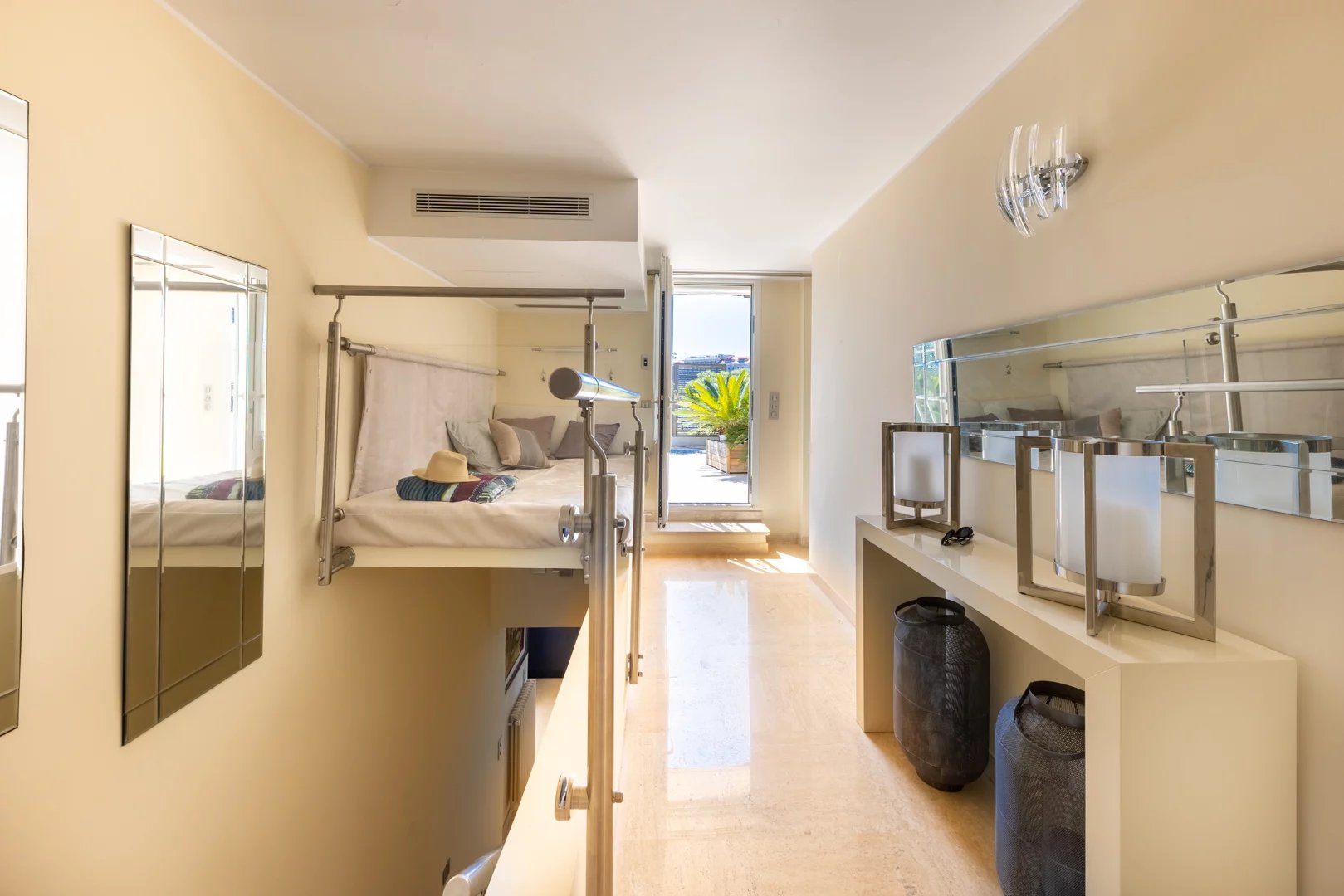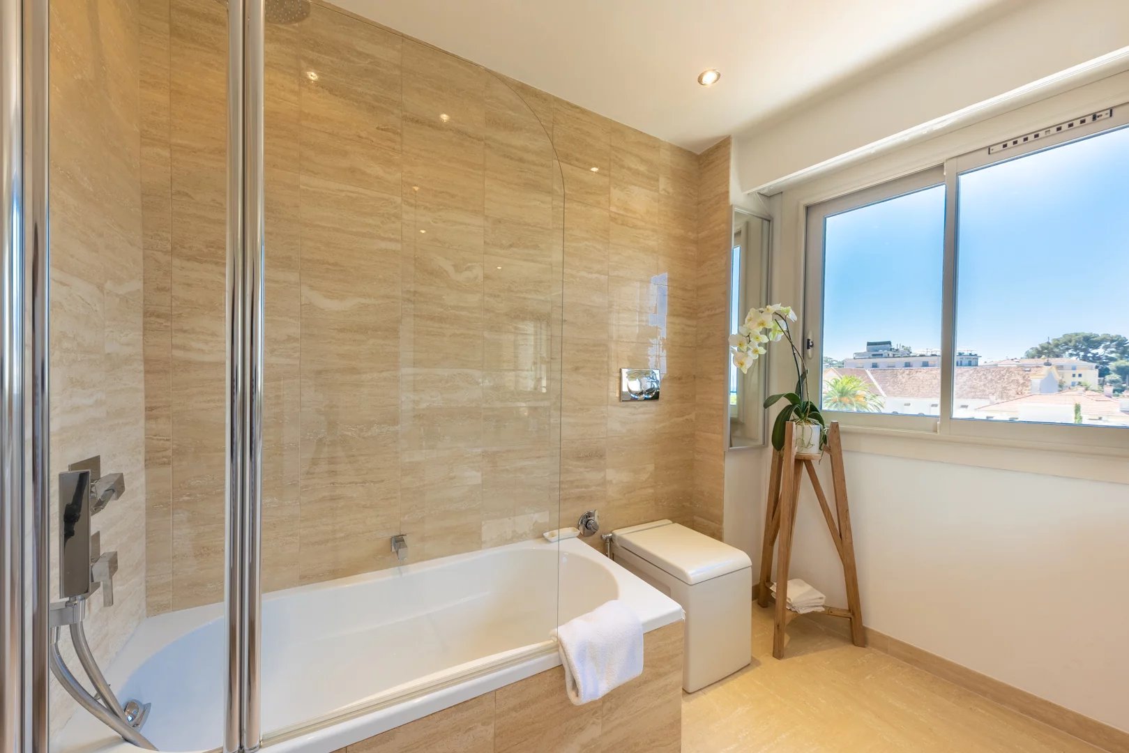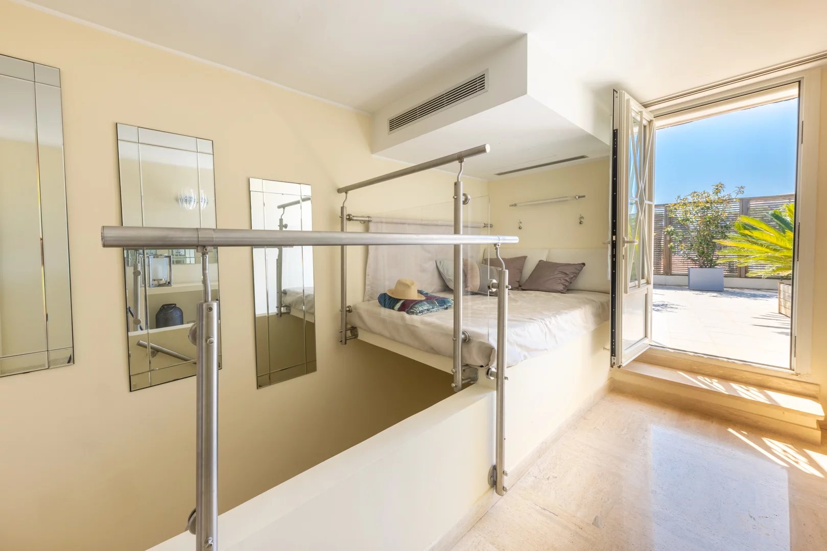 Comfort and modernity Discover this magnificent 120 m2 apartment on the top floor of a luxury residence in the heart of Juan Les Pins, a popular town on the Cote d’Azur.
