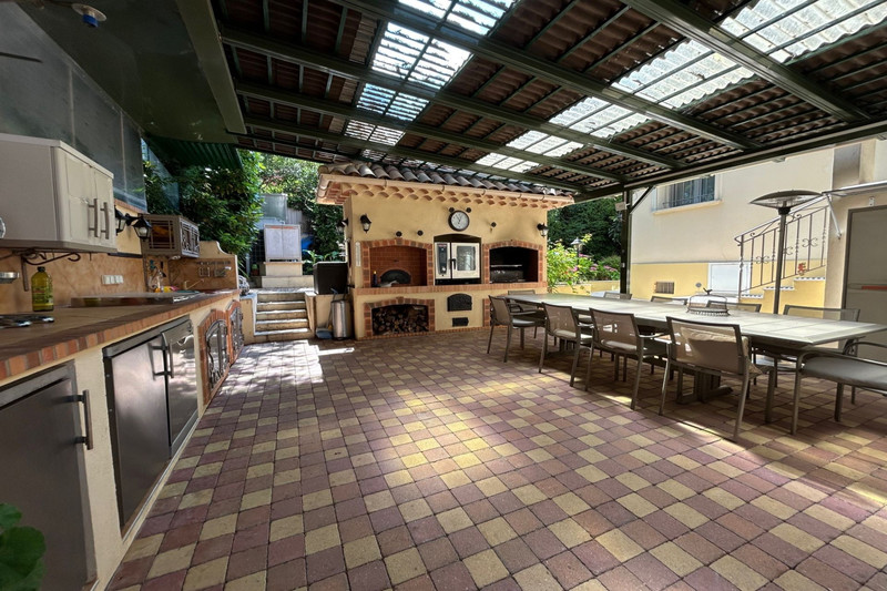 The home opens onto a heated swimming pool bordered by Mediterranean greenery, creating a private haven for year-round enjoyment. A covered terrace, automatic watering system, and discreet layout enhance the overall comfort and usability of the outdoor space.