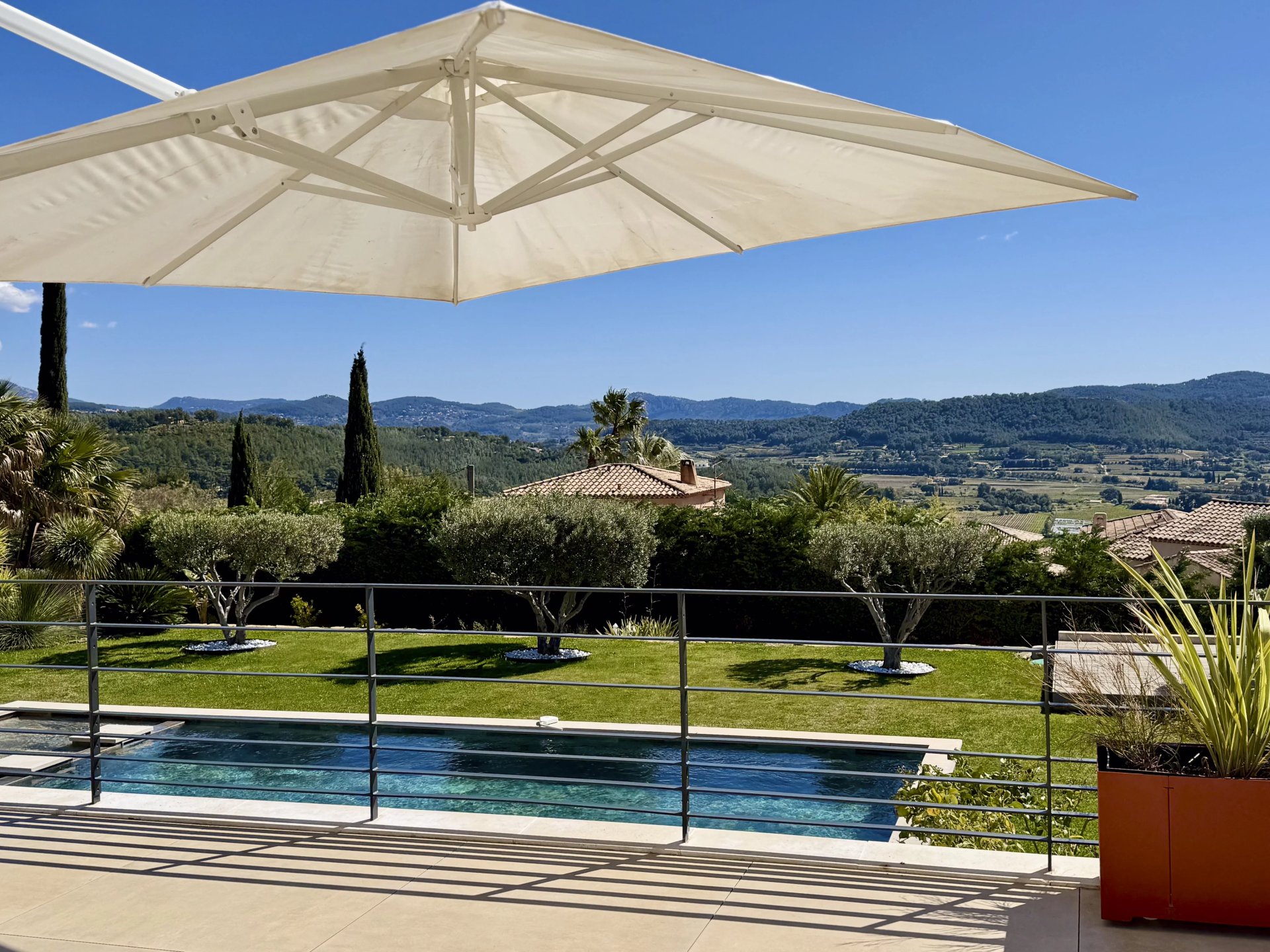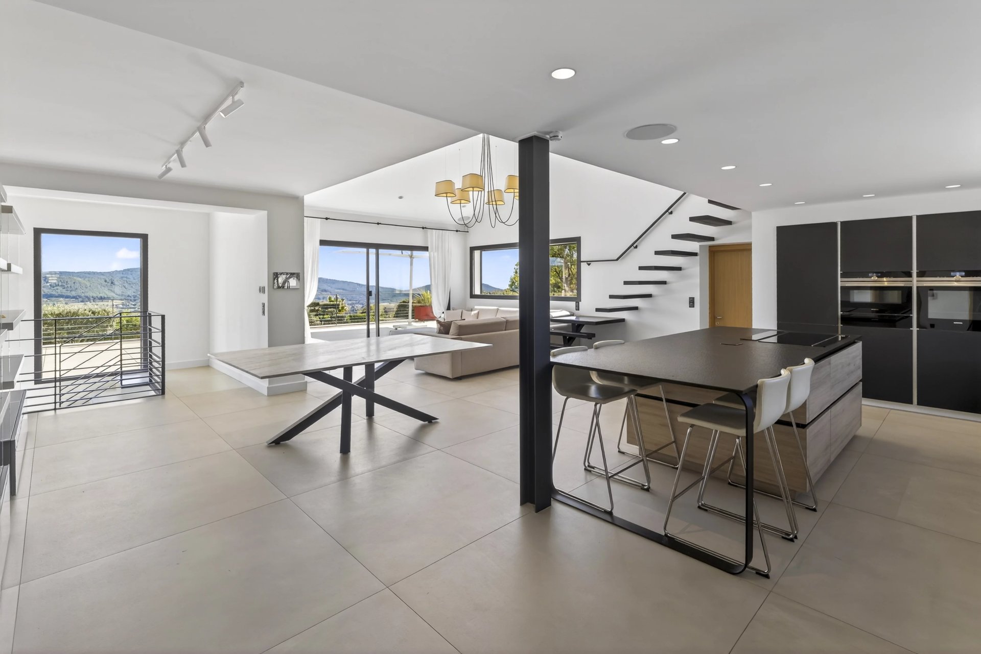 In a sought-after and particularly quiet area of La Cadiere d’Azur, this beautiful recent contemporary villa offers a privileged living environment, with no overlooking neighbors, and panoramic views of the sea and the surrounding countryside.