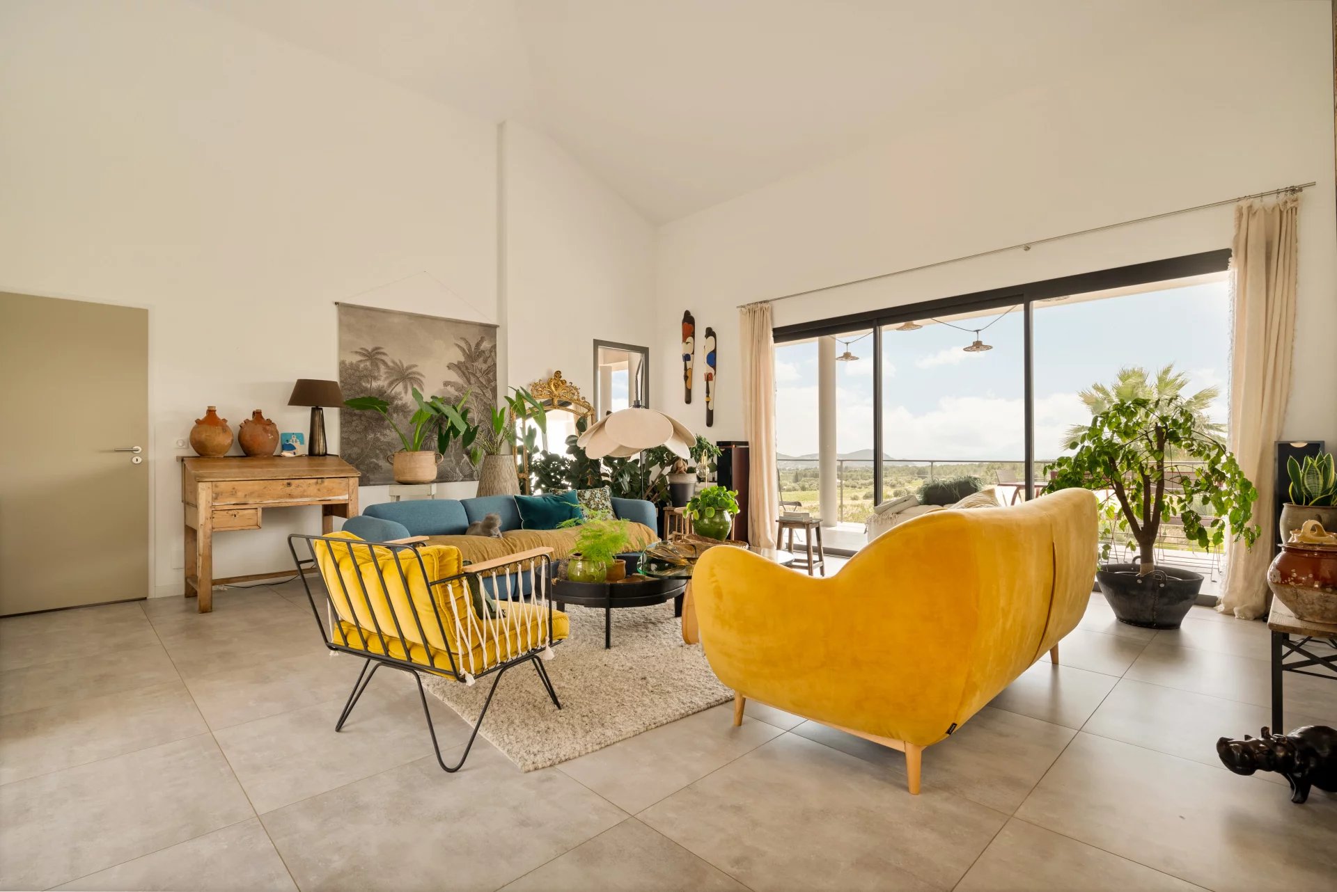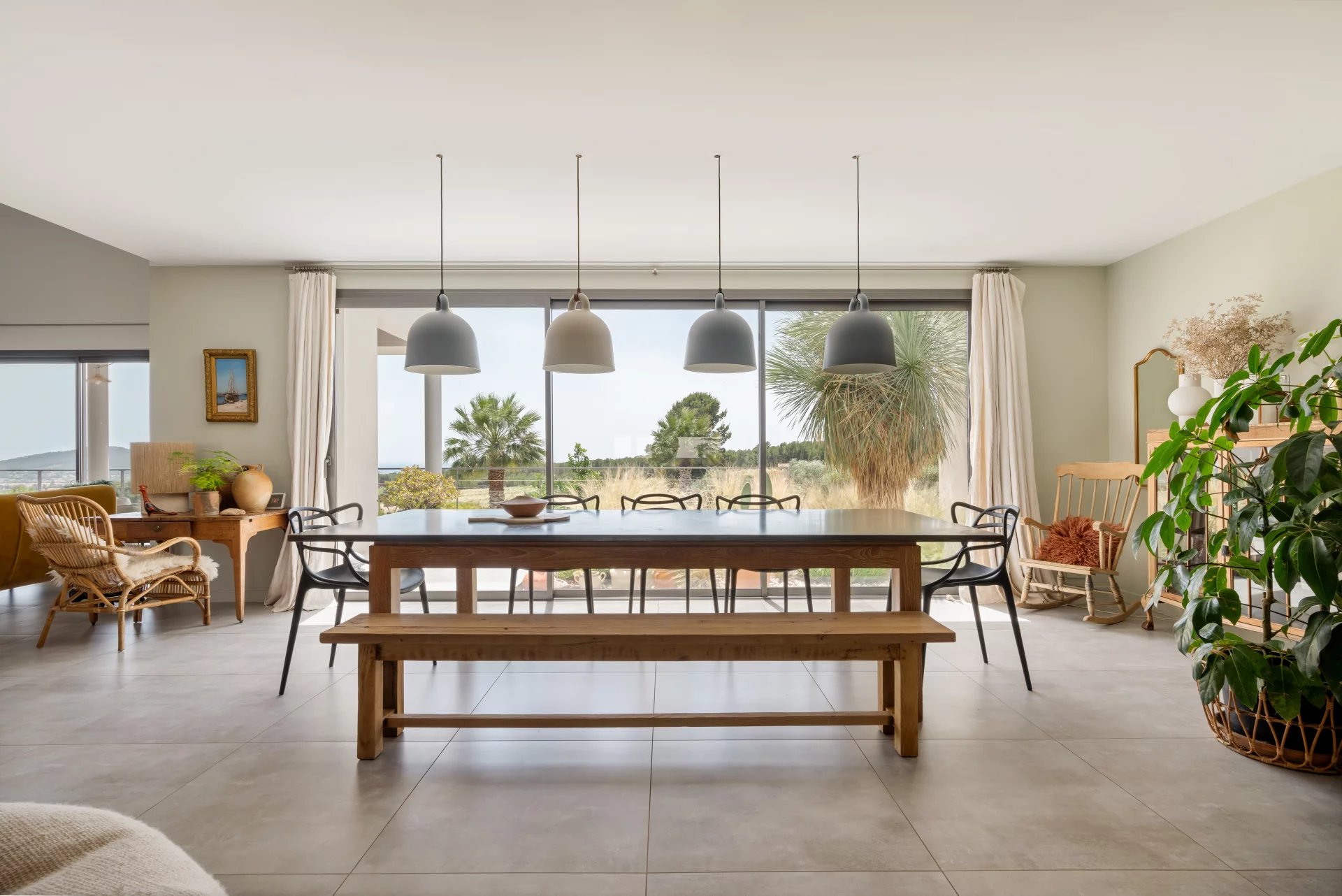 Immediately upon entry, brightness is omnipresent. The house offers a fluid and functional layout, with six bedrooms in total, including an elegant master suite, four family bedrooms on one side of the house, and a separate guest bedroom on the ground floor.