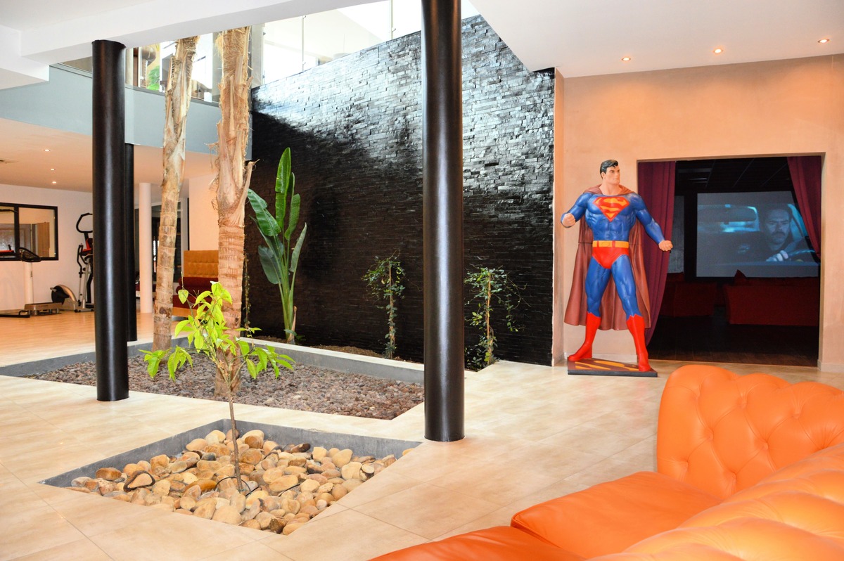 Ceiling heights are extremely rare in a detached villa, at over 11 metres, enhanced by a central planted patio planted with magnificent palm trees that elevate the building.