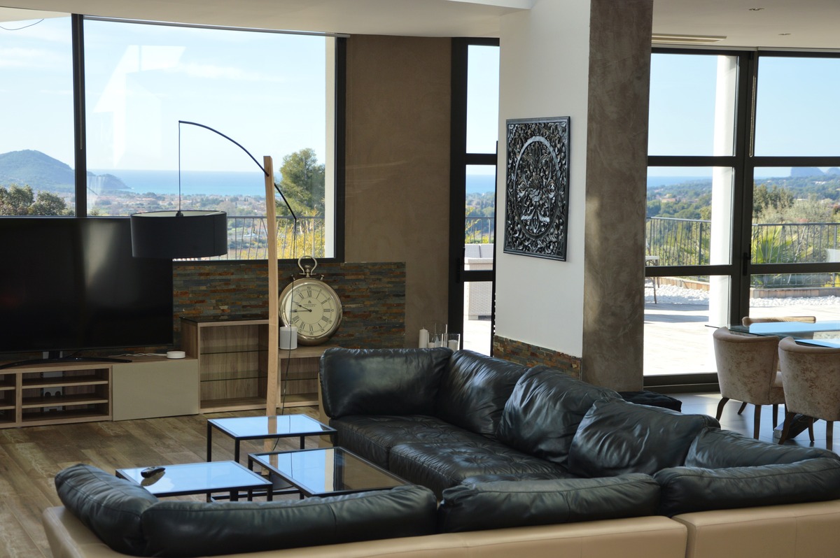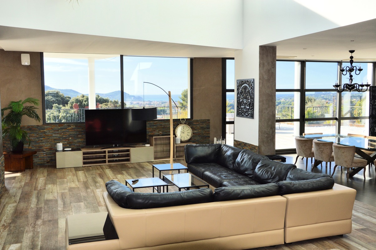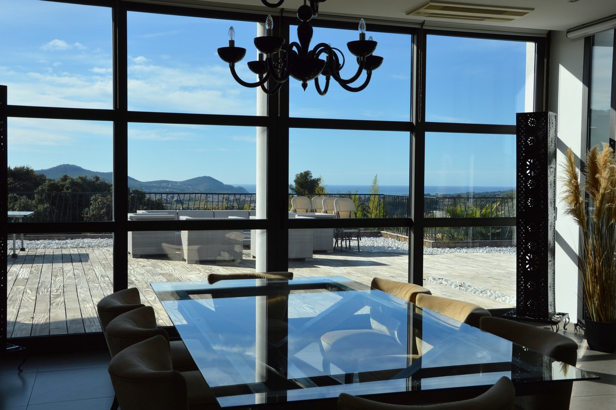 Located in the commune of La Cadiere d’Azur, a 10-minute drive from the beaches of Saint-Cyr-sur-Mer and Bandol, this bold architect-designed villa with open, unobstructed views of the countryside and sea is set in approx. 3,000 m2 of land.