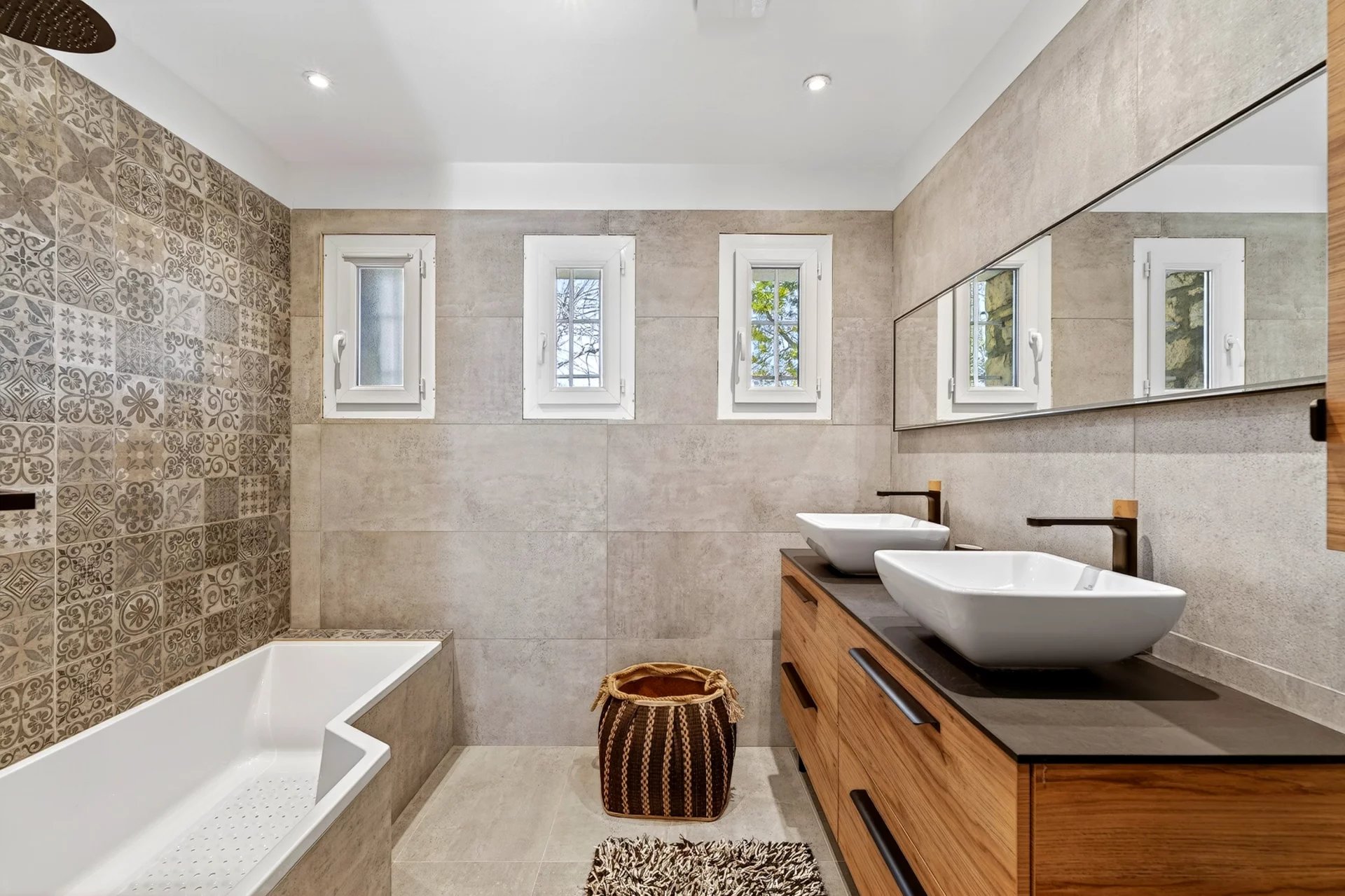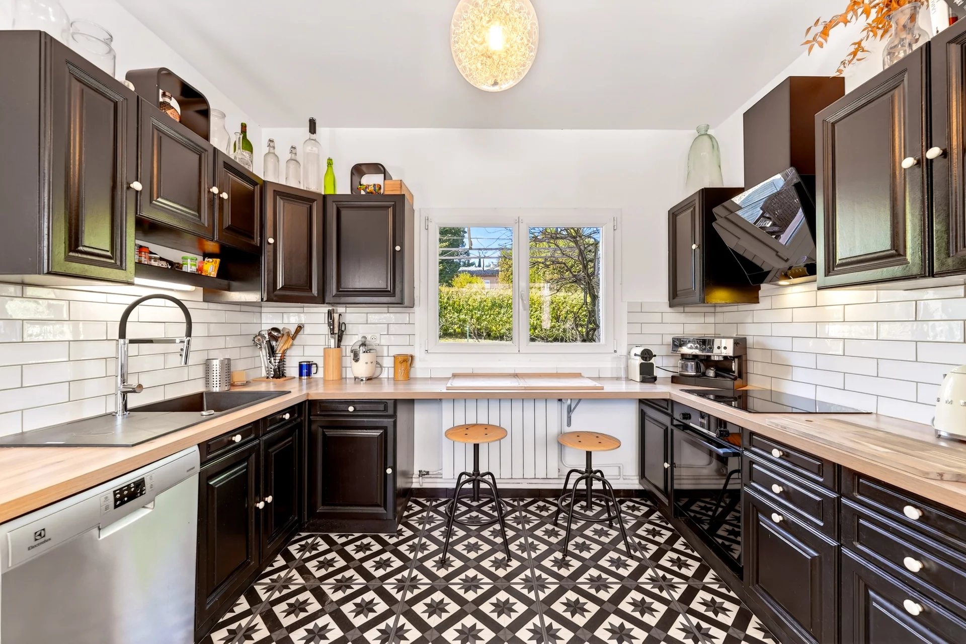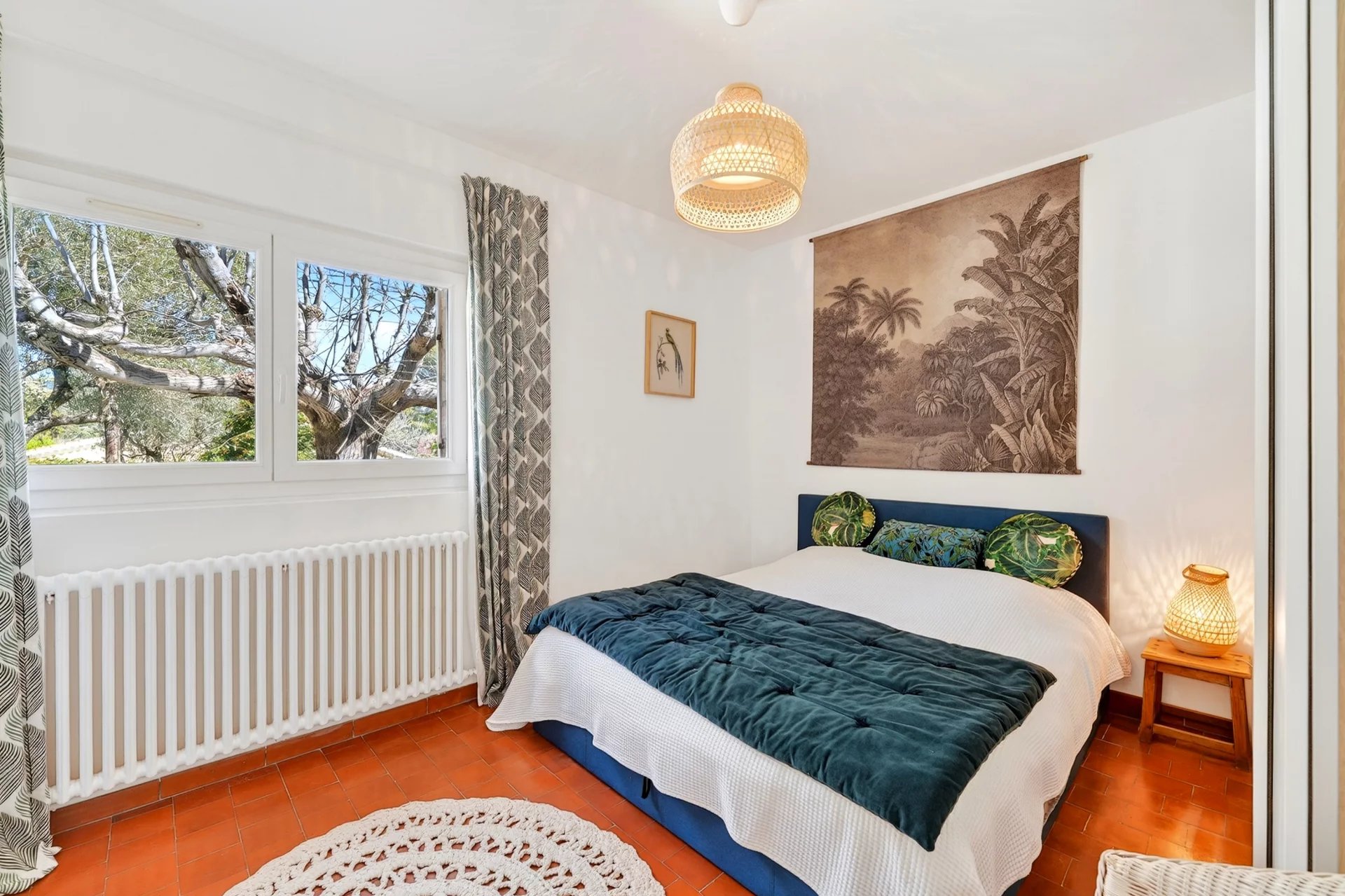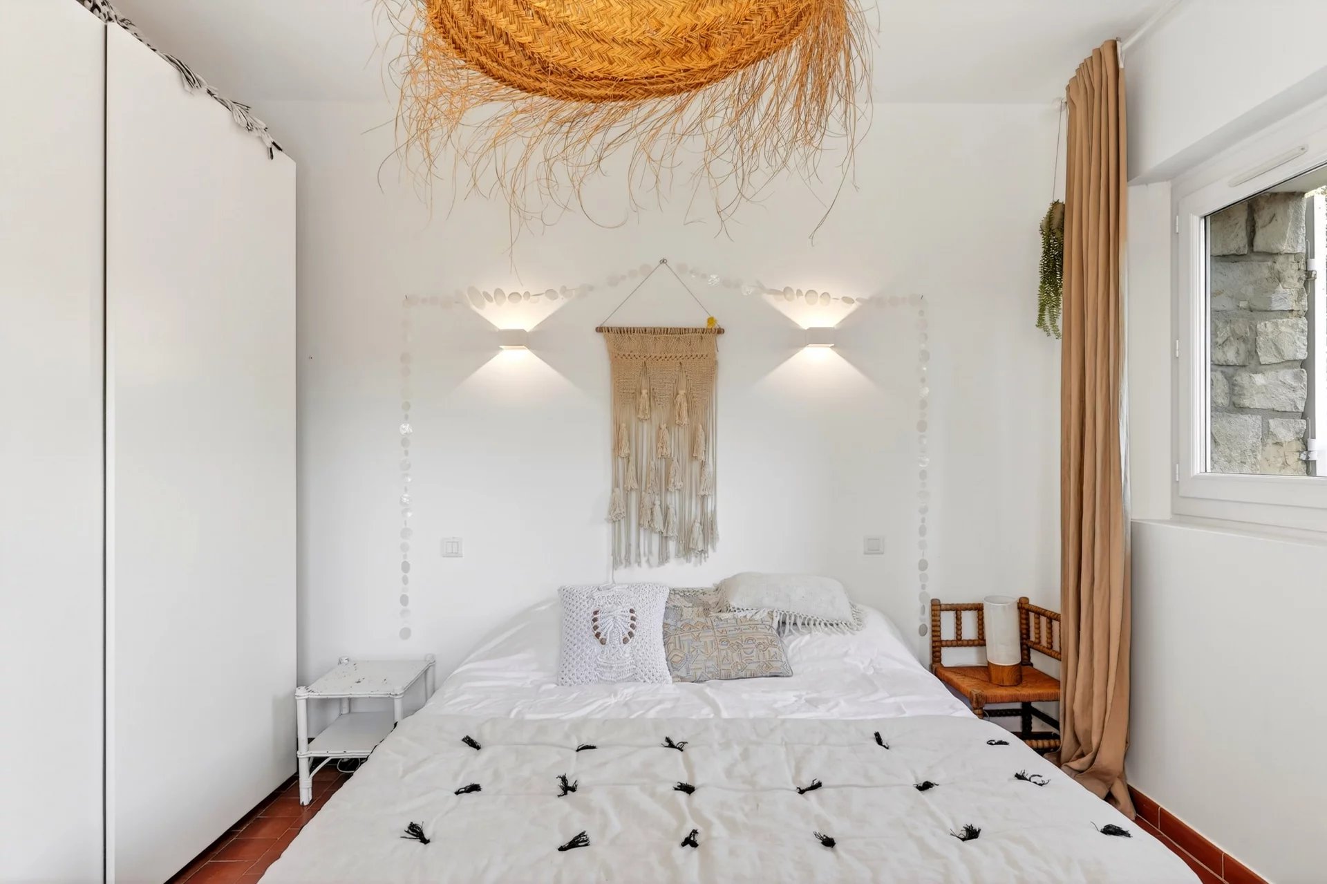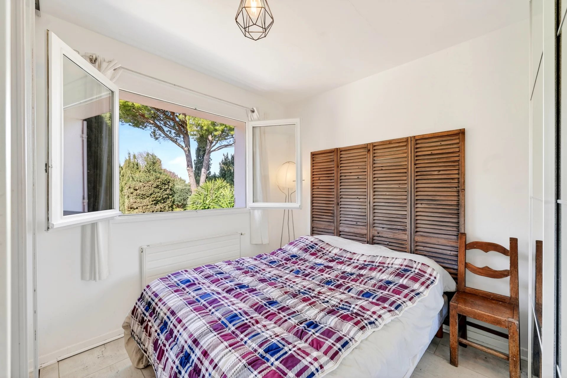 Set entirely on one level and maintained in excellent condition, the residence spans approximately 120 sqm, where authenticity meets understated refinement. A warm and inviting living room with fireplace flows into a dining area enhanced by vaulted ceilings and expansive glass openings, creating a seamless connection to the sunlit terrace. The adjoining kitchen, designed for both functionality and conviviality, is complemented by a utility and pantry space.