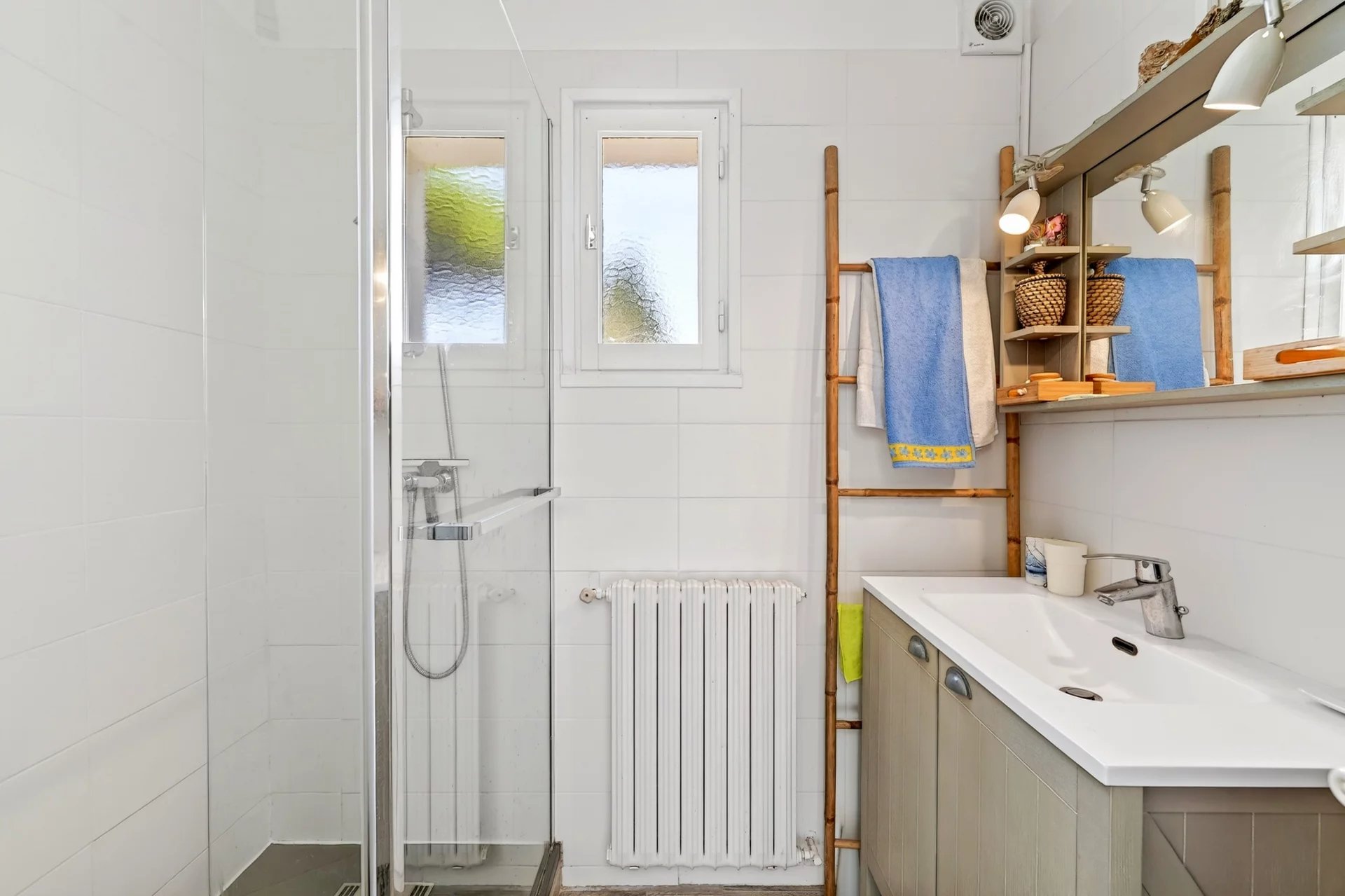 The night quarters host three well-proportioned bedrooms and a shared bathroom, offering comfort and privacy for family living.